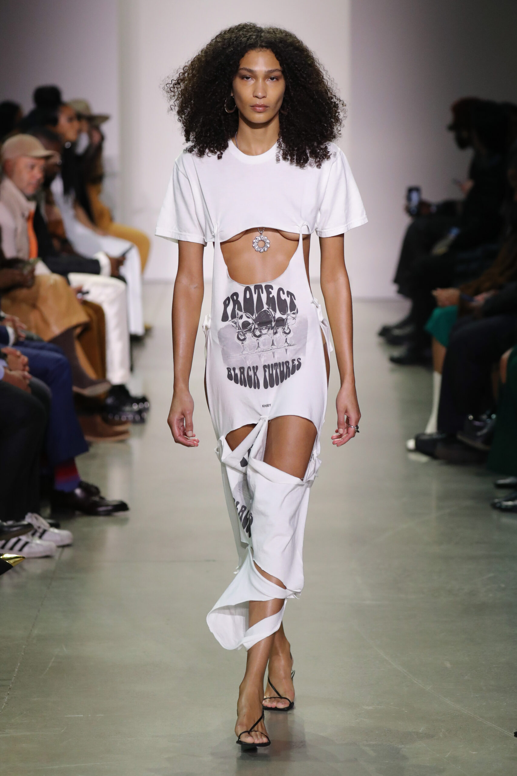- NEW YORK, NEW YORK – FEBRUARY 13: A model walks the runway wearing Khiry during the IN THE BLK Showcase powered by #ChangeFashion during New York Fashion Week: The Shows at Gallery at Spring Studios on February 13, 2022 in New York City. (Photo by JP Yim/Getty Images for IMG)