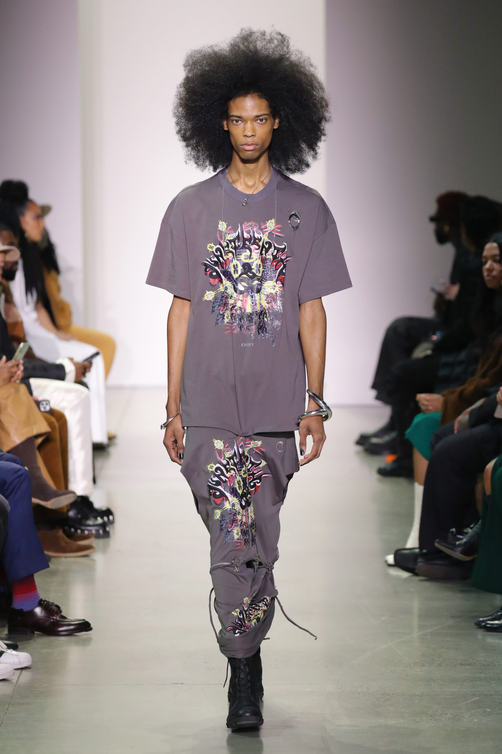 (New York, NY.) Feb. 13, 2022 — Afrofuturist jewelry designer and multi-disciplinary artist Jameel Mohammed debuts the latest collection for his brand KHIRY at Spring Studios today during New York Fashion Week as a part of IMG/Endeavor’s Color of Change show alongside House of Aama and Third Crown.