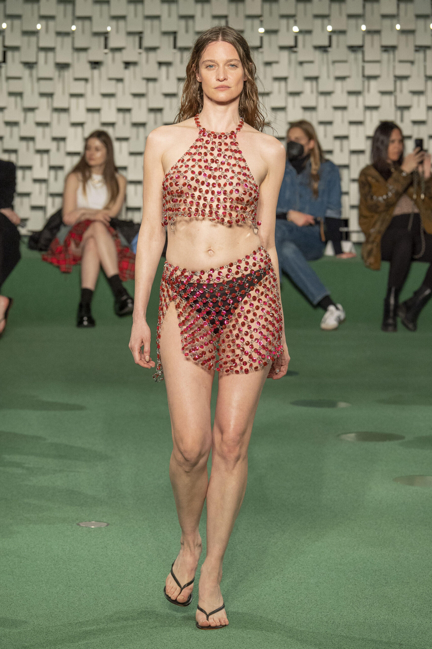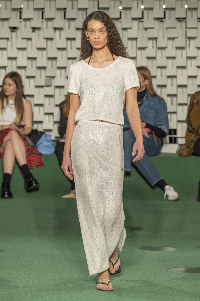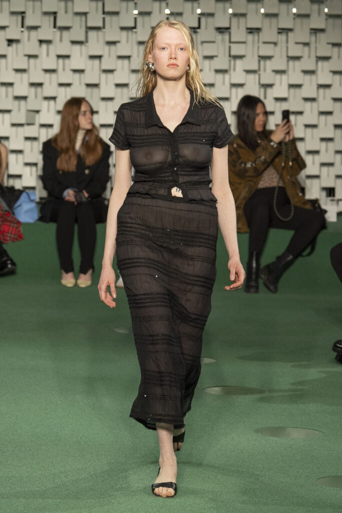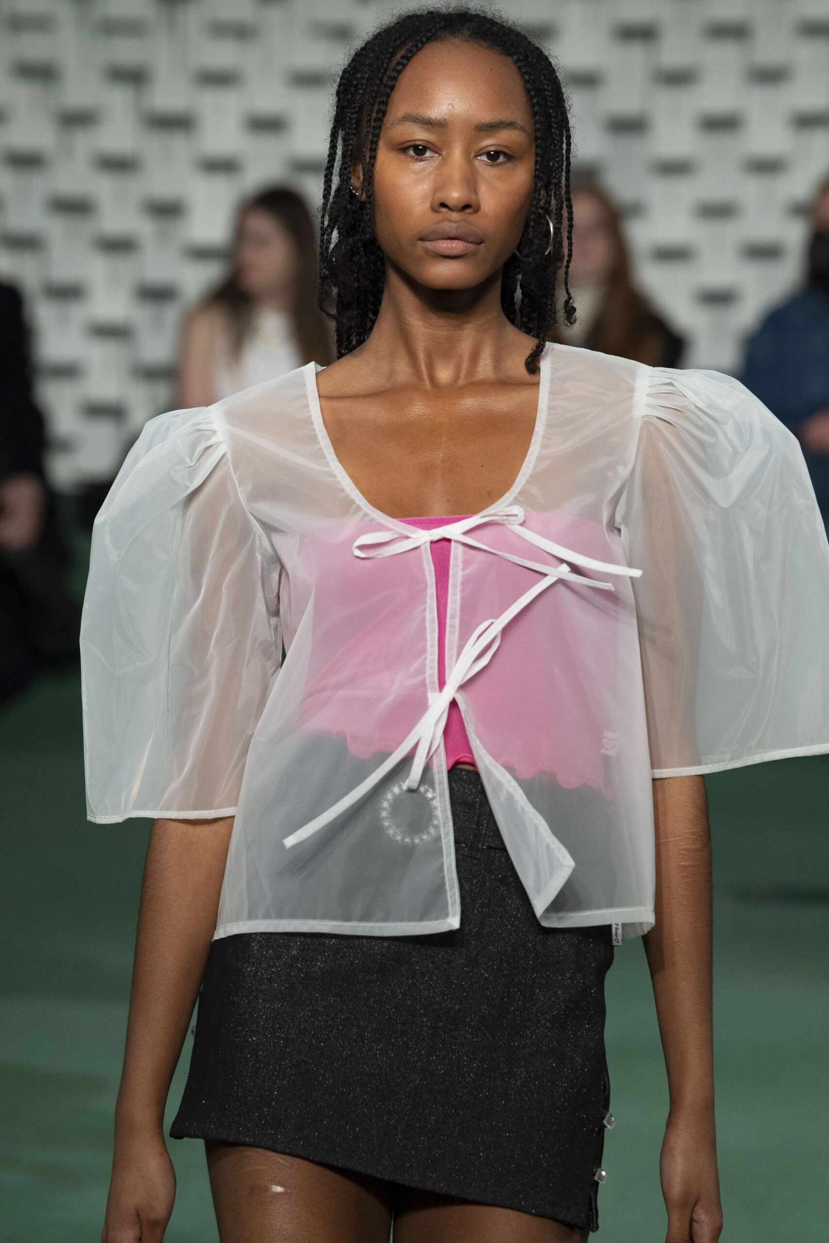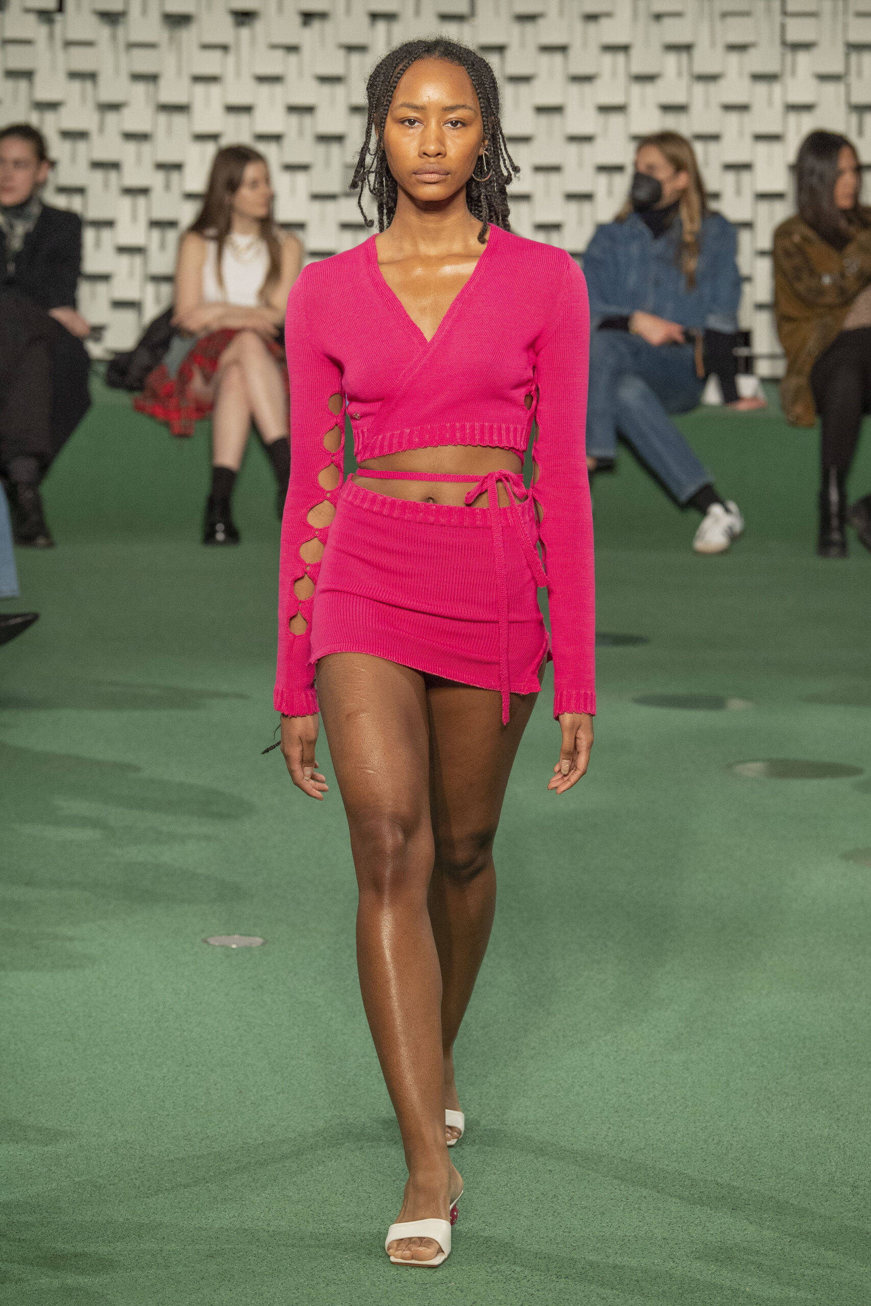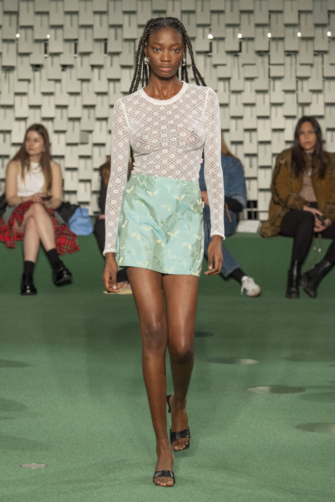 - A Model wearing an outfit from the Womens Ready to wear, pret a porter, collections, autumn winter 2022 2023, original creation, during the Womenswear Fashion Week in Paris, from the house of Maison Cleo