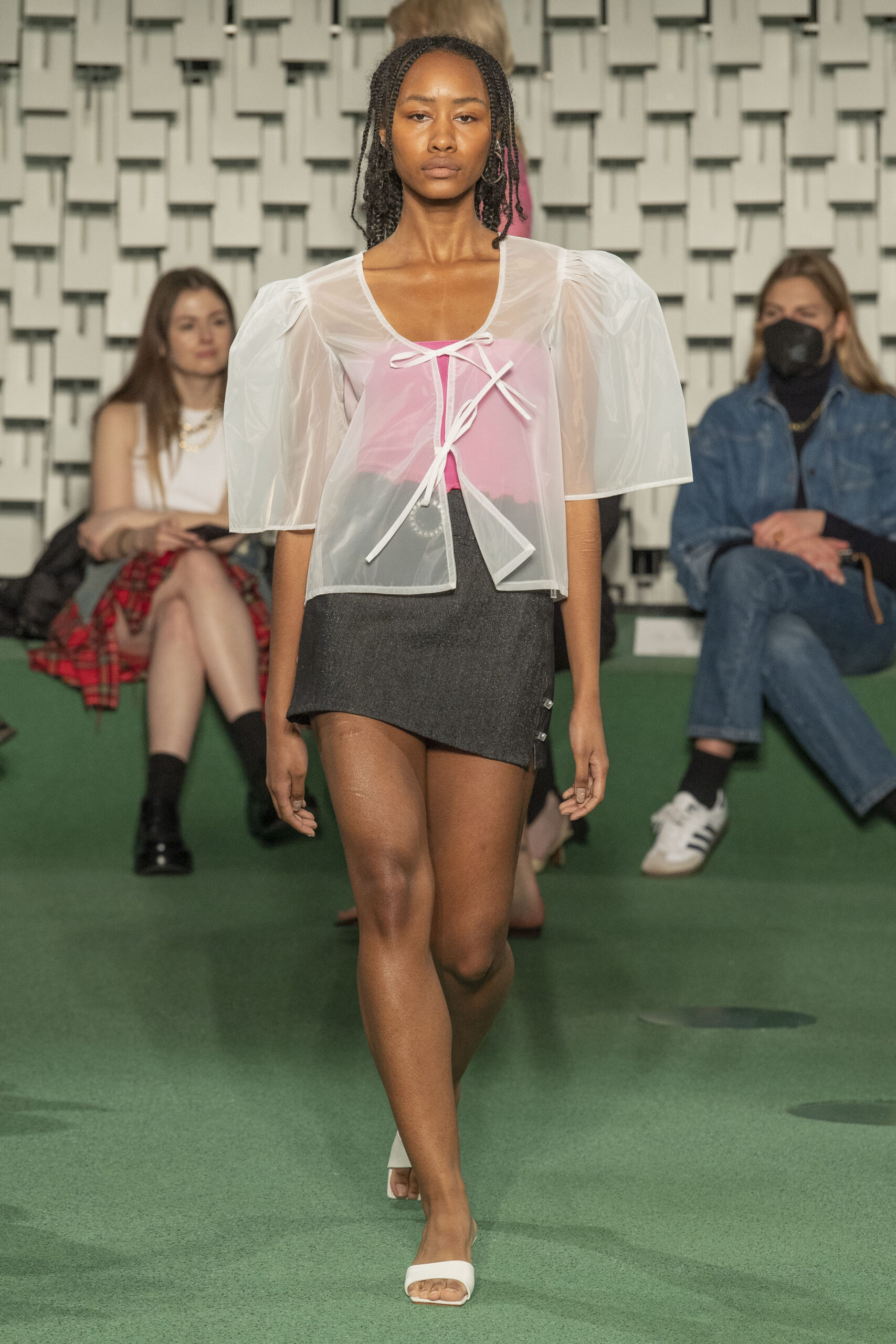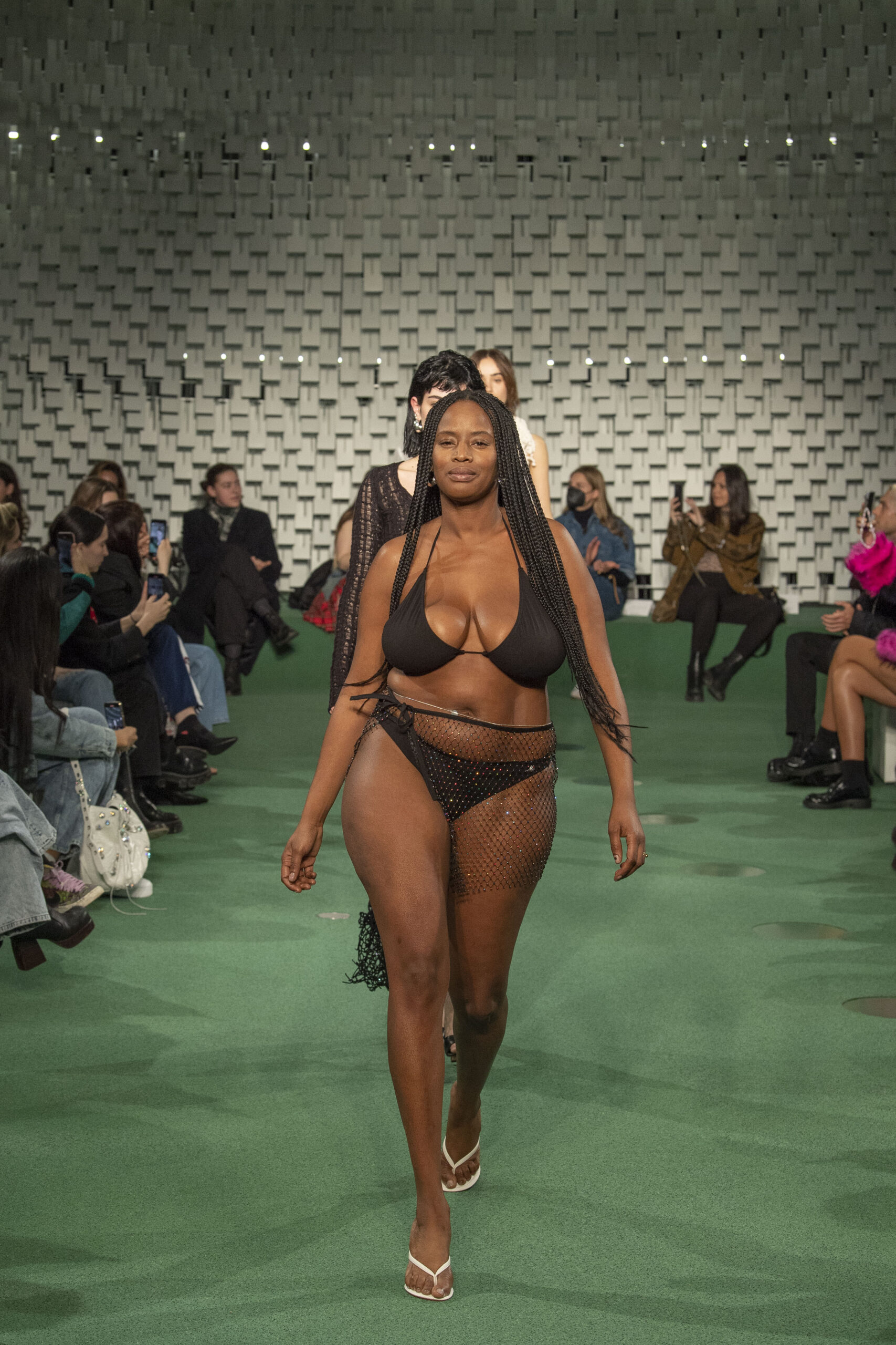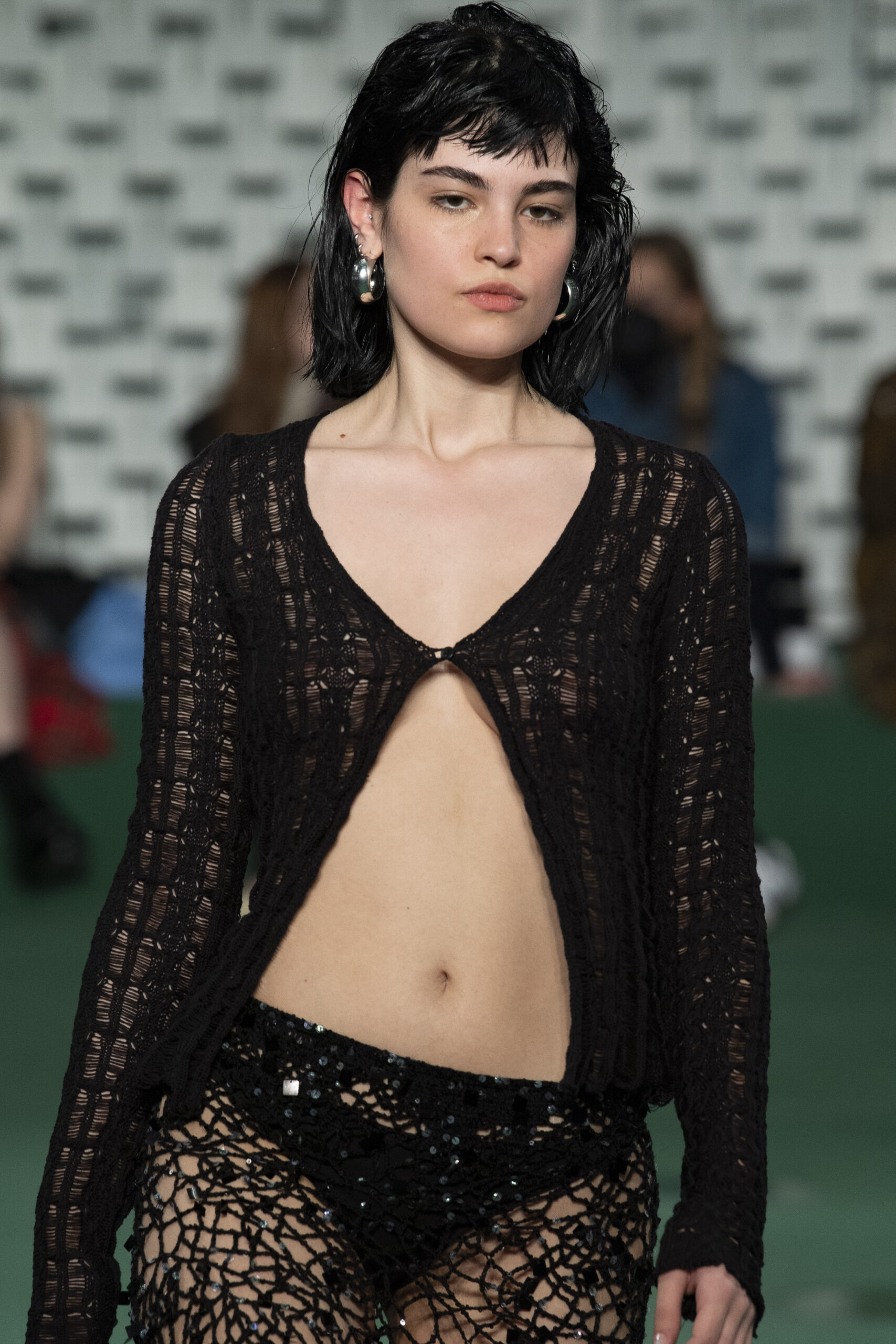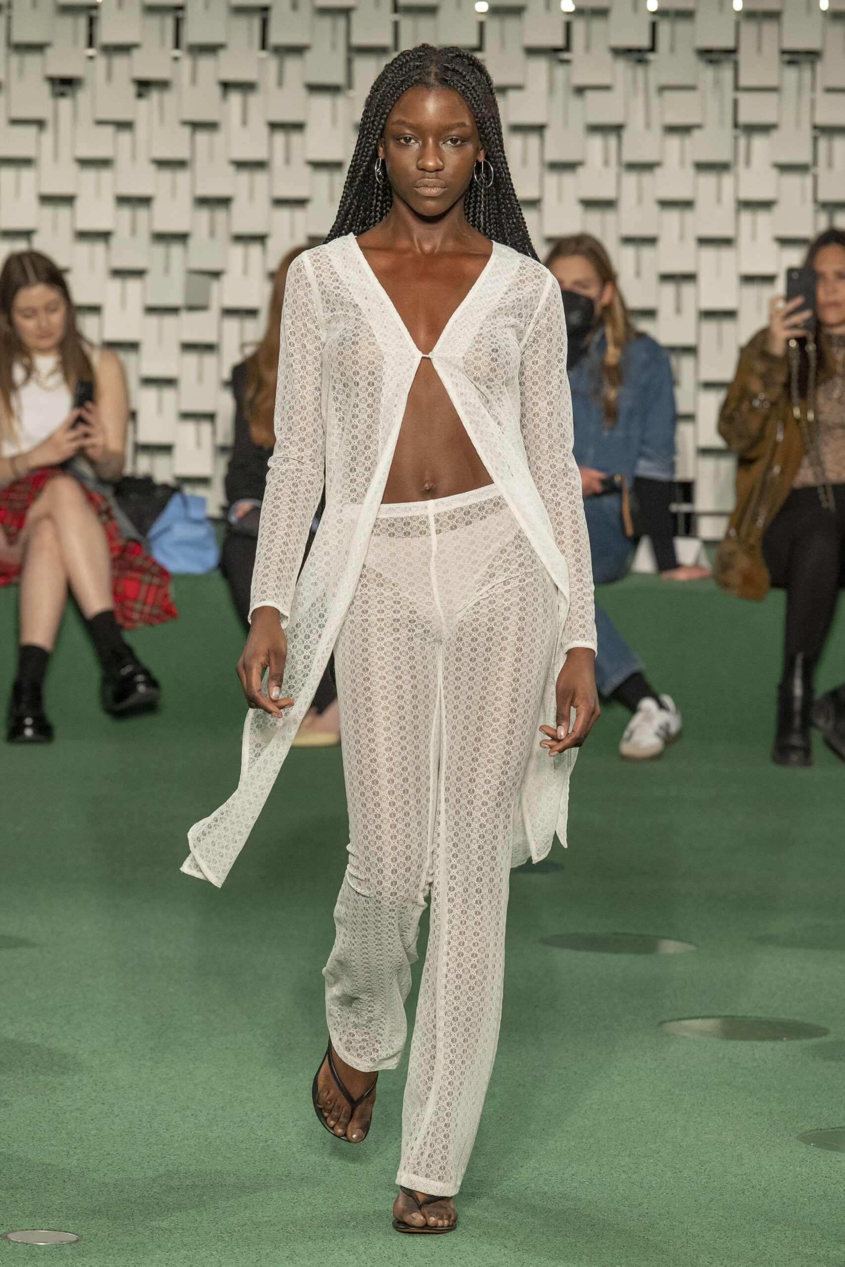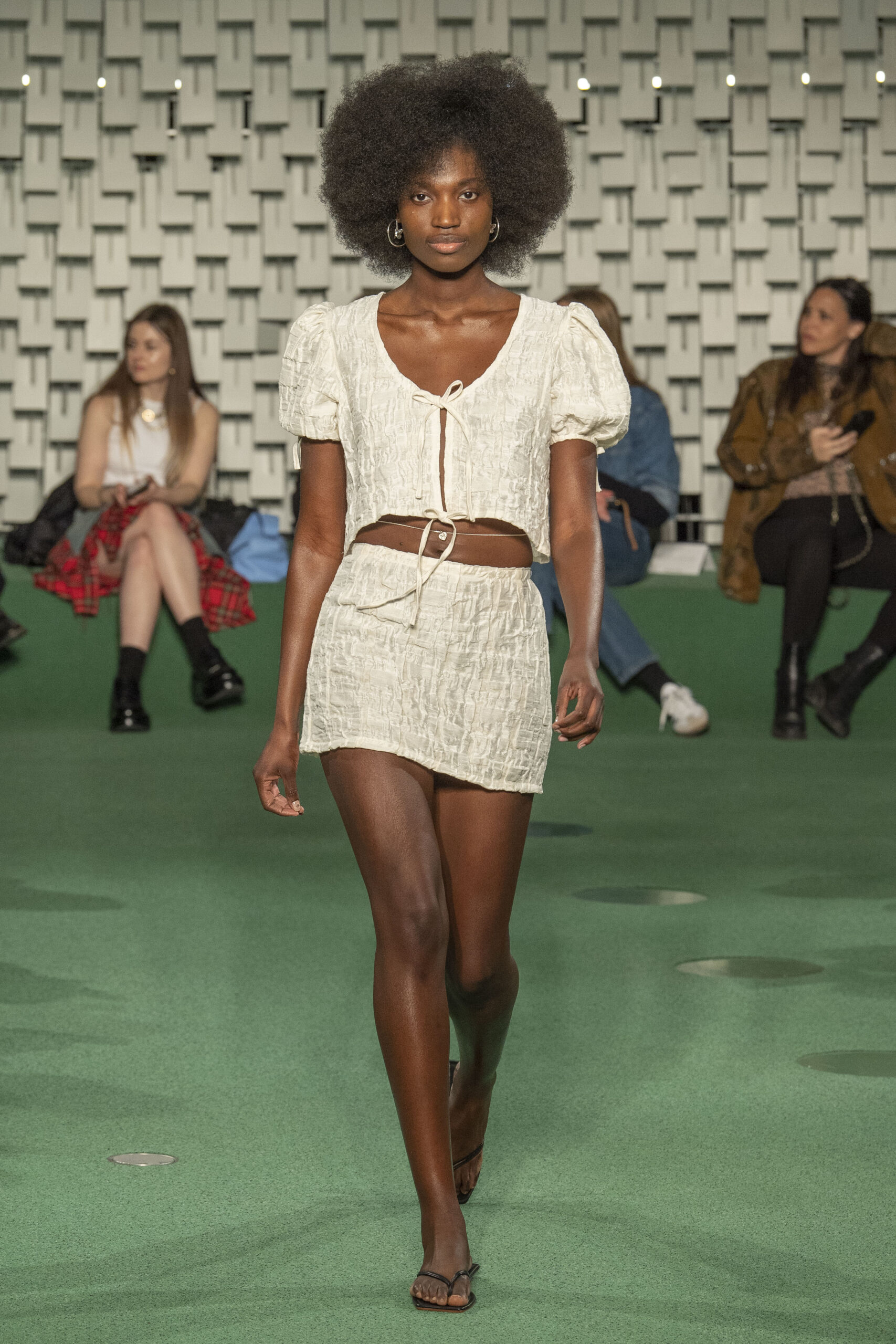 - A Model wearing an outfit from the Womens Ready to wear, pret a porter, collections, autumn winter 2022 2023, original creation, during the Womenswear Fashion Week in Paris, from the house of Maison Cleo