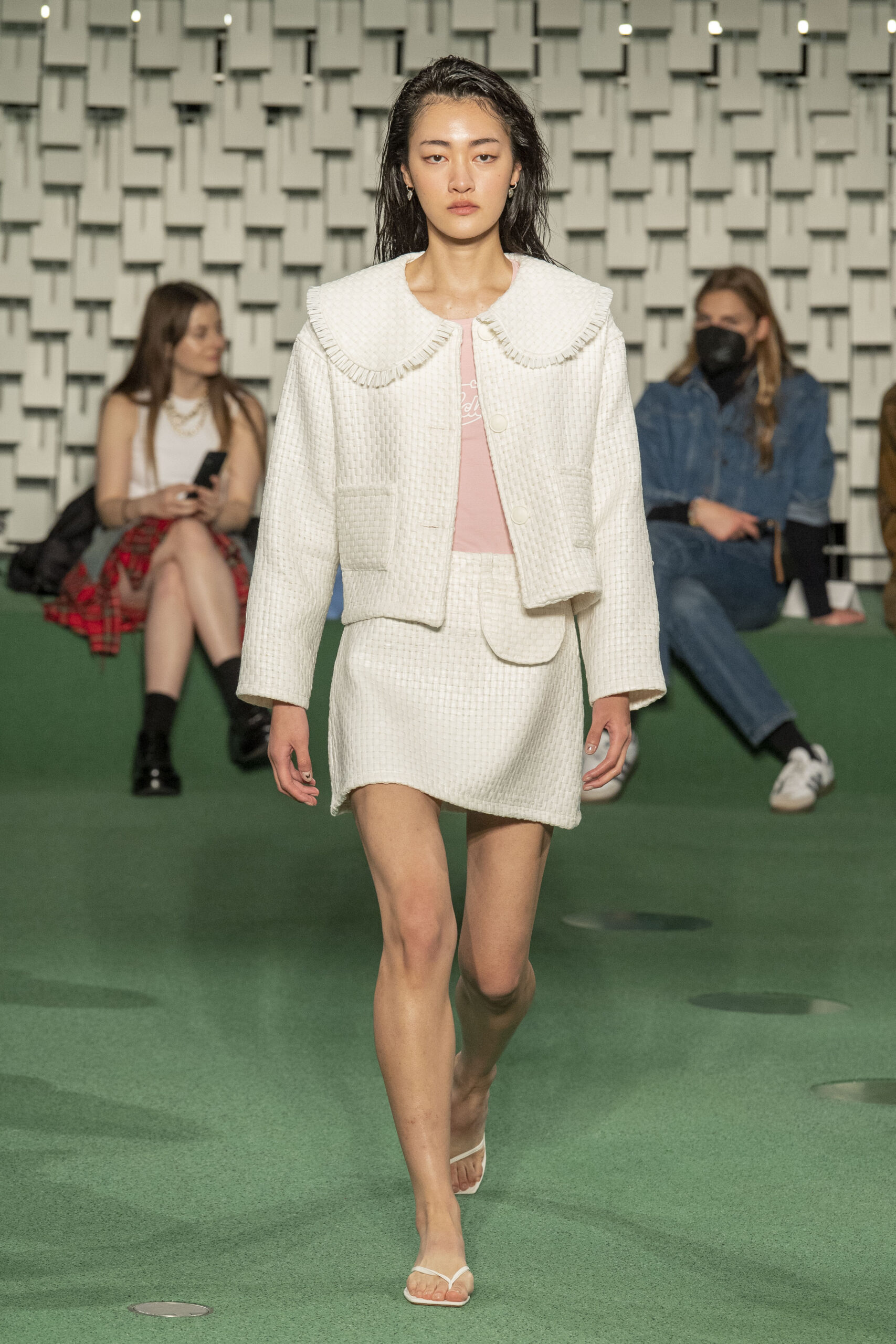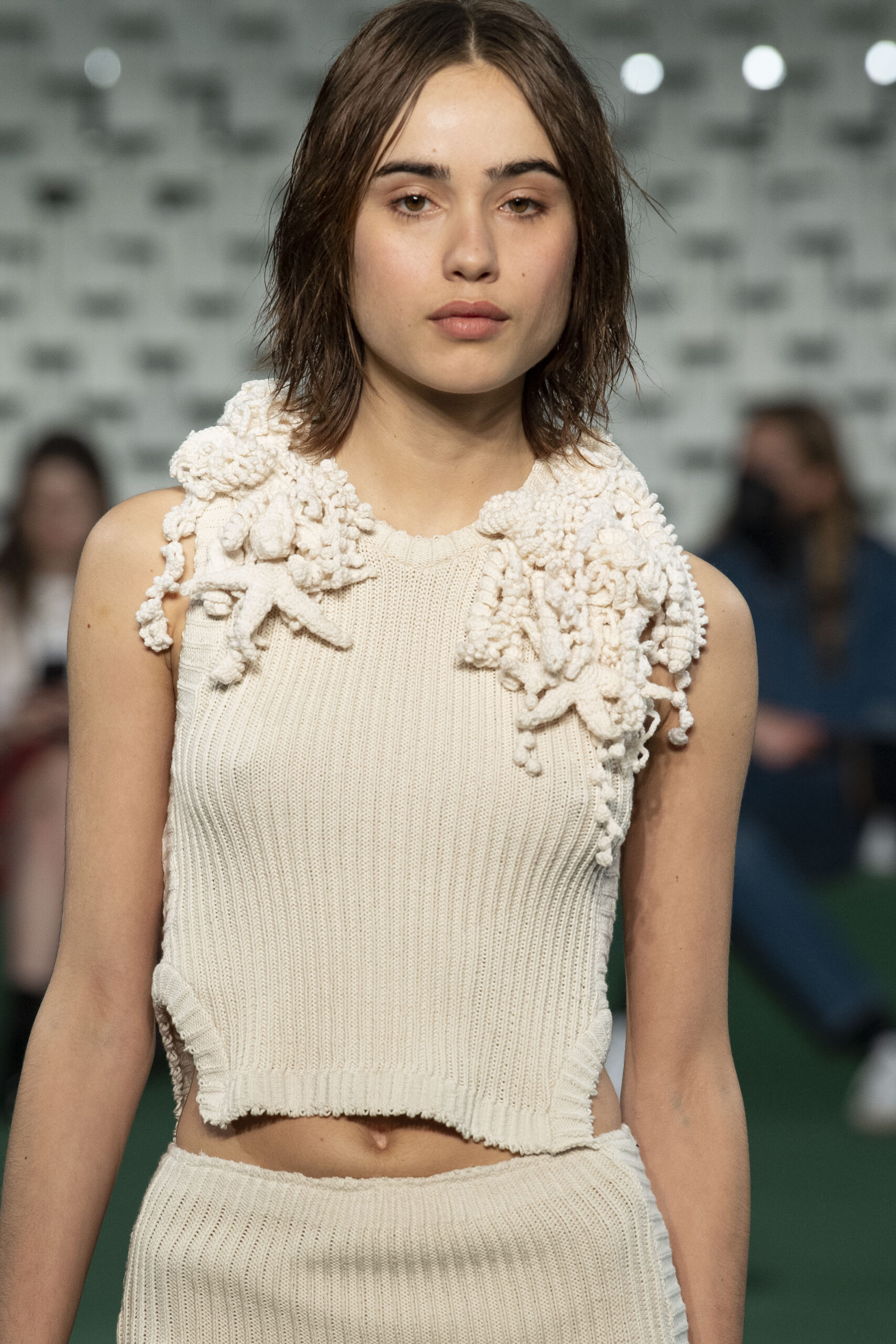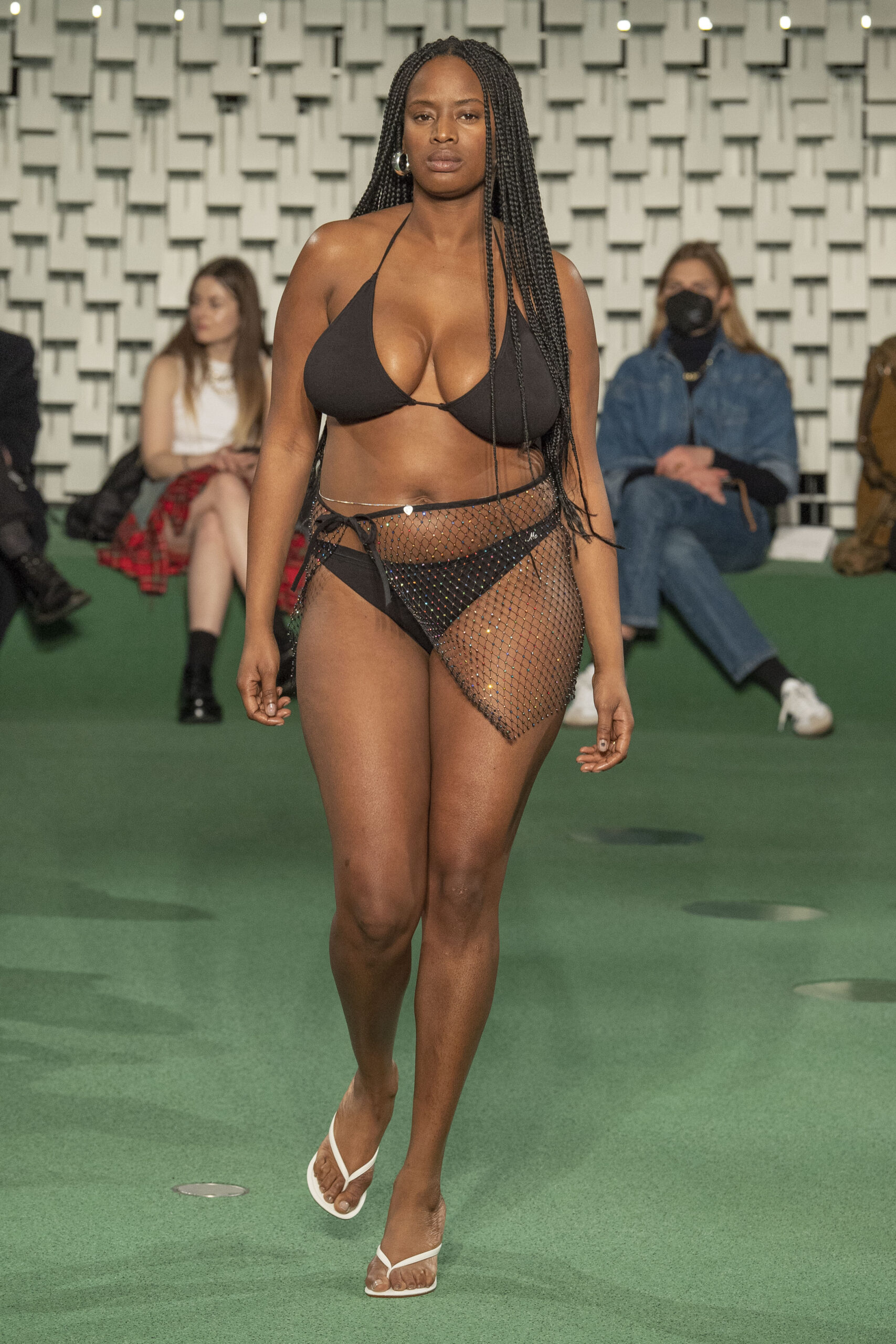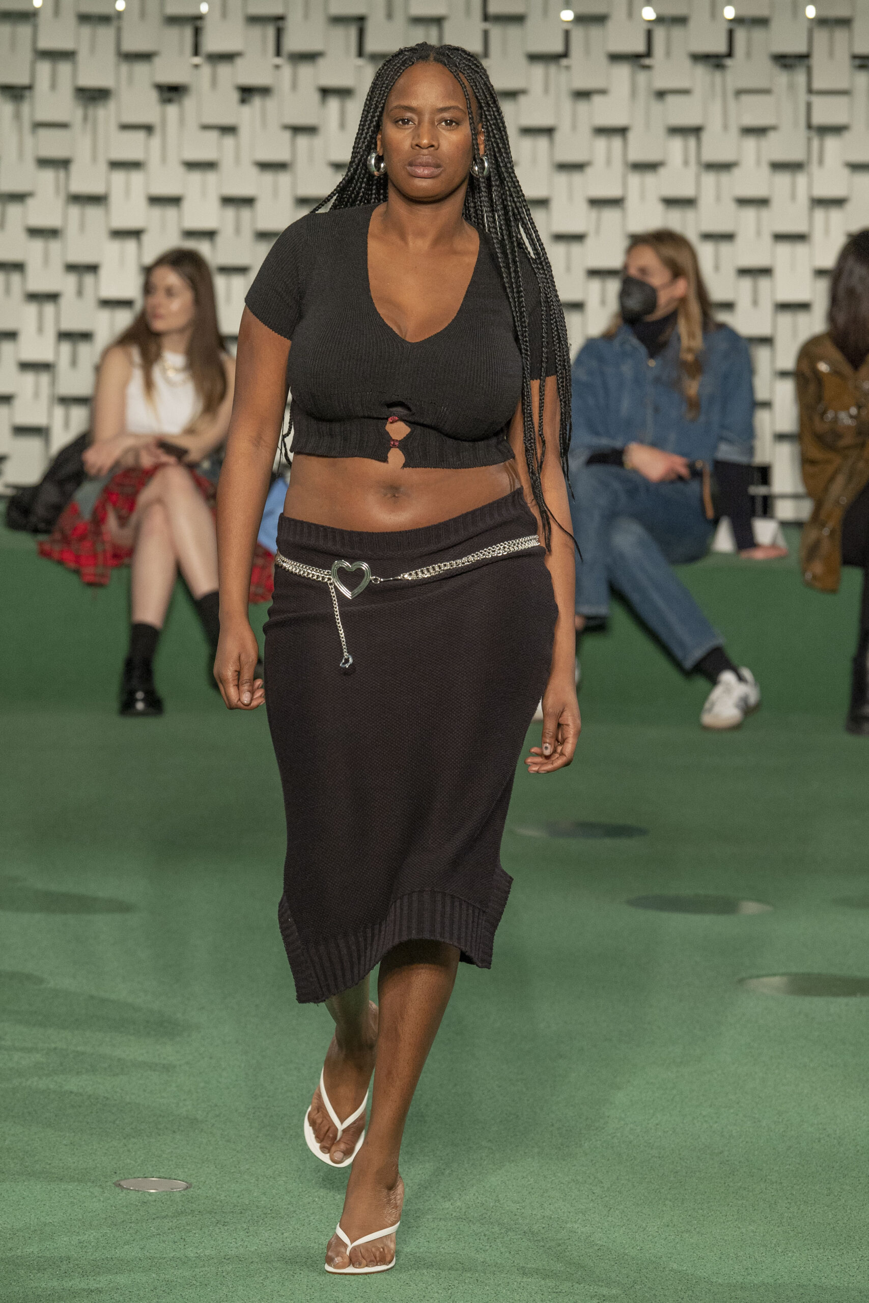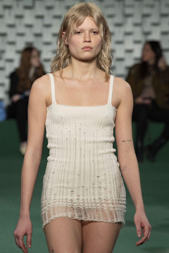 - A Model wearing an outfit from the Womens Ready to wear, pret a porter, collections, autumn winter 2022 2023, original creation, during the Womenswear Fashion Week in Paris, from the house of Maison Cleo