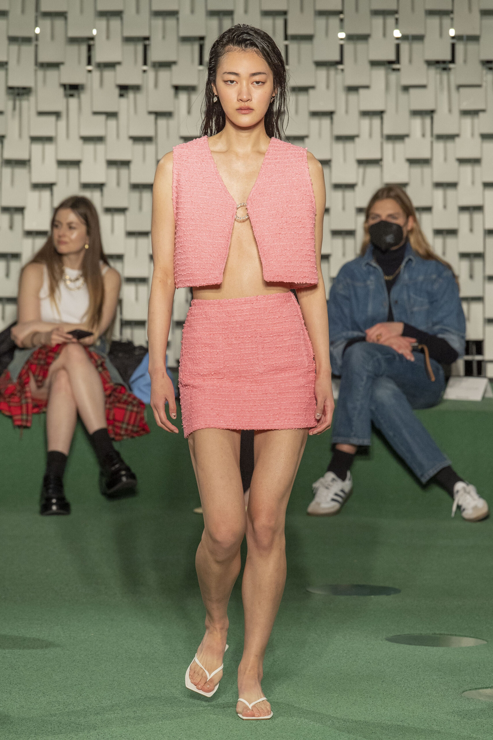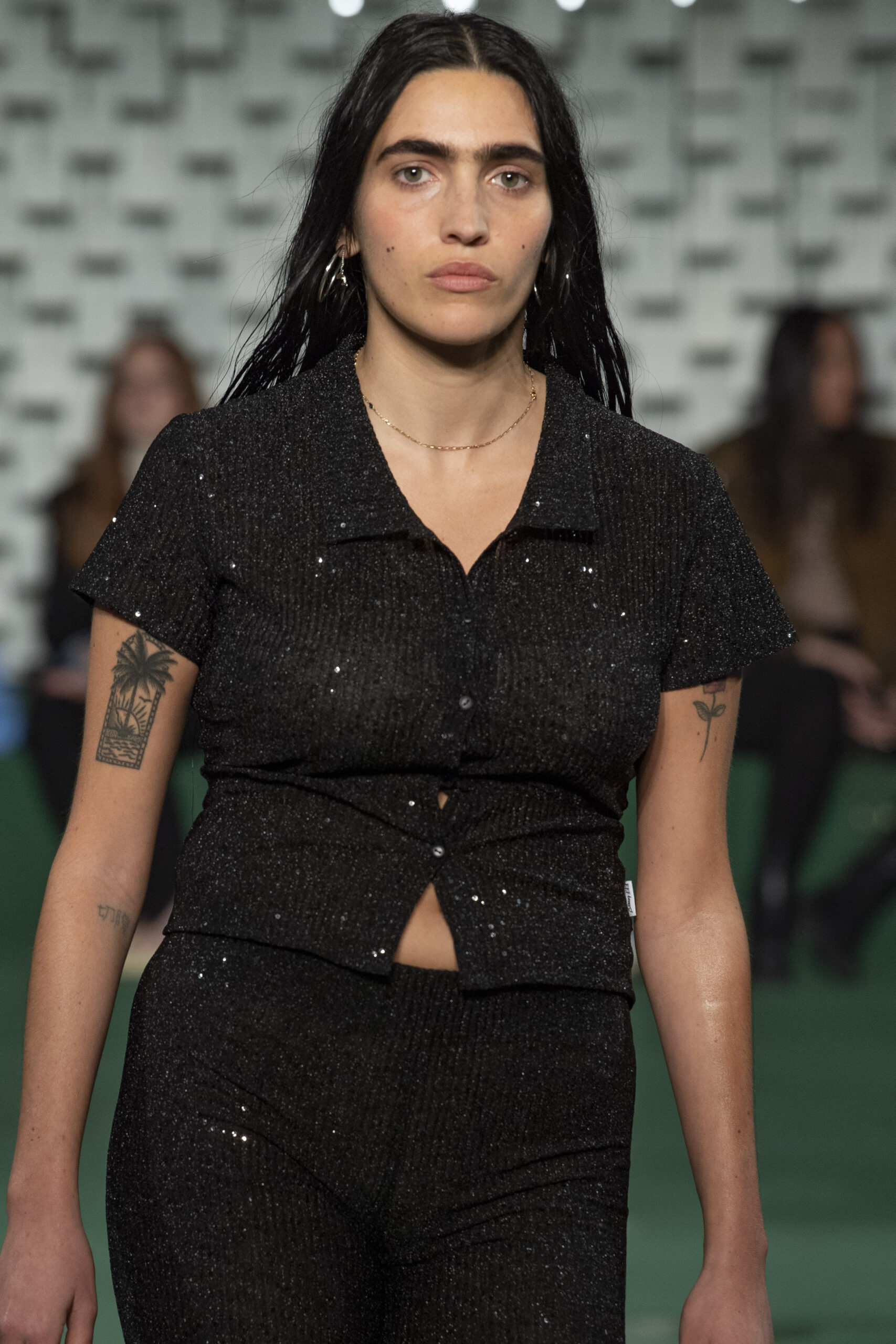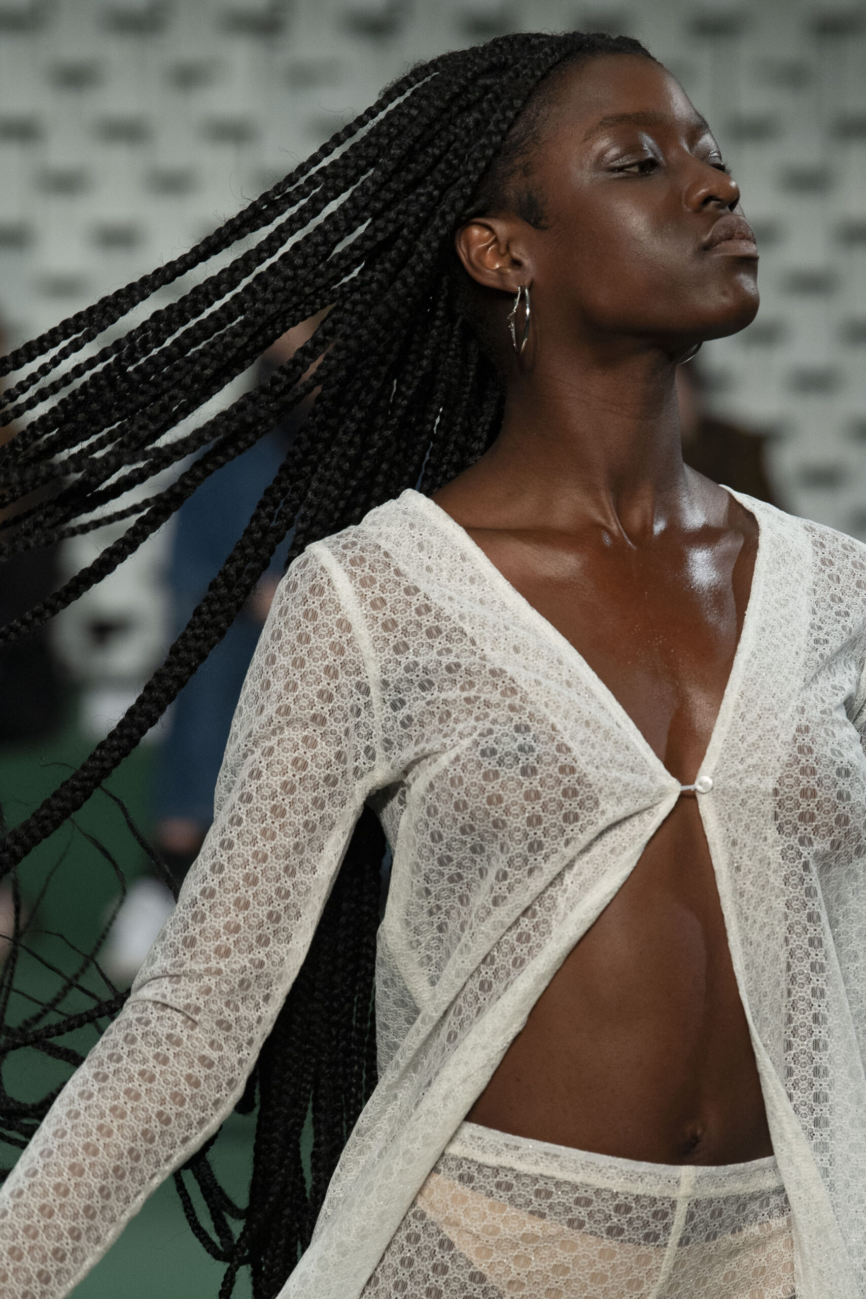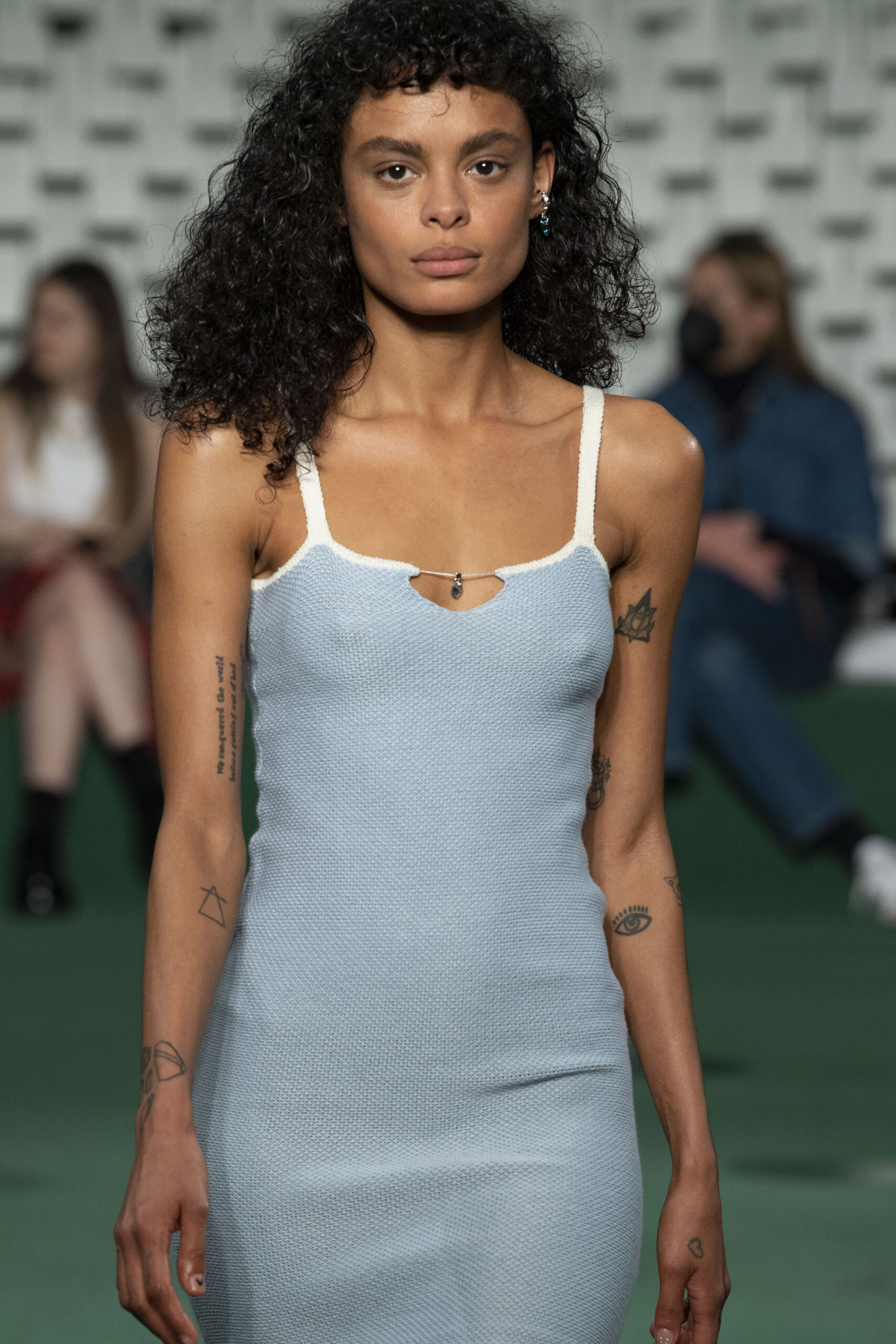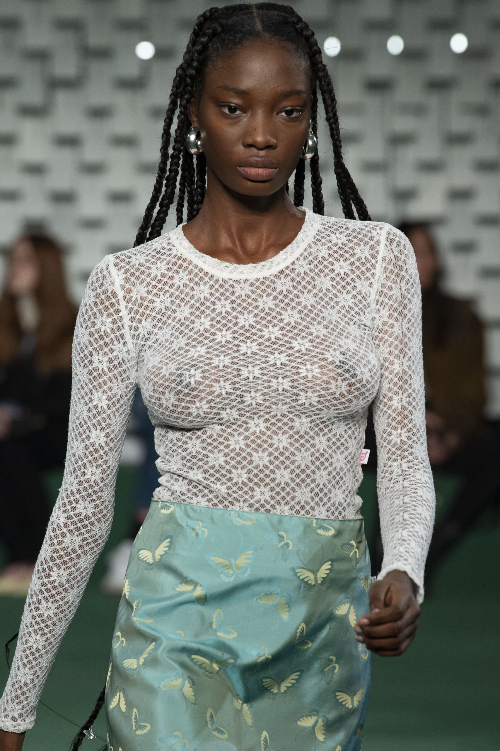 - A Model wearing an outfit from the Womens Ready to wear, pret a porter, collections, autumn winter 2022 2023, original creation, during the Womenswear Fashion Week in Paris, from the house of Maison Cleo