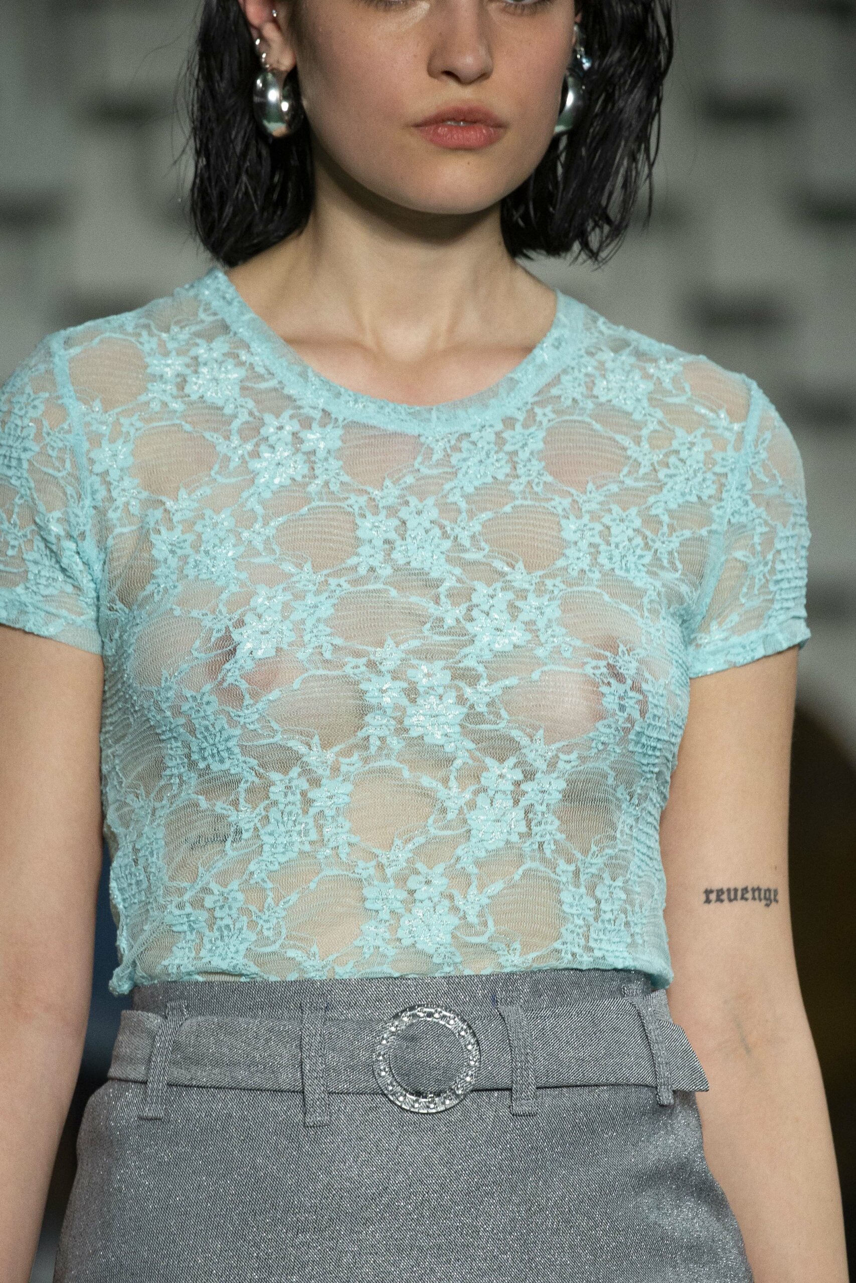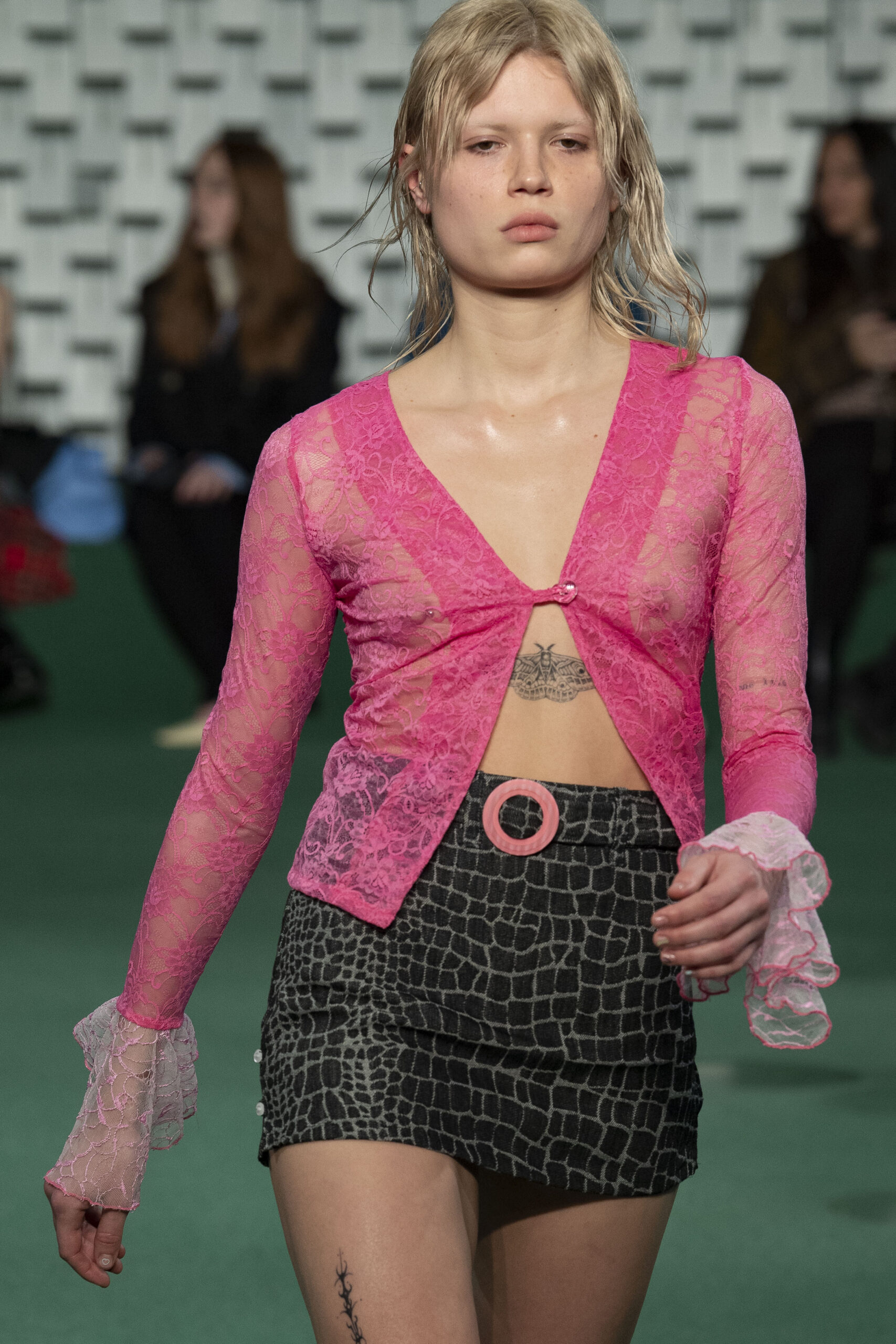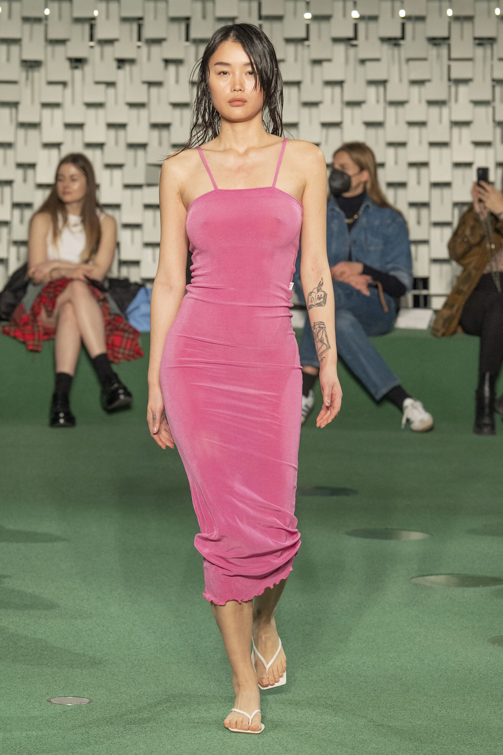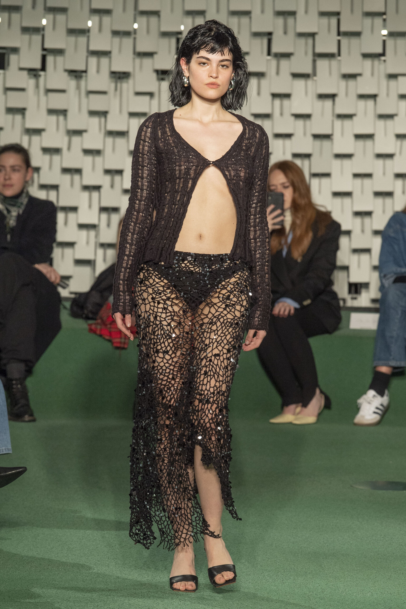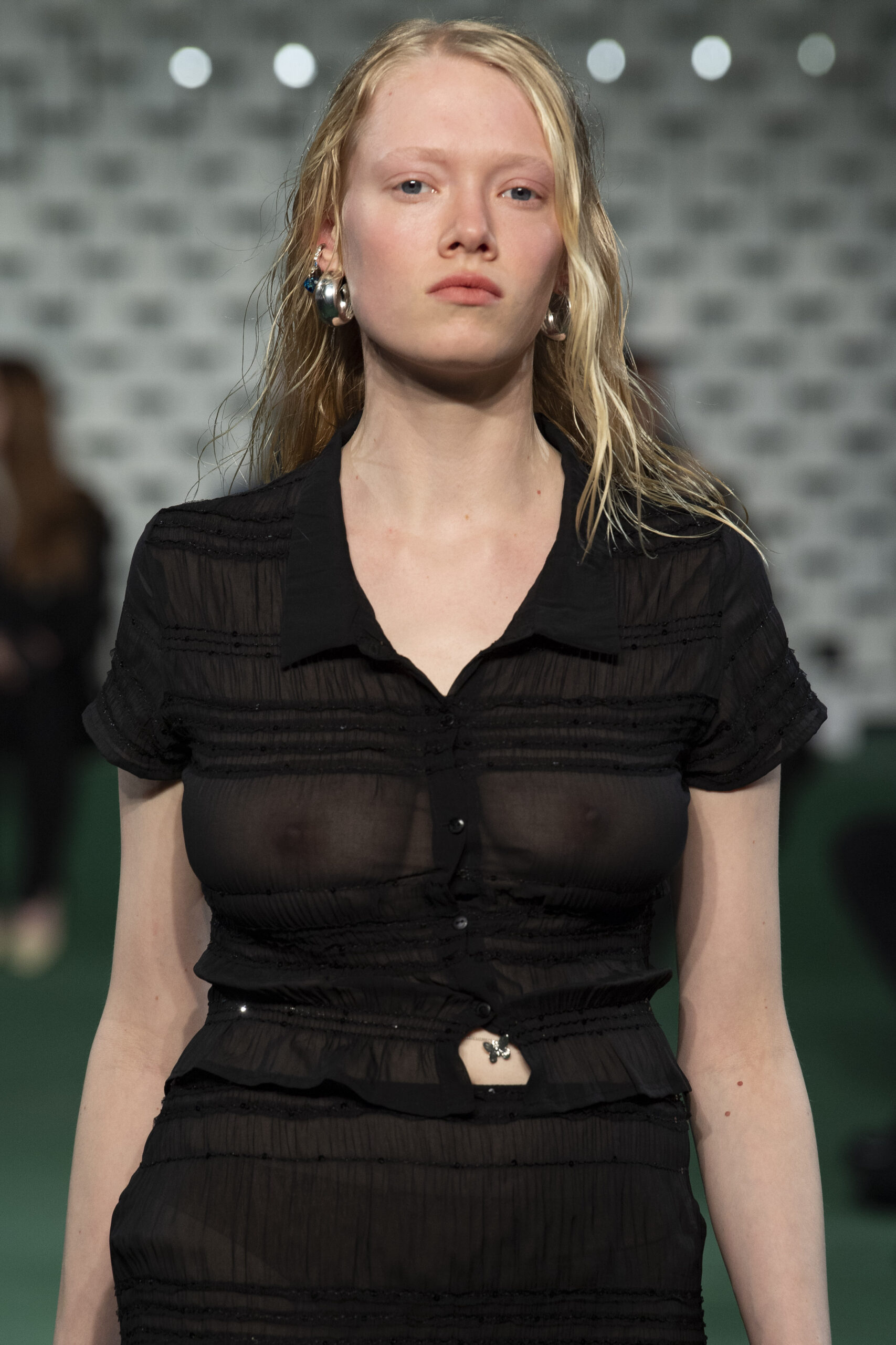 - A Model wearing an outfit from the Womens Ready to wear, pret a porter, collections, autumn winter 2022 2023, original creation, during the Womenswear Fashion Week in Paris, from the house of Maison Cleo