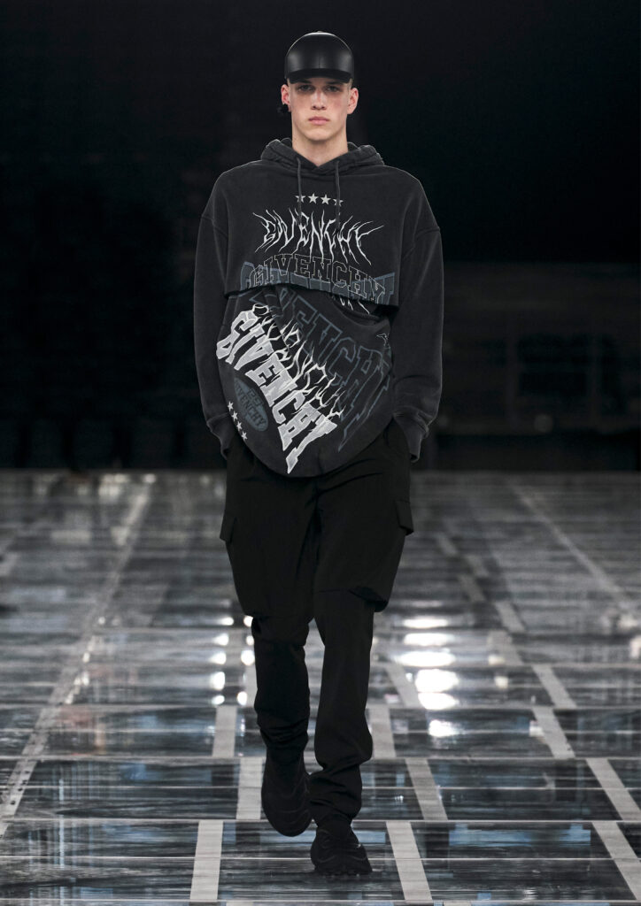 “I really wanted to create a synthesis of powerful, sophisticated femininity, with an interplay of multiple American and Parisian influences, sports and craftsmanship. Next to her stands a contemporary man with an instinct for chic nonchalance. On the runway, both are grounded by a sense of reality.” — Matthew M. Williams, Creative Director of Givenchy.