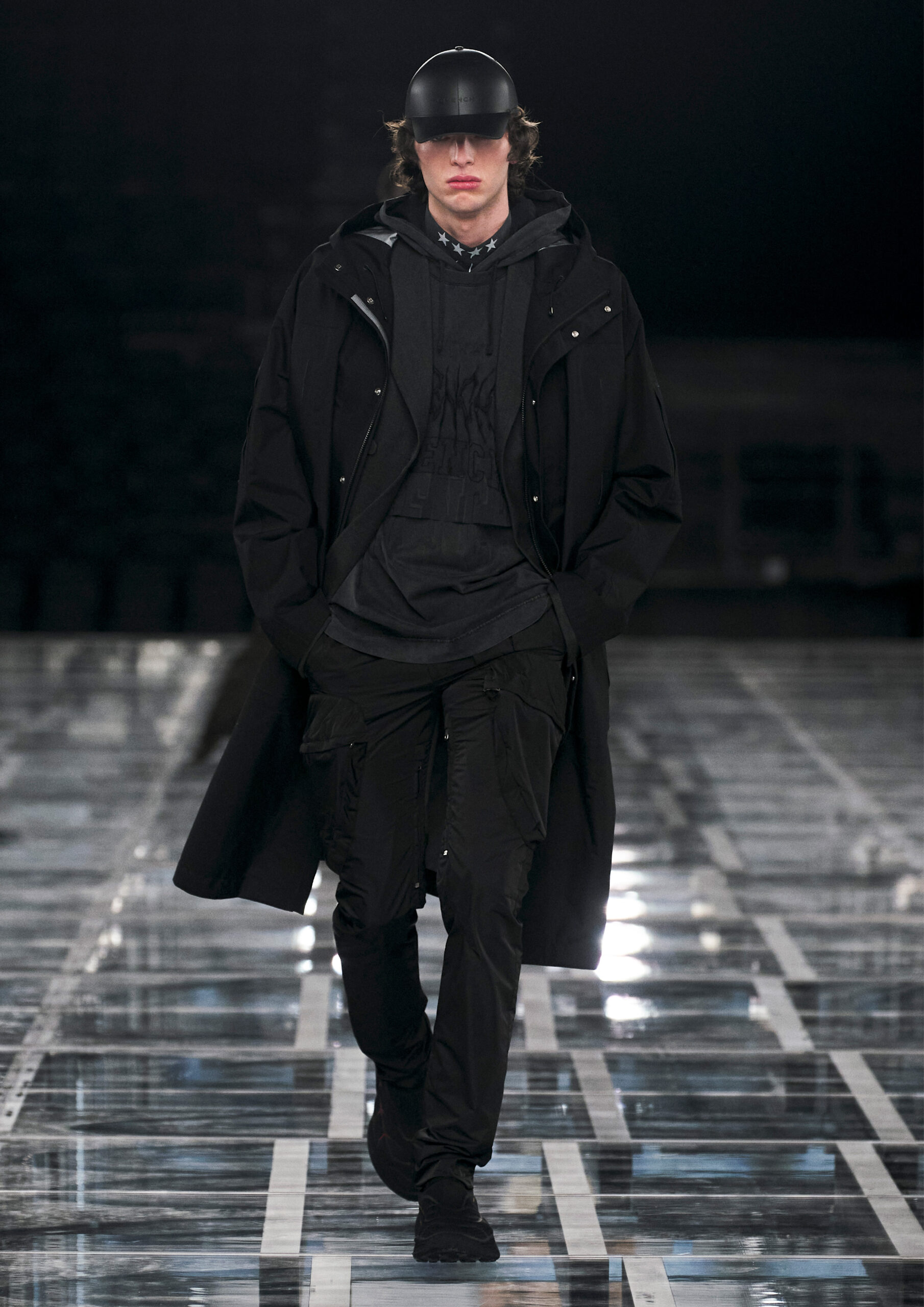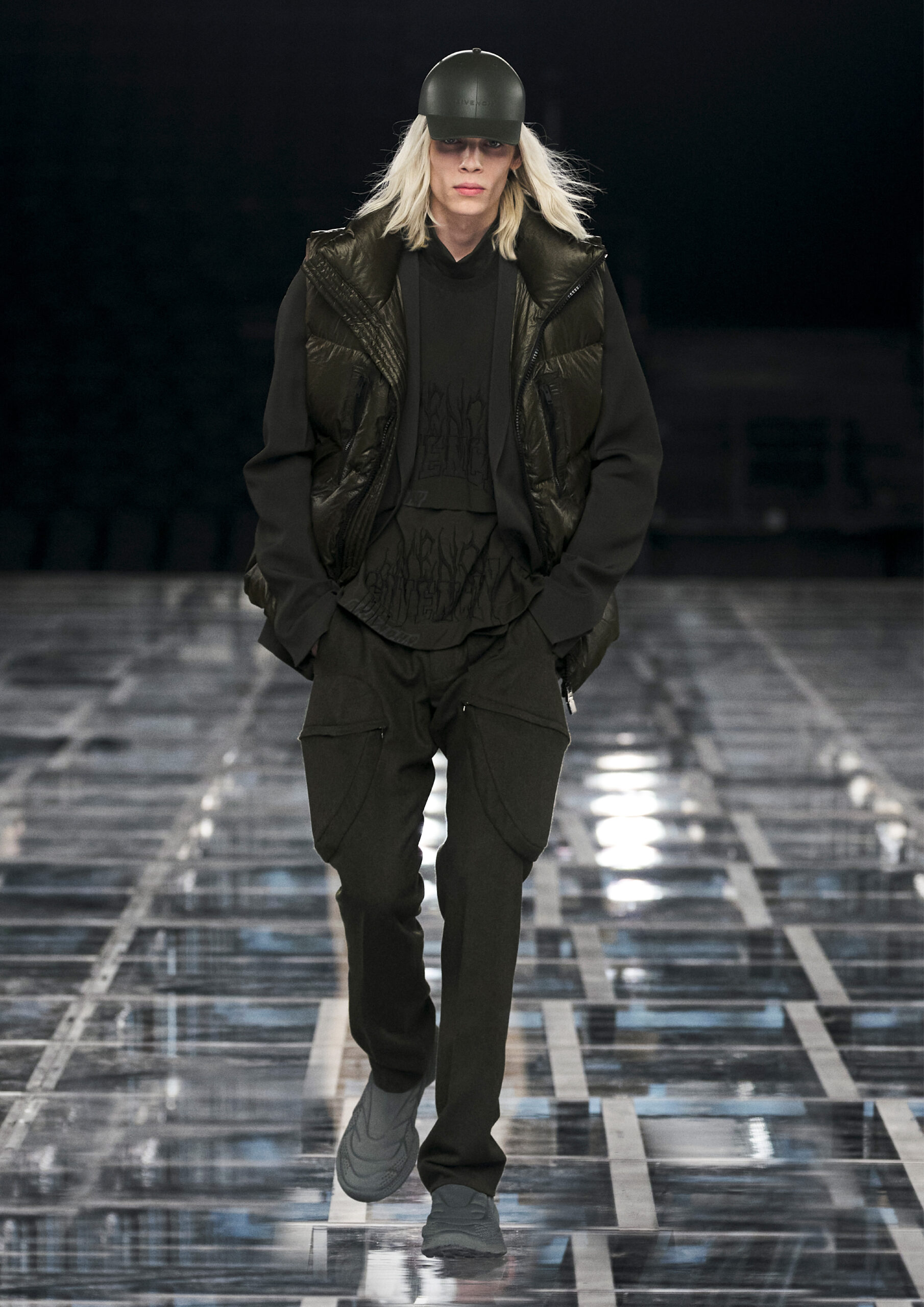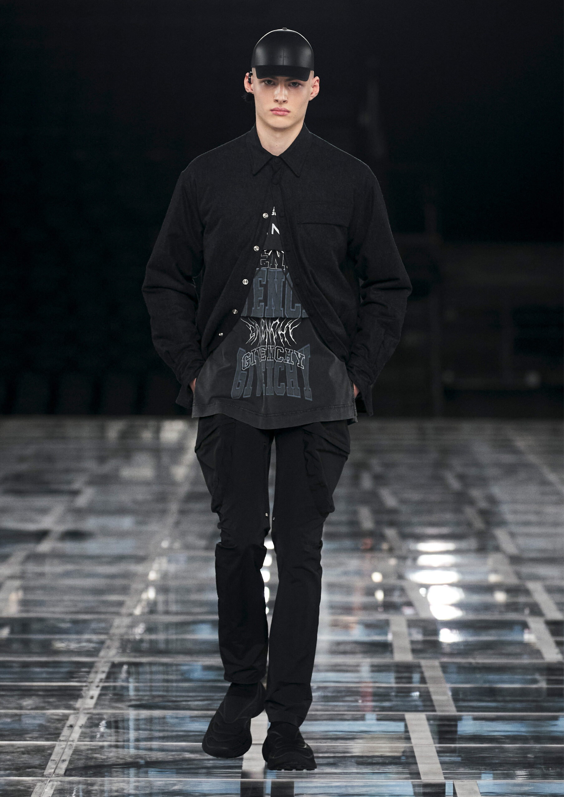 “I really wanted to create a synthesis of powerful, sophisticated femininity, with an interplay of multiple American and Parisian influences, sports and craftsmanship. Next to her stands a contemporary man with an instinct for chic nonchalance. On the runway, both are grounded by a sense of reality.” — Matthew M. Williams, Creative Director of Givenchy.