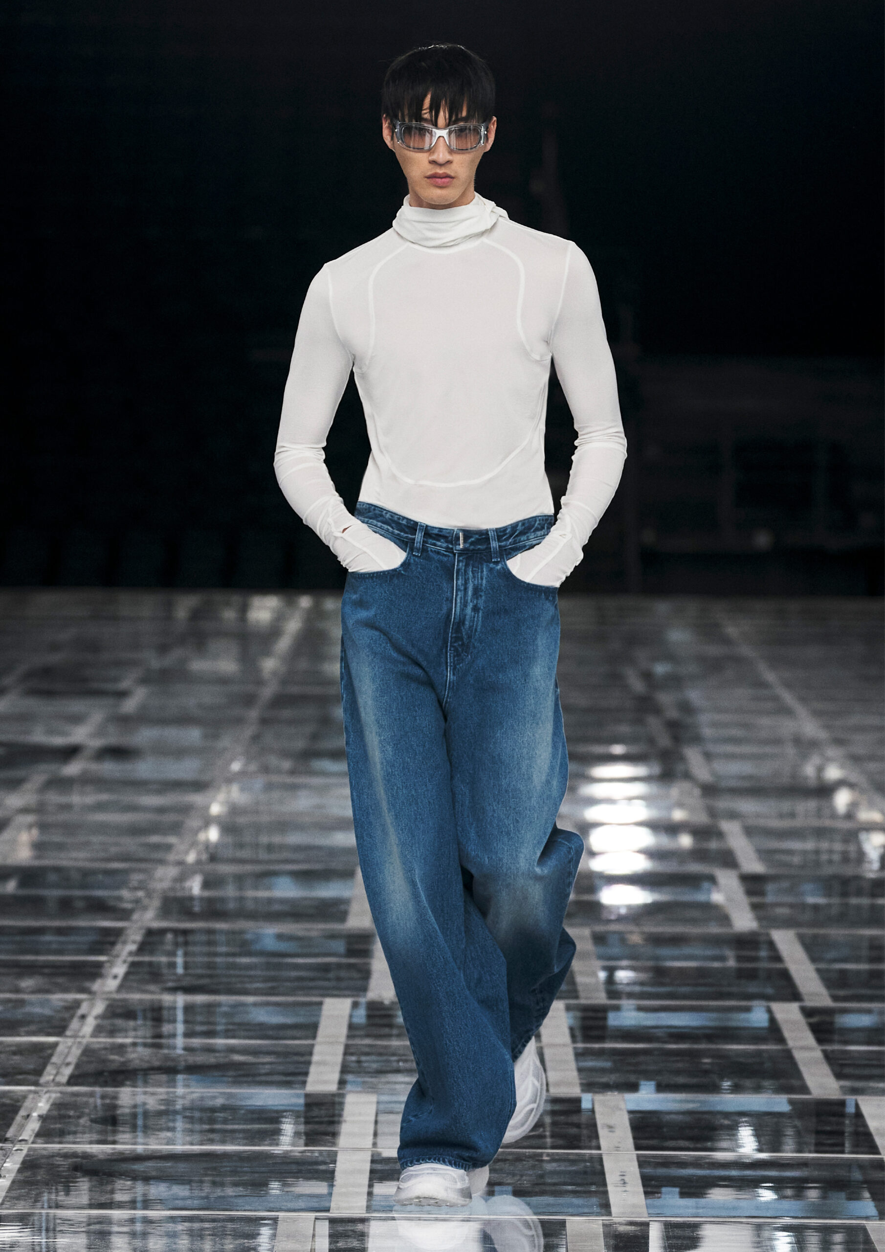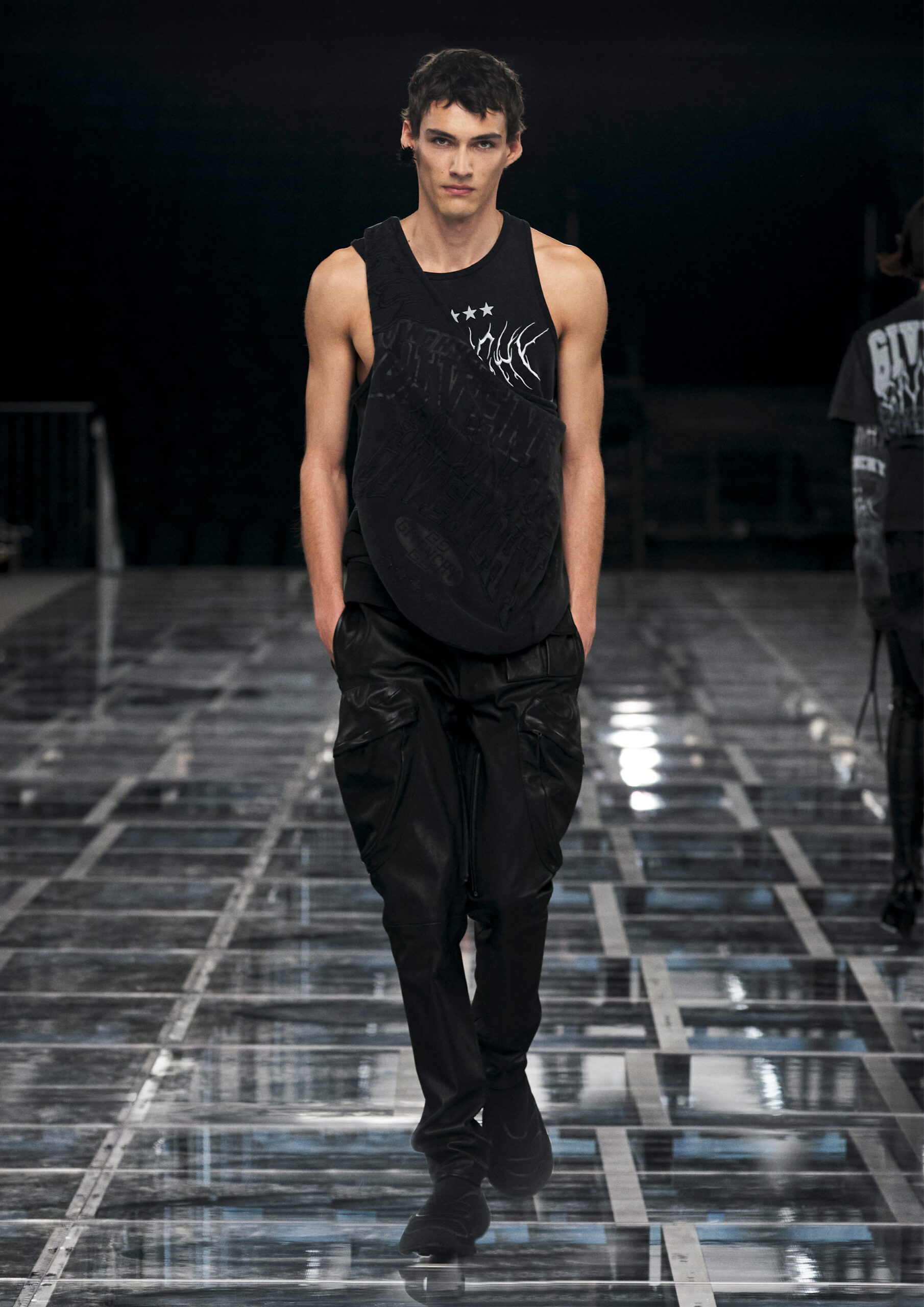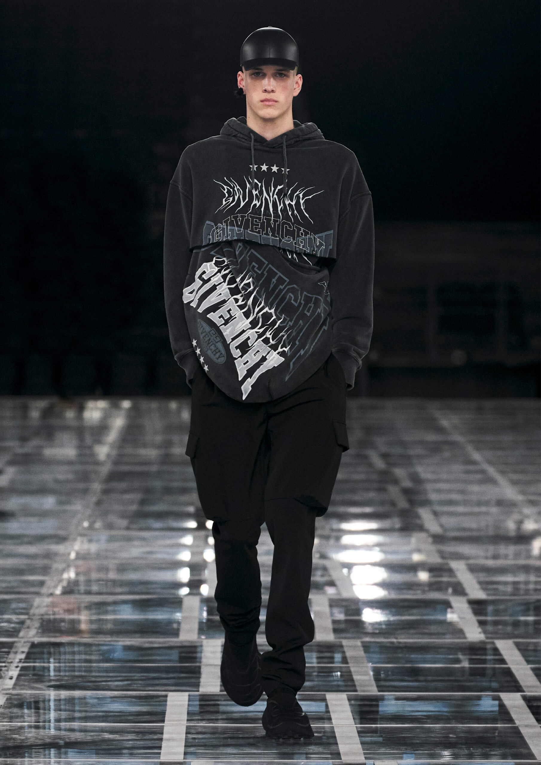 “I really wanted to create a synthesis of powerful, sophisticated femininity, with an interplay of multiple American and Parisian influences, sports and craftsmanship. Next to her stands a contemporary man with an instinct for chic nonchalance. On the runway, both are grounded by a sense of reality.” — Matthew M. Williams, Creative Director of Givenchy.