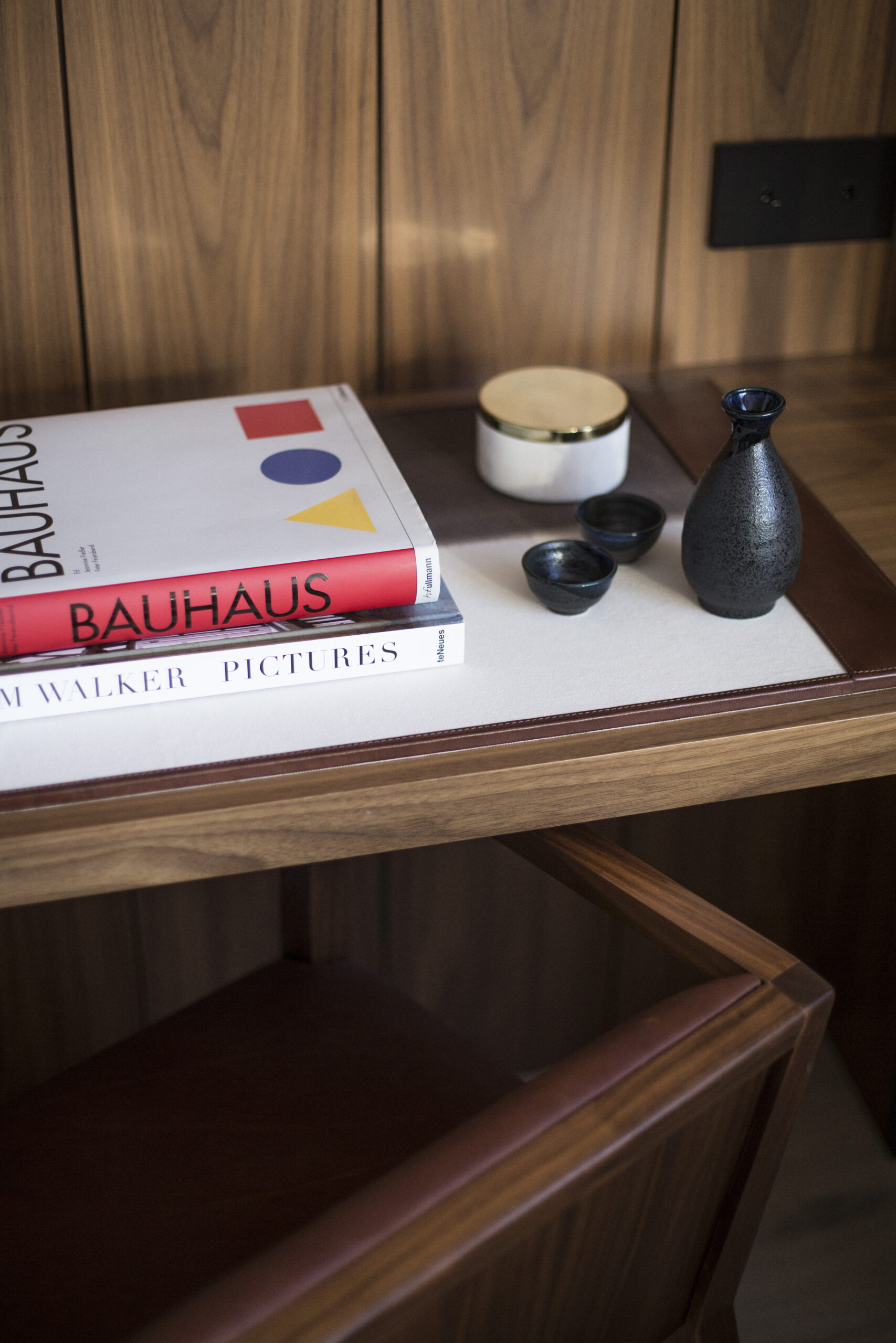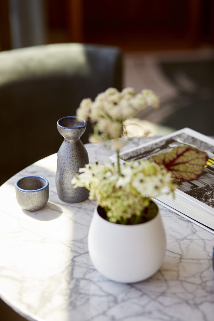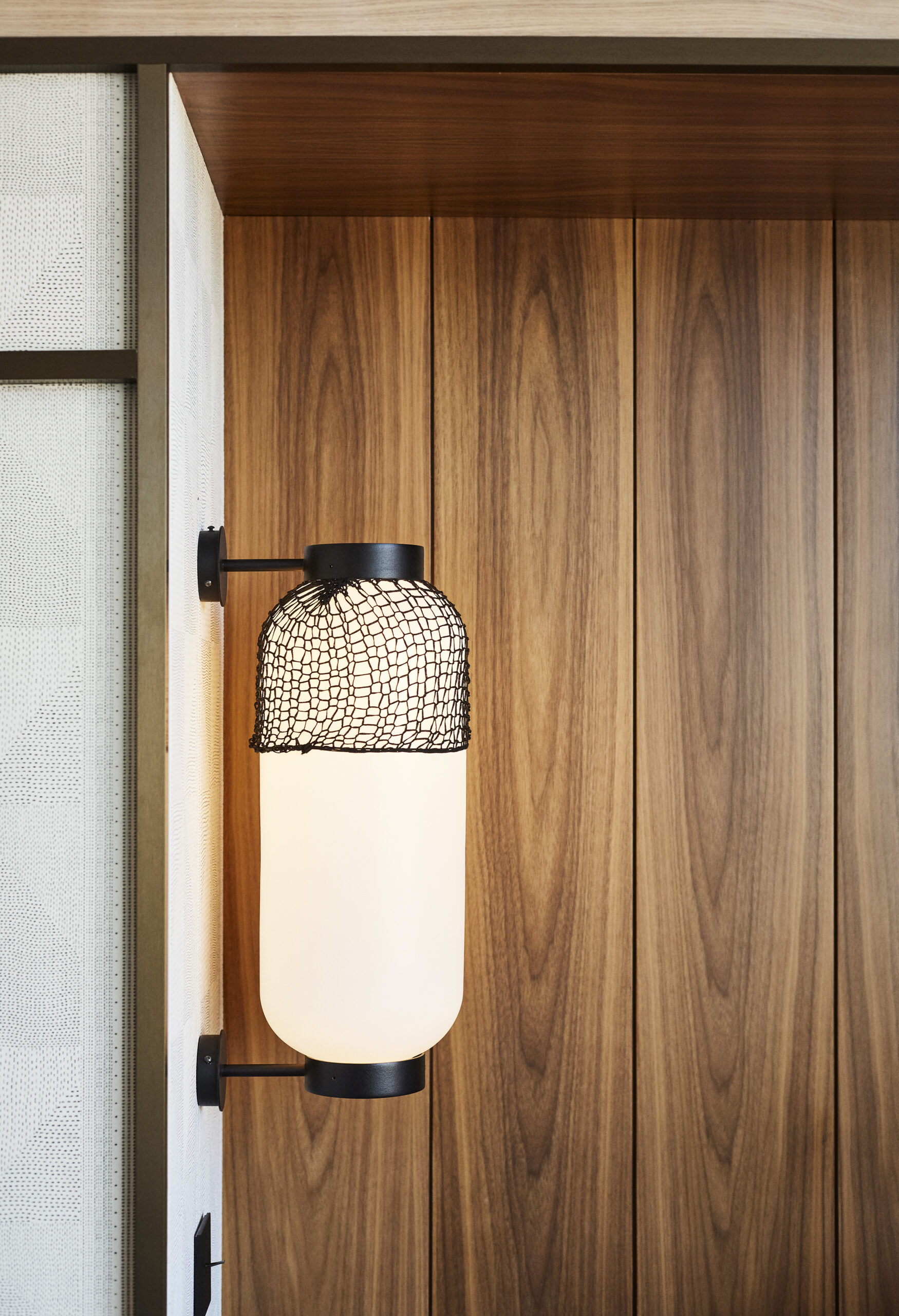 Cette technique a été utilisée pour inspirer le design du restaurant en combinant la poterie japonaise traditionnelle brisée dans une application de type Gaudi sur les murs et les plafonds du bar. Les chambres sont conçues de manière minimale, avec des bois et des pierres chaudes, ce qui rend la palette légère et aérée.