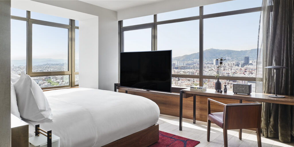 Le restaurant Nobu, de renommée mondiale, se trouve au 23e étage et offre des vues inégalées sur l’horizon de Barcelone et la Méditerranée.