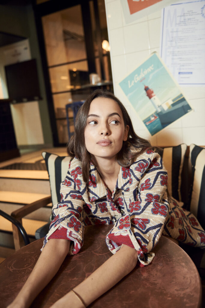 La deuxième escale est une évasion au Japon dans la région du Kansai. A l’aube du printemps, on célèbre la floraison des cerisiers sur Le Chemin de la Philosophie. Entre raffinement et romantisme, ce parcours inspire une initiation à l’Ikebana, l’art de la composition florale, retranscrit sur un Kimono, des blouses romantiques brodées ou une robe midi boutonnée veloutée qui évoque la délicatesse des Sakura.