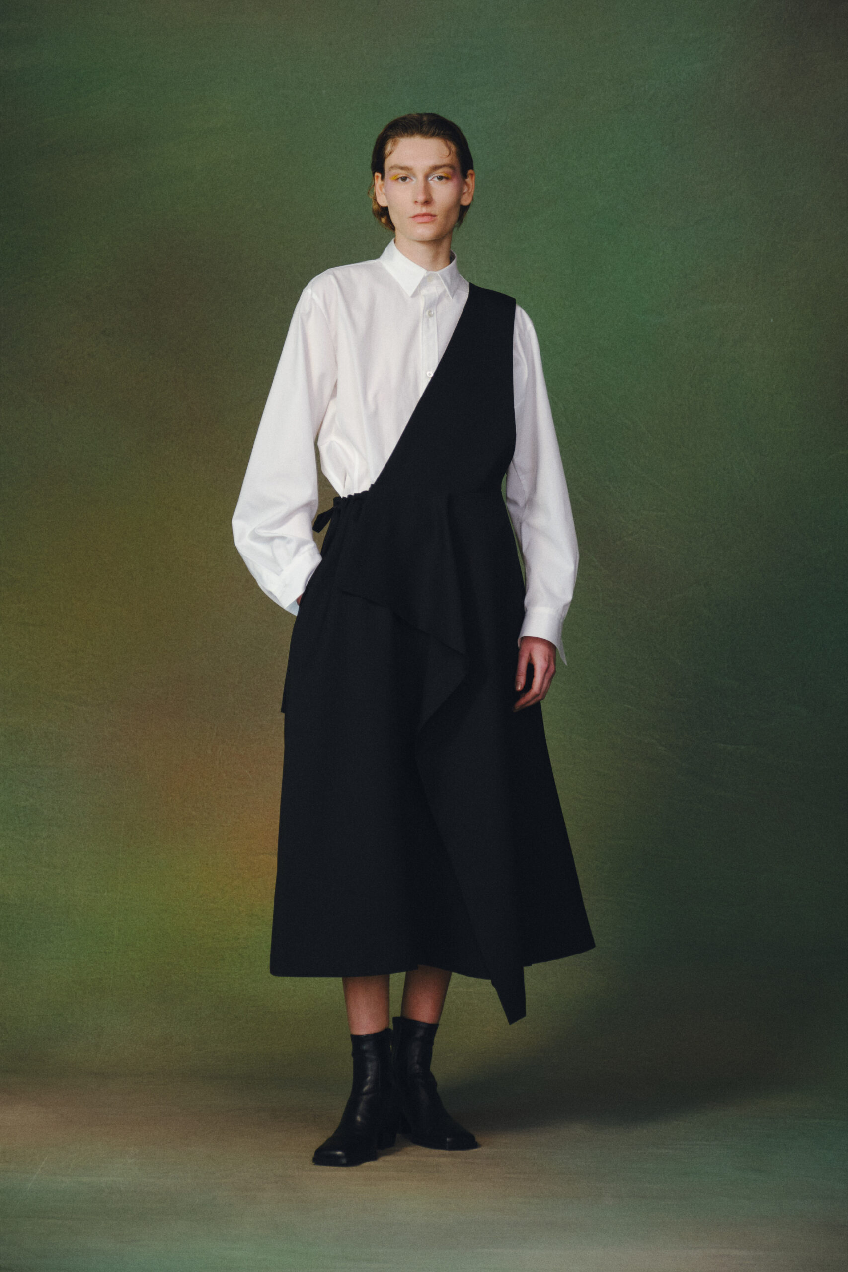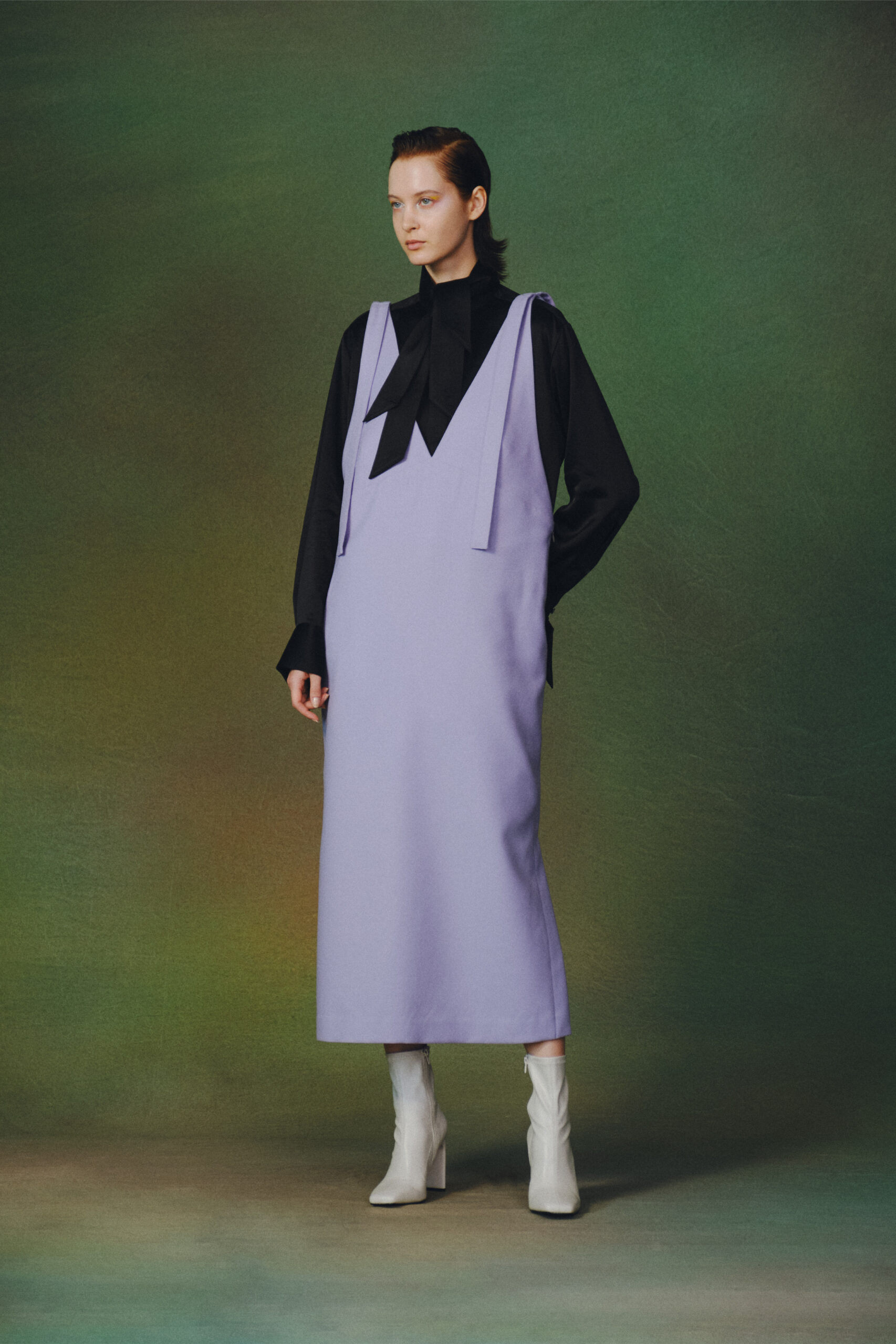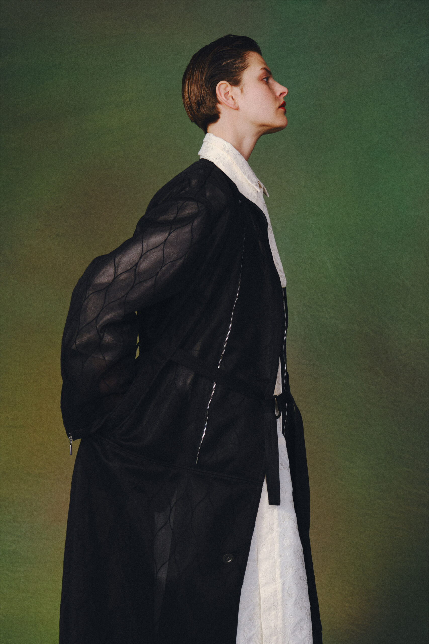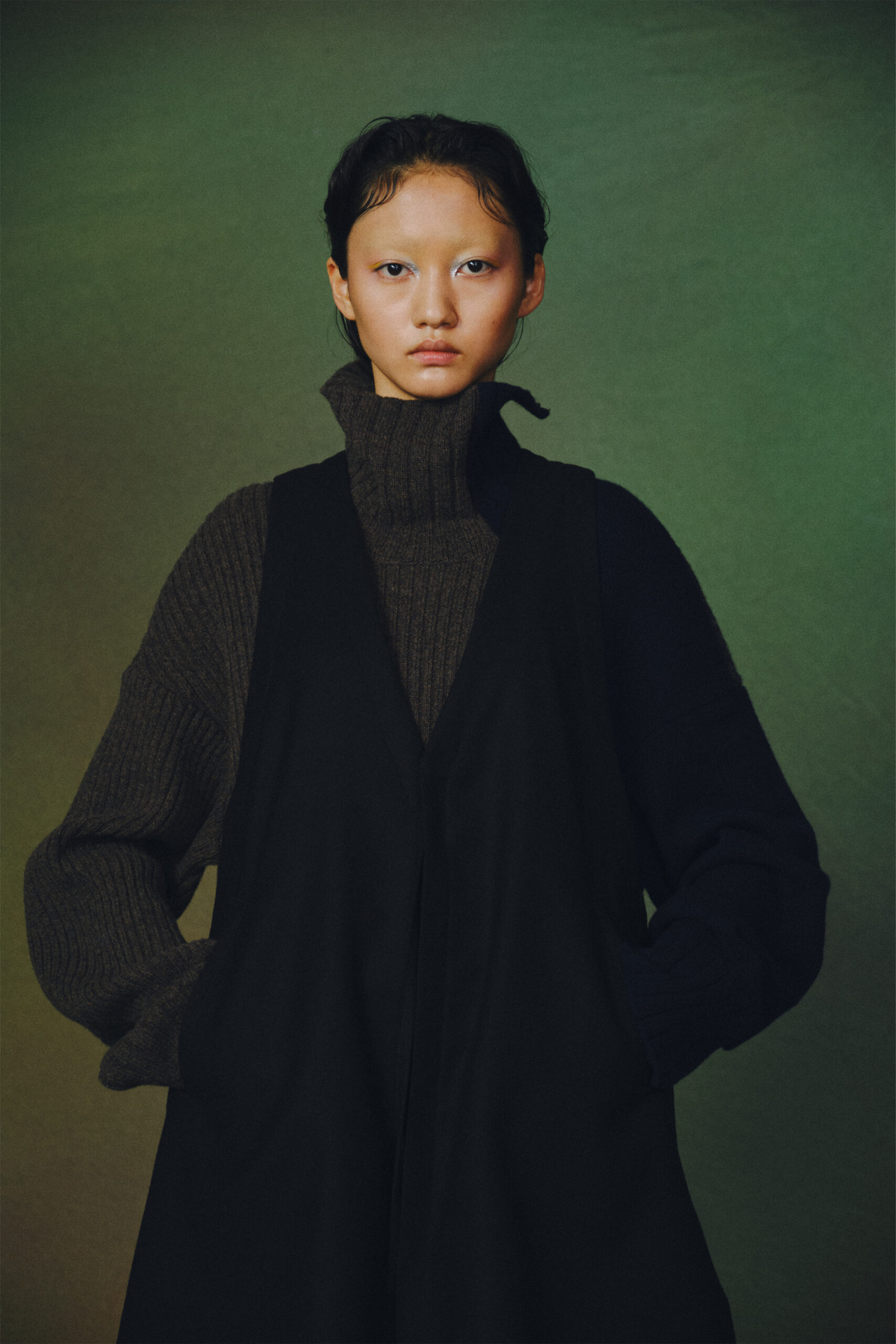 In the women’s collection, the addition of a sailor collar to a collarless jacket introduces a new approach to tailoring, while maintaining the jacket’s original function. A minimalist tie is added to the space created by cutting down on the design, which is the key for this season. Along with random skirts that look like miniskirts or long skirts, and denim-like wool nylon skirts, the collection brings out new styling and expands the possibilities of layering.