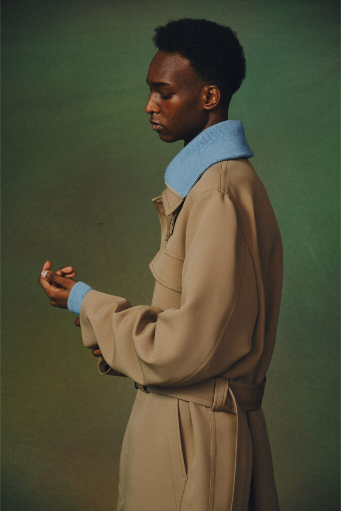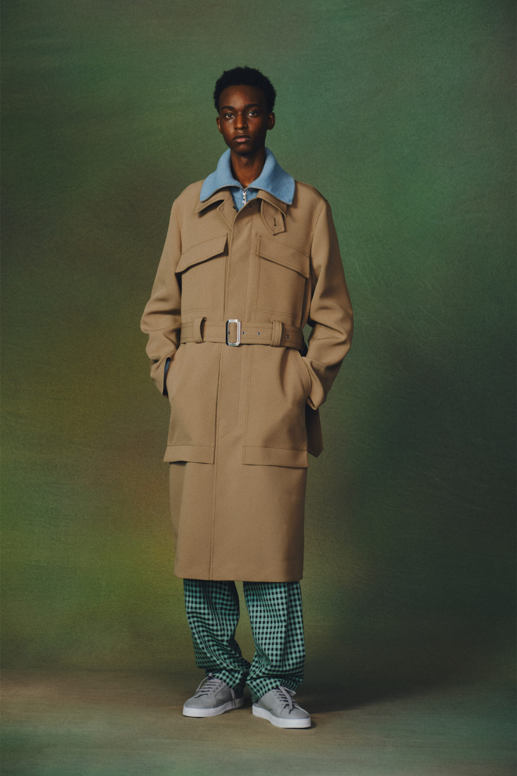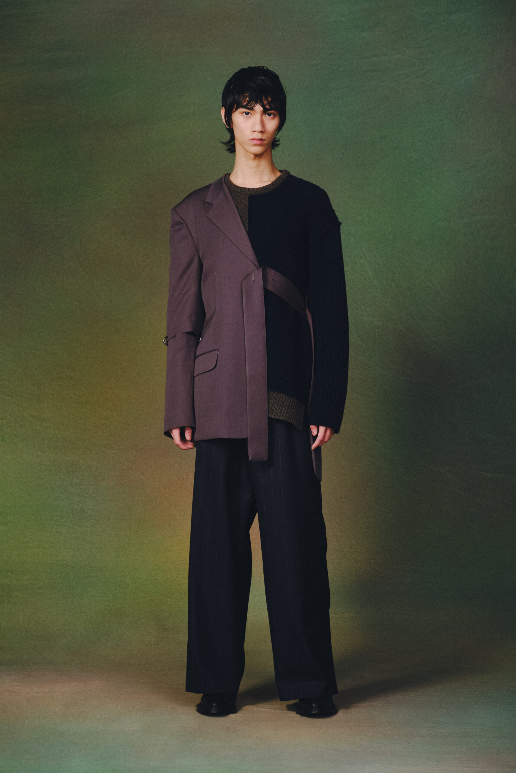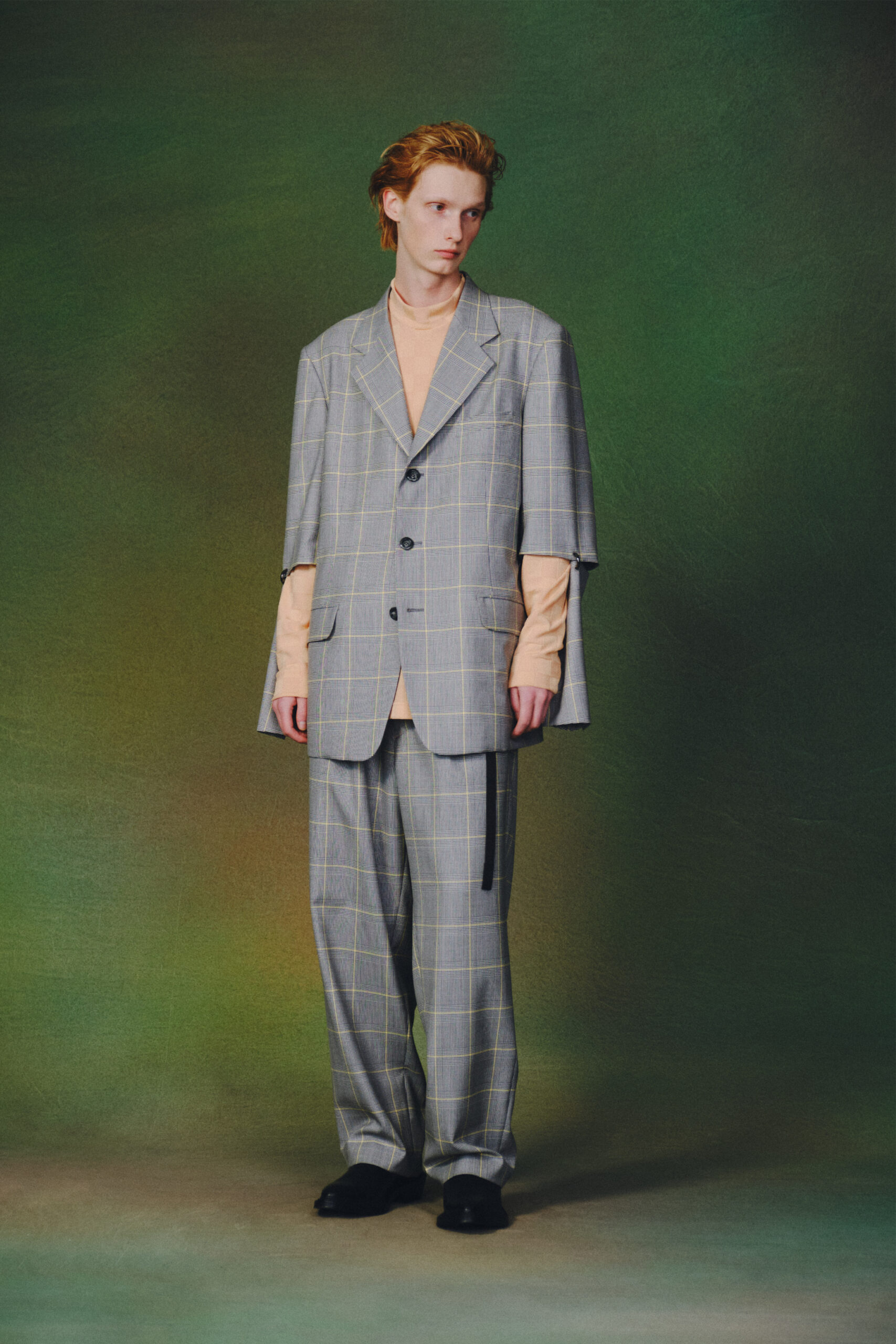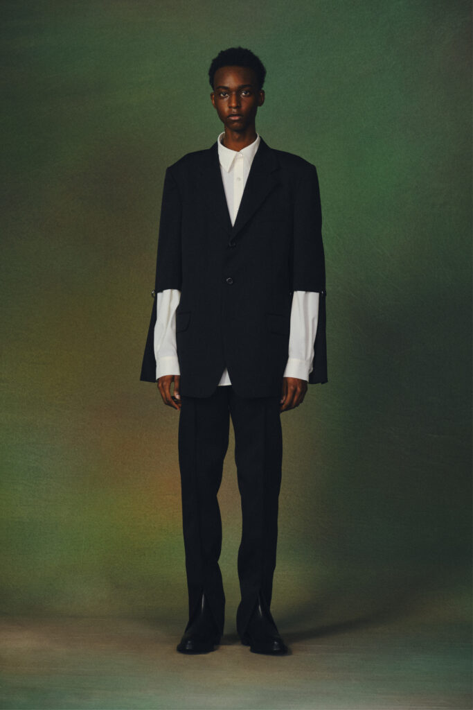 A playful touch of flexibility is also added to the men’s look. Sporty design elements and functionality are added, such as a jacket with a collar replaced by ribbed material. The sailor collar, also seen in the men’s look, is layered on the double-breasted jacket and shows various expressions depending on where the buttons are fastened.