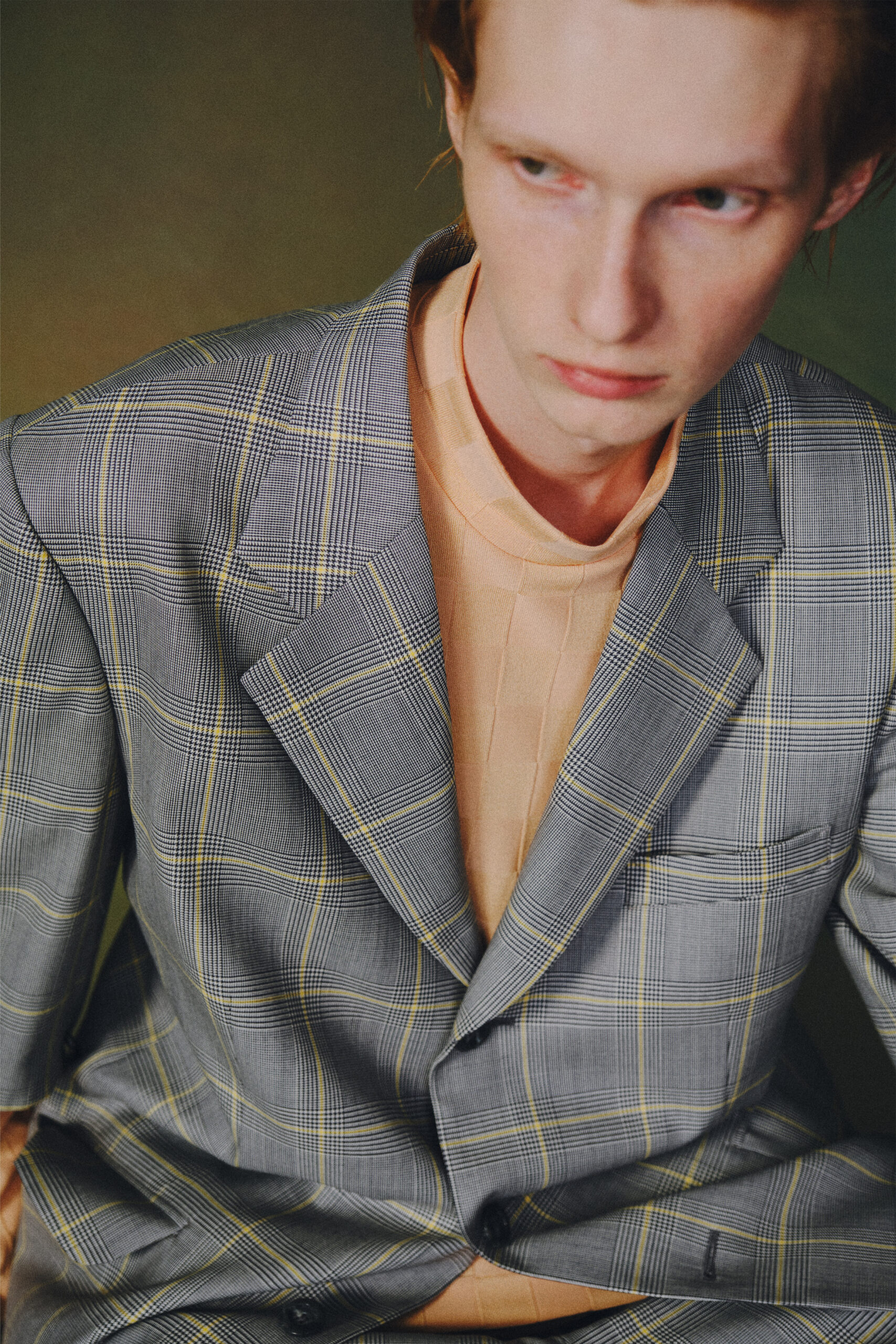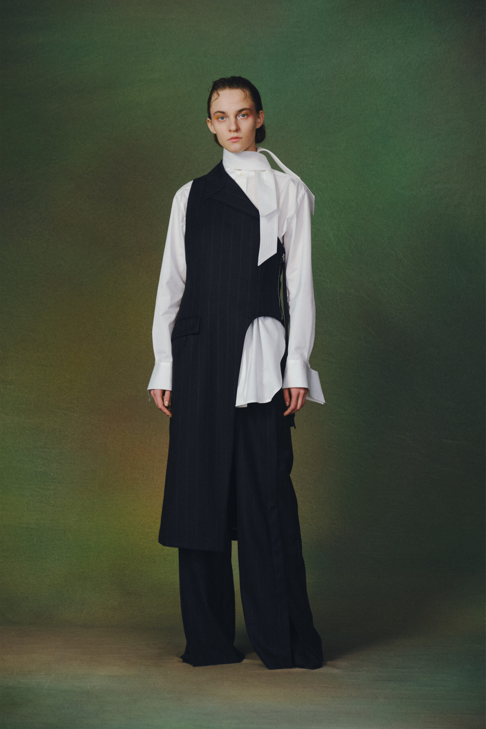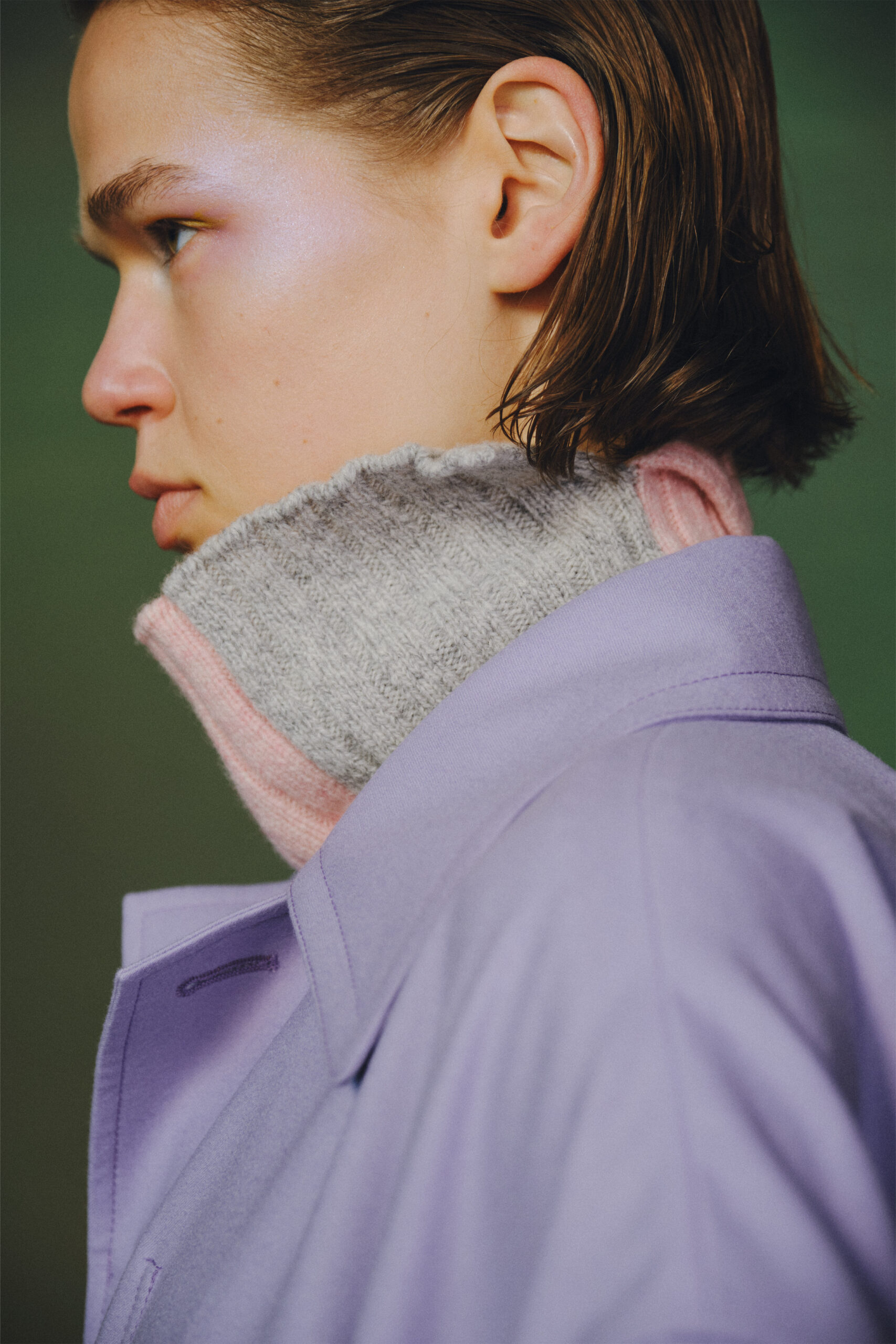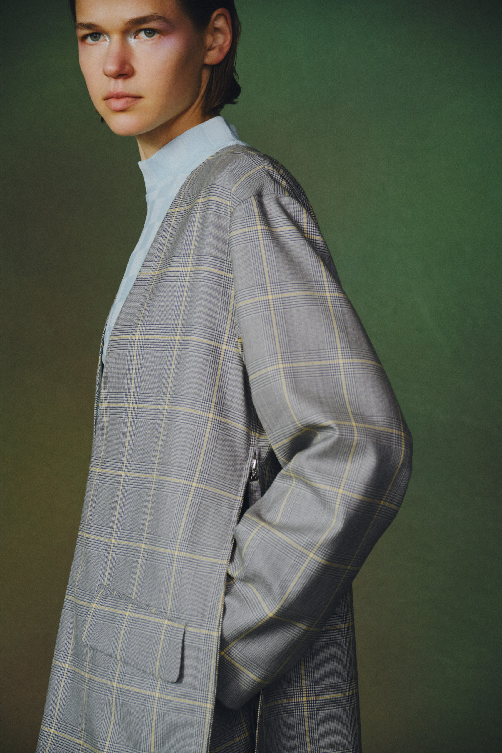 A playful touch of flexibility is also added to the men’s look. Sporty design elements and functionality are added, such as a jacket with a collar replaced by ribbed material. The sailor collar, also seen in the men’s look, is layered on the double-breasted jacket and shows various expressions depending on where the buttons are fastened.