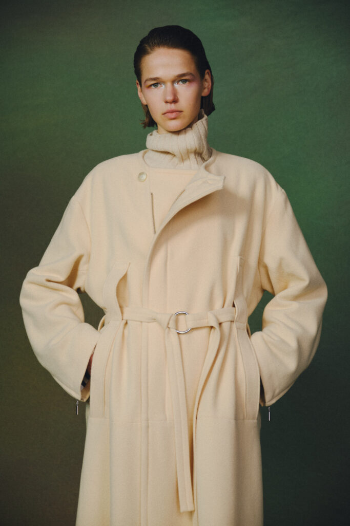 For the Autumn-Winter 2022 season, UJOH expresses a kind of positivity and the will to move forward in this challenging era, starting from the search for a new form by cutting down on the design of the brand’s iconic jacket. By cutting down on the design and adding minimalist details, each item is also given a new lease of life. The mood of the collection is completed by the movement of the fabric created by the flowing asymmetrical lines, the texture of the materials, and the layering of the cuts.