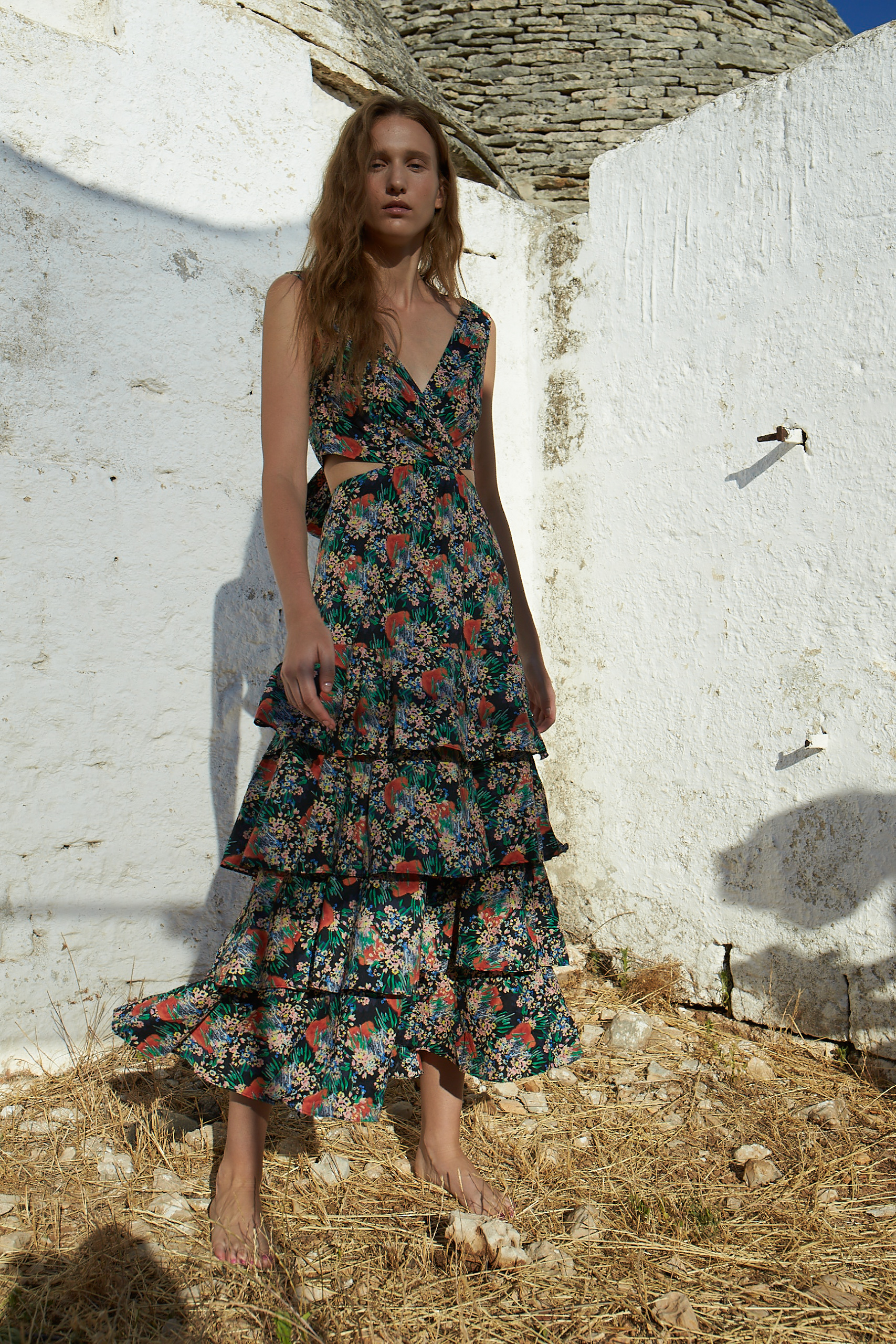 The prints and patterns create an engaging scenario and the undisputed protagonists are: the oriental patterns in contrast to the animalier prints, the precious brocades in tune with the persuasive silk and at the end the harmonious and poetic floral prints and the technical nylon with curious material textures.