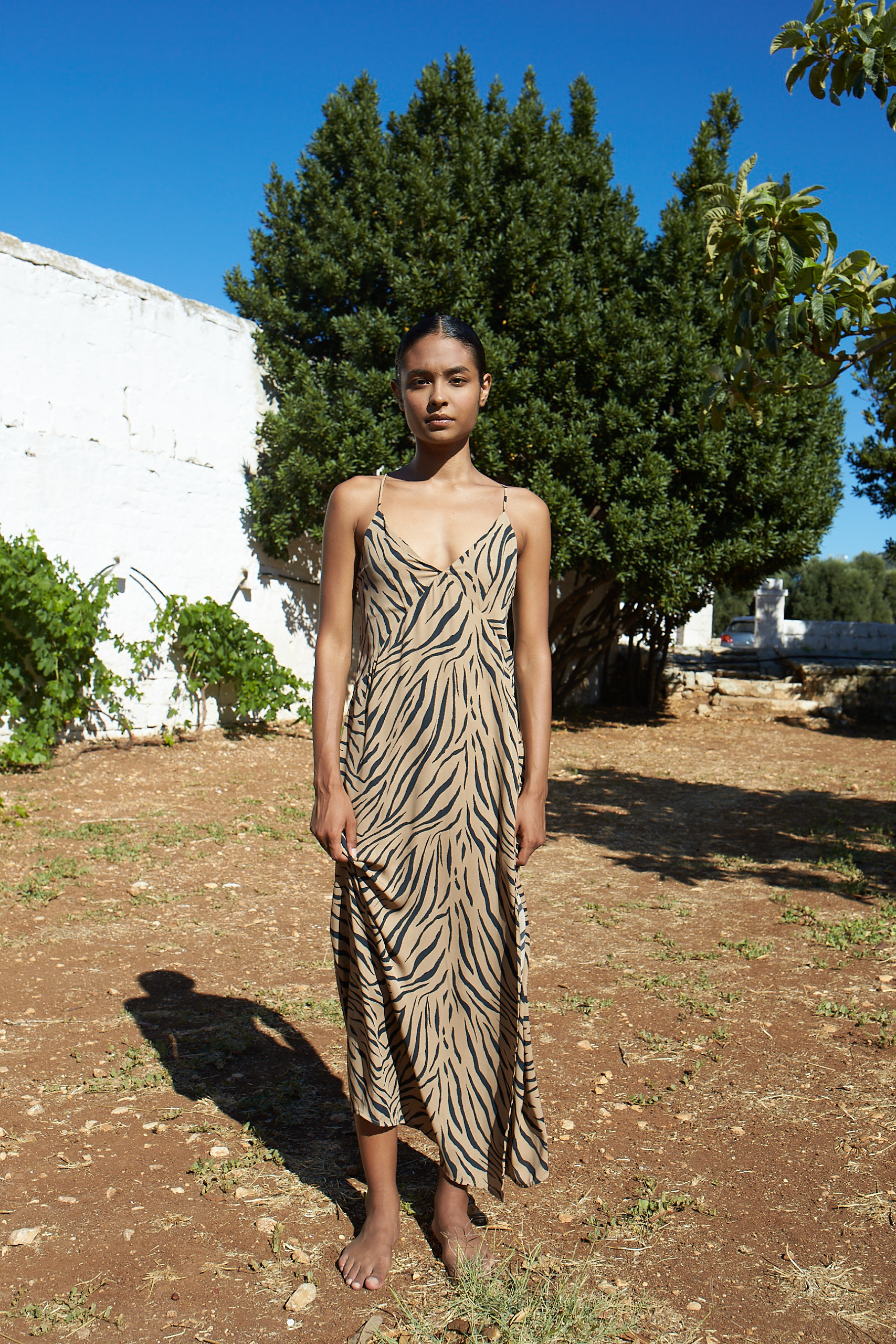 The creative choice is the synthesis of a perfect union between the East and a wild land, told by the refinement of oriental brocades and the grit of animal prints.