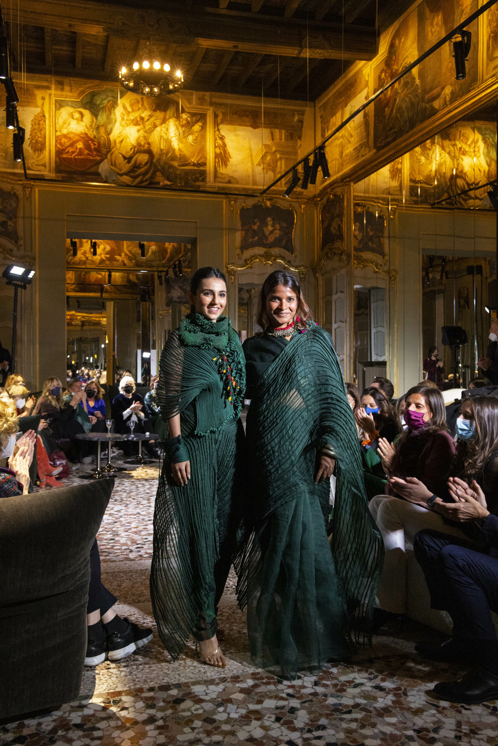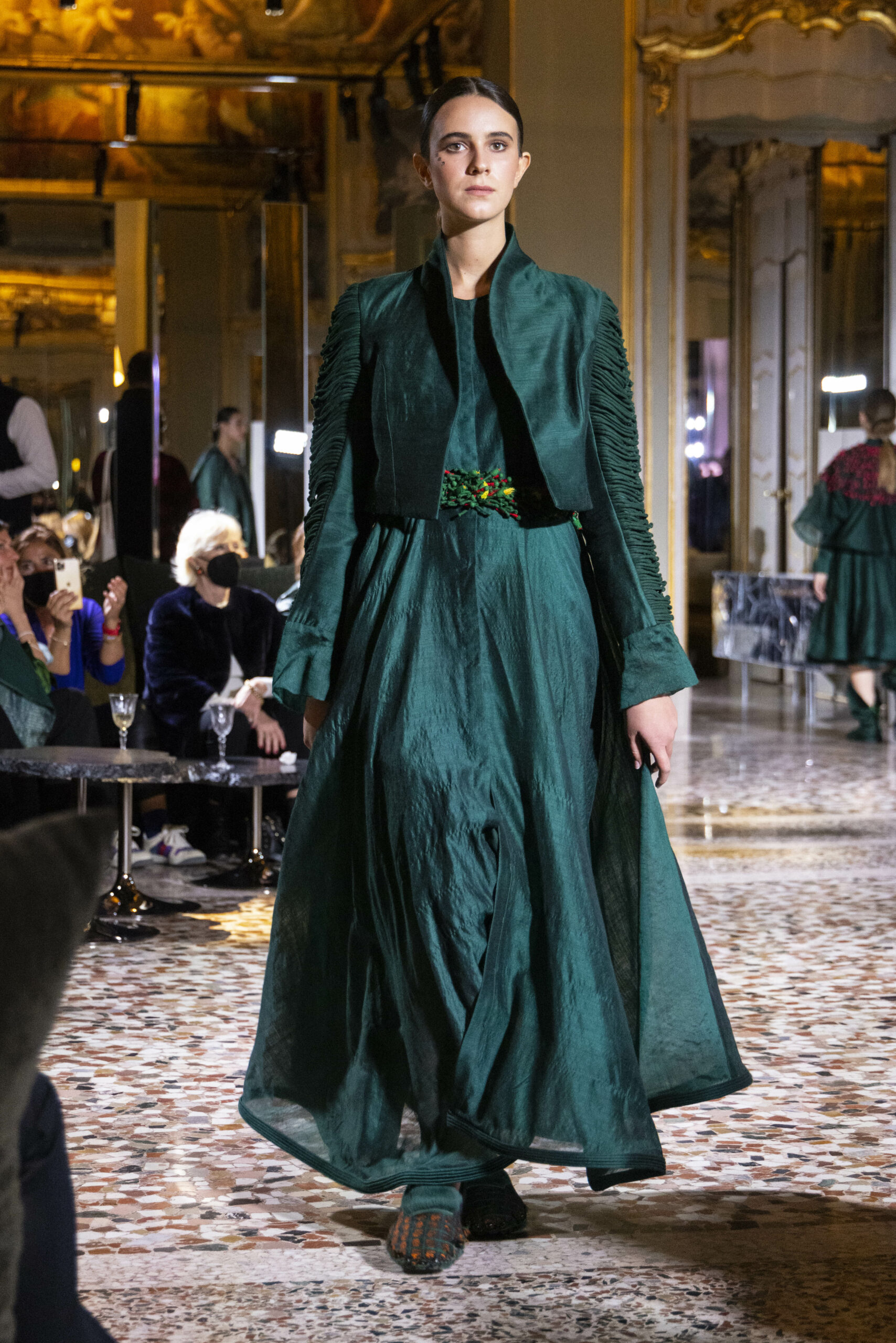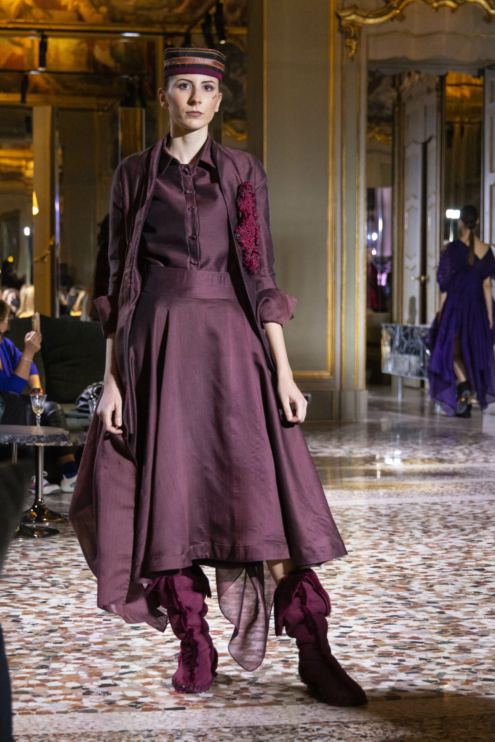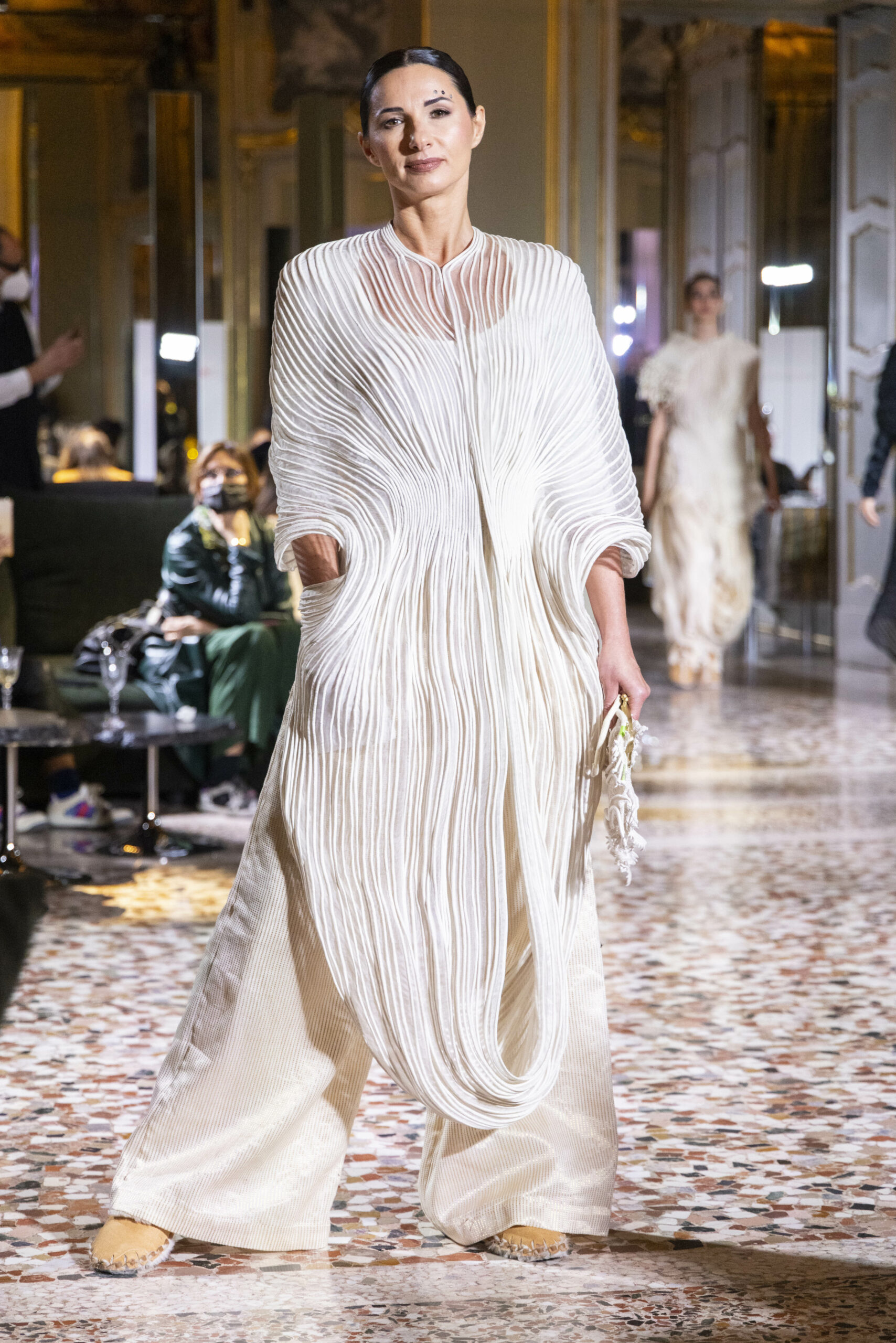 Vaishali Shadangule’s Autumn Winter 2022 collection is named Srauta, a word taken from ancient Vedic Sanskrit texts and meaning ‘sacrifice’ as an act by which we surrender something for the sake of the gods. It represents the flow of energy that connects everything in nature and how it sacrifices itself in one form to come to life into another form in a seamless flow that is the secret of life. A demonstration of this flow is the metamorphosis that a strand of hair or fur from an animal goes through in its journey, the hair becomes part of a thread, which gives life to a fabric, which is finally transformed apparel, to ultimately being a part of a garment in Vaishali’s Srauta collection. The designer has studied this flow of energy carefully to ensure that the flow is as seamless and sustainable as possible, ensuring the message of love is carried forward. This Milan Fashion Week also marks the global launch of Vaishali S’ prêt-à-porter line and with this launch, the designer continues to position Indian hand weaves at the top of international luxury, through unique global silhouettes. The collection features not only embroideries but full-fledged haute couture design and fabrics in a fresh prêt avatar, that shines the spotlight on hand-woven Indian textiles. As with all Vaishali’s collections, the Srauta collection too emphasises excellence in workmanship, with sustainability, zero waste and has circularity at its core. To ensure continued support and positive social impact on craft clusters, Vaishali has employed weaves used in the past in this collection as well. With the aim of pushing the boundaries of her commitment to sustainability, Vaishali has used blockchain technology for this collection, which will guarantee the technical traceability of garments’ history, thereby ensuring not only that sustainability is the focus throughout all processes, but also guaranteeing that clients can trace the journey of the hair fibres of the goat, in case of Pashmina, to the final garment, with a quick scan of a QR code. Employing her unique flair for effortlessly blending traditional weaves and techniques with dramatic silhouettes, Vaishali’s Srauta collection, amongst other fabrics, extensively explores the use of hand-woven Merino wool from Bengal, and Pashmina from Ladhak, both of which will keep the wearer warm in colder seasons and surprising cool in the warmer months. The palette is comprised of jewel tones such as deep aquamarines, ruby reds, shimmering amethysts, pearly whites, jade greens, and slate greys. The continued partnership with VIBRAM has also brought a winter collection of sustainable products. VIBRAM, the Italian world leader in soles manufacturing, has taken serious commitment to sustainability. By cooperating on their project “Component, the innovative sole system by VIBRAM”, the shoes for the collection have been developed with the leftover fabrics of the prêt-à-porter collection on a 96% recycled sole. Furthermore, the easiness of detaching the upper part of the shoe and creating your own new one with old clothes really takes circularity to a deeper level. The inception of the partnership was during the Paris Haute Couture Week and has been continuing to flourish.