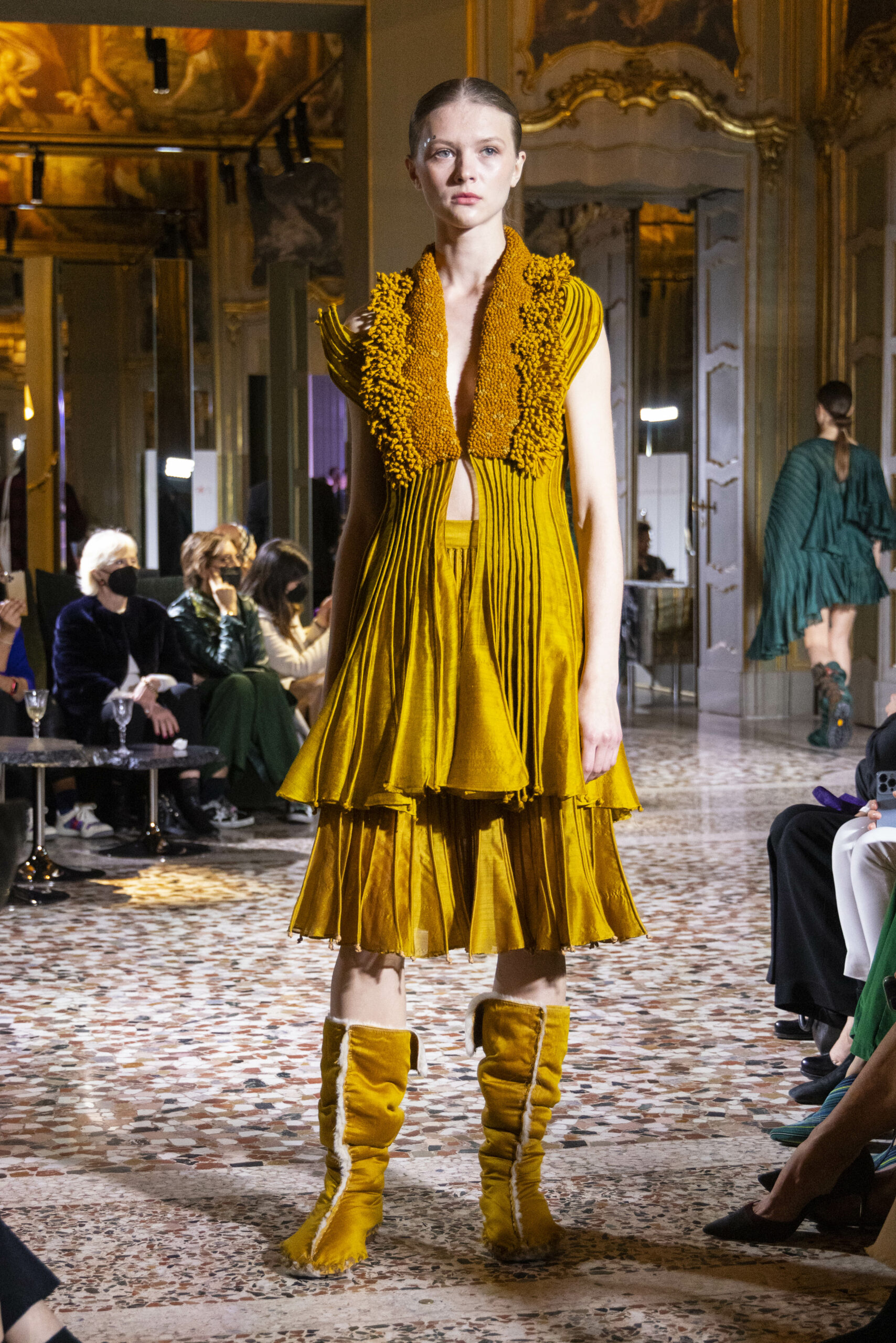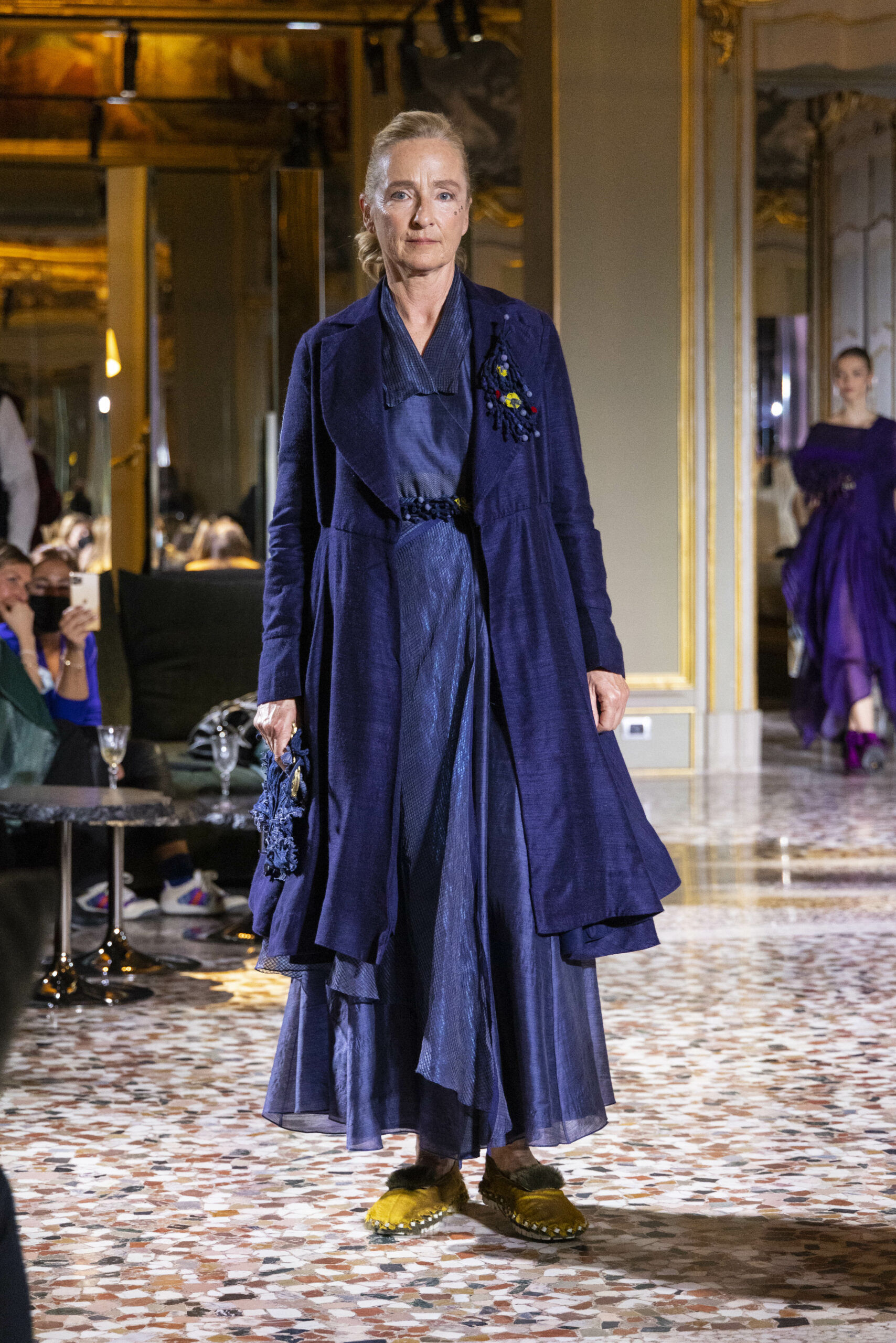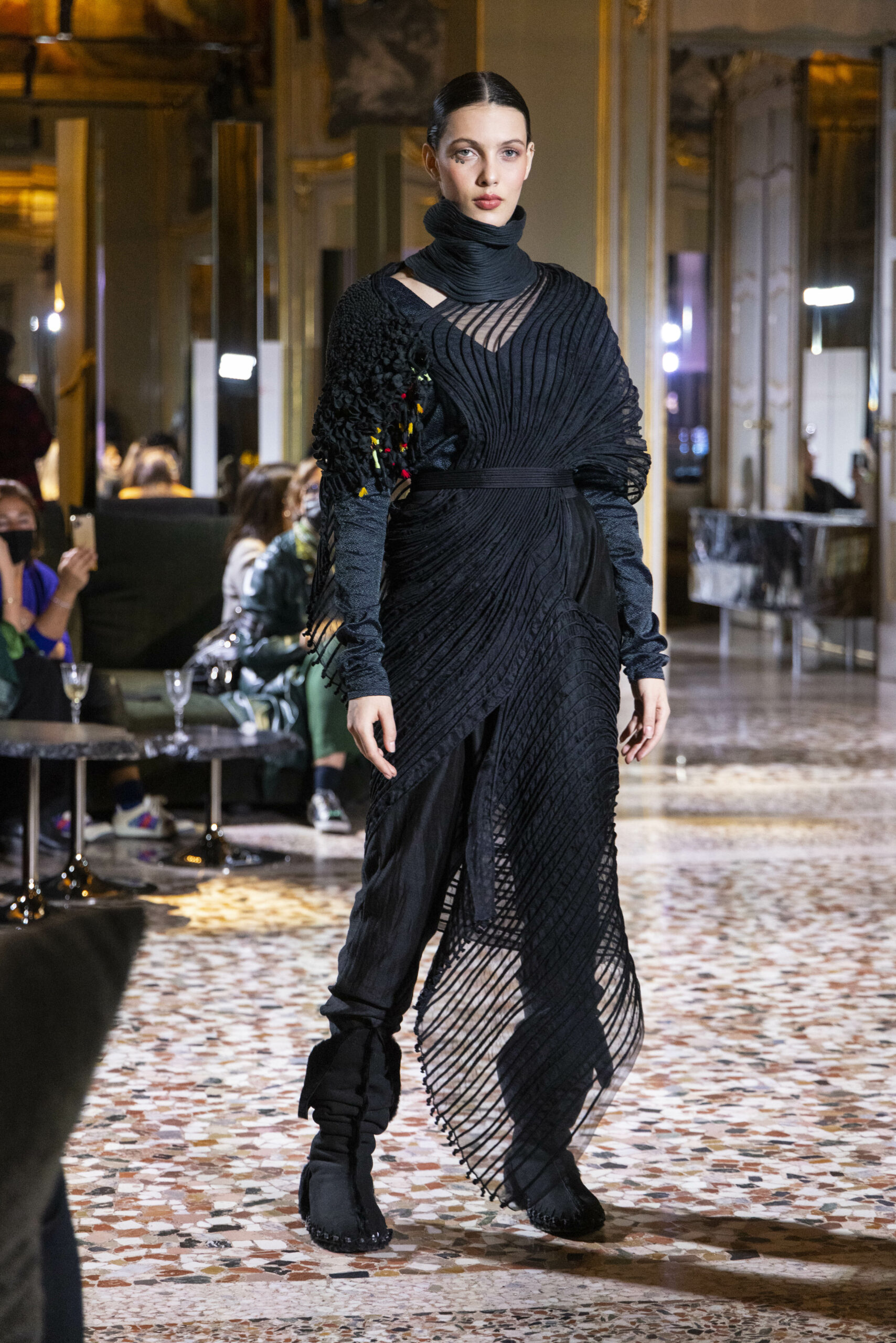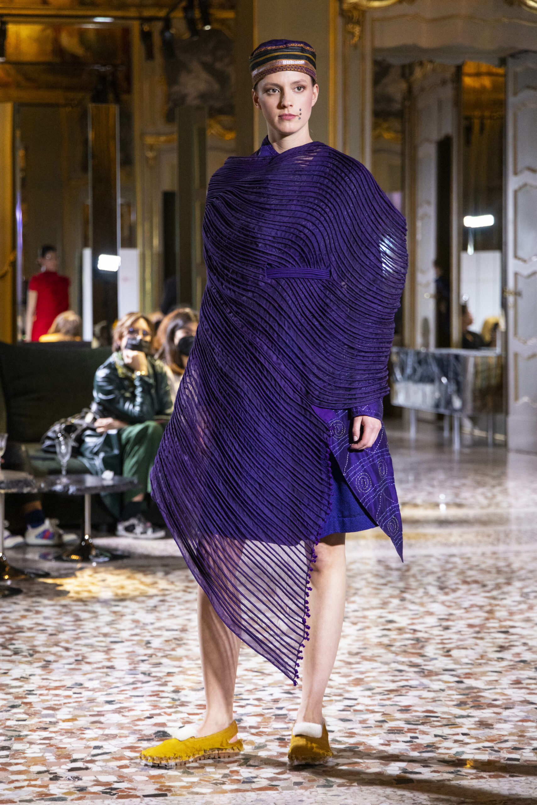 Vaishali Shadangule’s Autumn Winter 2022 collection is named Srauta, a word taken from ancient Vedic Sanskrit texts and meaning ‘sacrifice’ as an act by which we surrender something for the sake of the gods. It represents the flow of energy that connects everything in nature and how it sacrifices itself in one form to come to life into another form in a seamless flow that is the secret of life. A demonstration of this flow is the metamorphosis that a strand of hair or fur from an animal goes through in its journey, the hair becomes part of a thread, which gives life to a fabric, which is finally transformed apparel, to ultimately being a part of a garment in Vaishali’s Srauta collection. The designer has studied this flow of energy carefully to ensure that the flow is as seamless and sustainable as possible, ensuring the message of love is carried forward. This Milan Fashion Week also marks the global launch of Vaishali S’ prêt-à-porter line and with this launch, the designer continues to position Indian hand weaves at the top of international luxury, through unique global silhouettes. The collection features not only embroideries but full-fledged haute couture design and fabrics in a fresh prêt avatar, that shines the spotlight on hand-woven Indian textiles. As with all Vaishali’s collections, the Srauta collection too emphasises excellence in workmanship, with sustainability, zero waste and has circularity at its core. To ensure continued support and positive social impact on craft clusters, Vaishali has employed weaves used in the past in this collection as well. With the aim of pushing the boundaries of her commitment to sustainability, Vaishali has used blockchain technology for this collection, which will guarantee the technical traceability of garments’ history, thereby ensuring not only that sustainability is the focus throughout all processes, but also guaranteeing that clients can trace the journey of the hair fibres of the goat, in case of Pashmina, to the final garment, with a quick scan of a QR code. Employing her unique flair for effortlessly blending traditional weaves and techniques with dramatic silhouettes, Vaishali’s Srauta collection, amongst other fabrics, extensively explores the use of hand-woven Merino wool from Bengal, and Pashmina from Ladhak, both of which will keep the wearer warm in colder seasons and surprising cool in the warmer months. The palette is comprised of jewel tones such as deep aquamarines, ruby reds, shimmering amethysts, pearly whites, jade greens, and slate greys. The continued partnership with VIBRAM has also brought a winter collection of sustainable products. VIBRAM, the Italian world leader in soles manufacturing, has taken serious commitment to sustainability. By cooperating on their project “Component, the innovative sole system by VIBRAM”, the shoes for the collection have been developed with the leftover fabrics of the prêt-à-porter collection on a 96% recycled sole. Furthermore, the easiness of detaching the upper part of the shoe and creating your own new one with old clothes really takes circularity to a deeper level. The inception of the partnership was during the Paris Haute Couture Week and has been continuing to flourish.