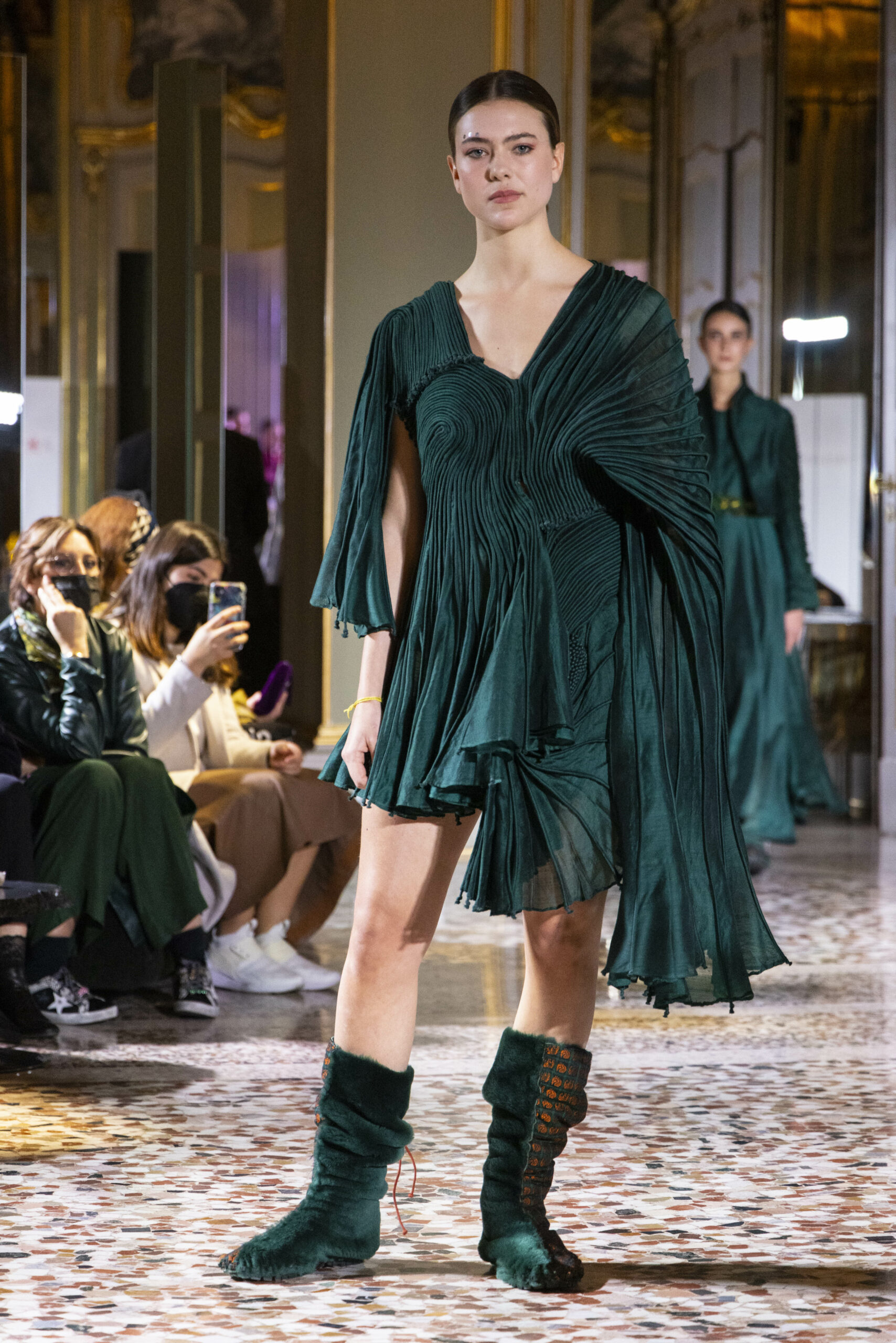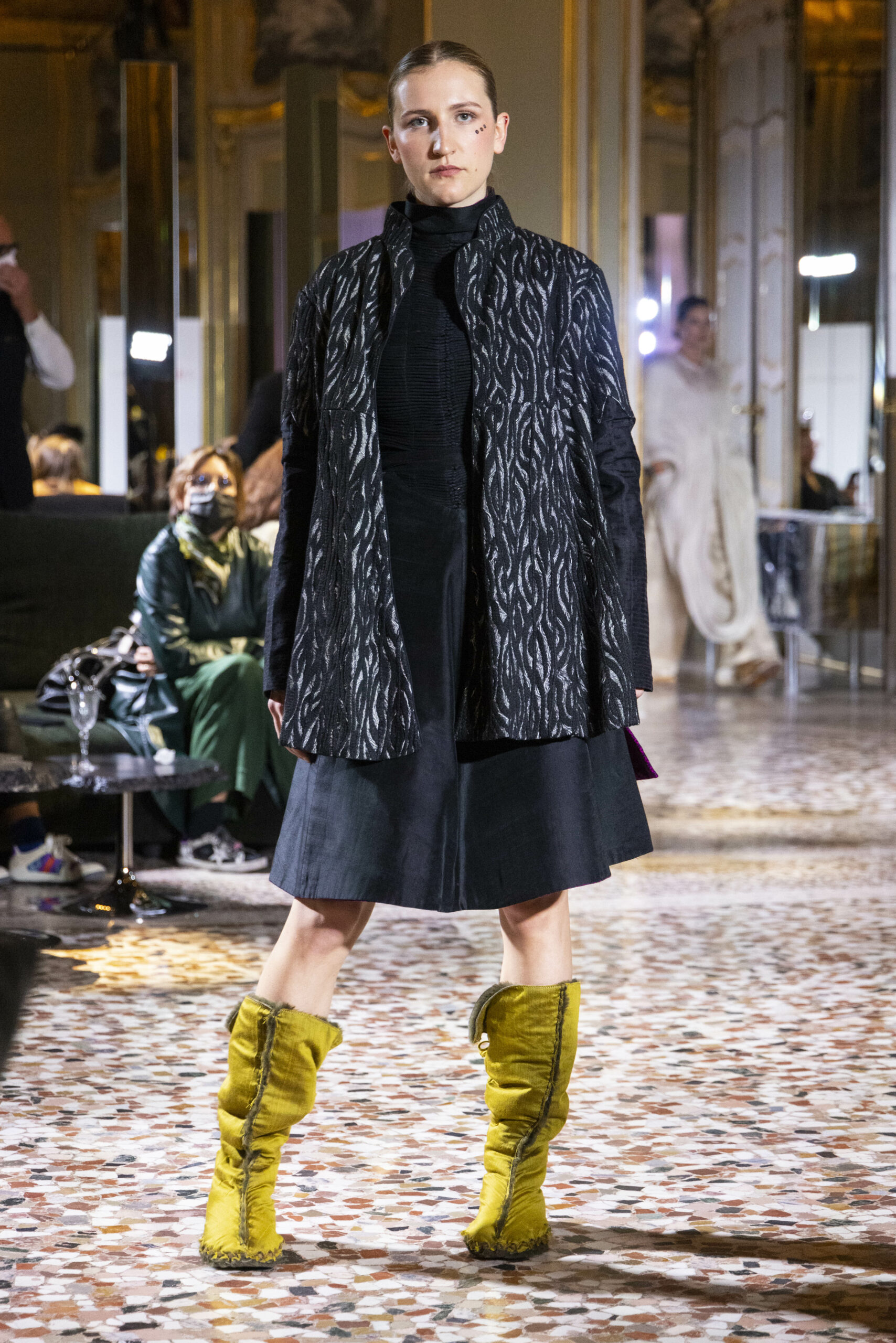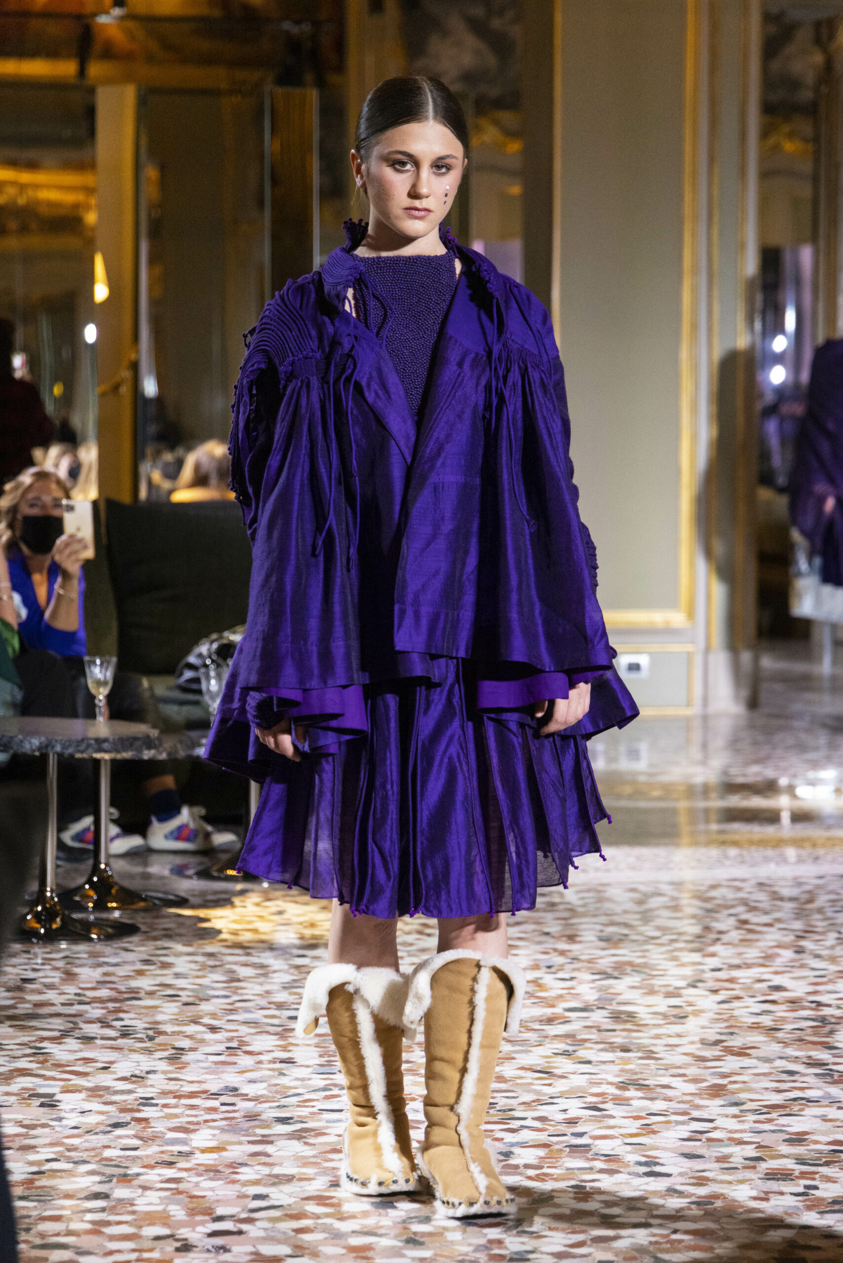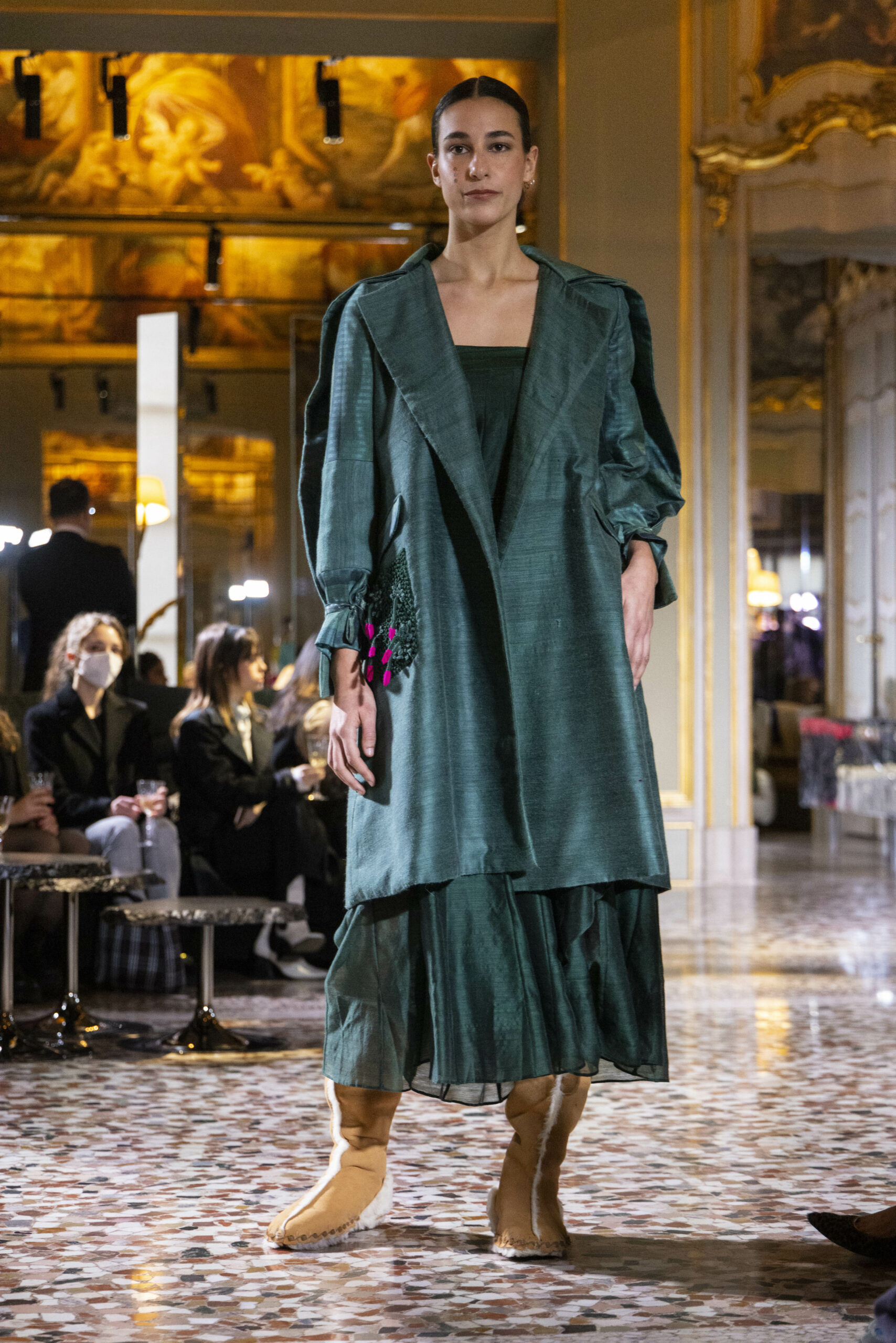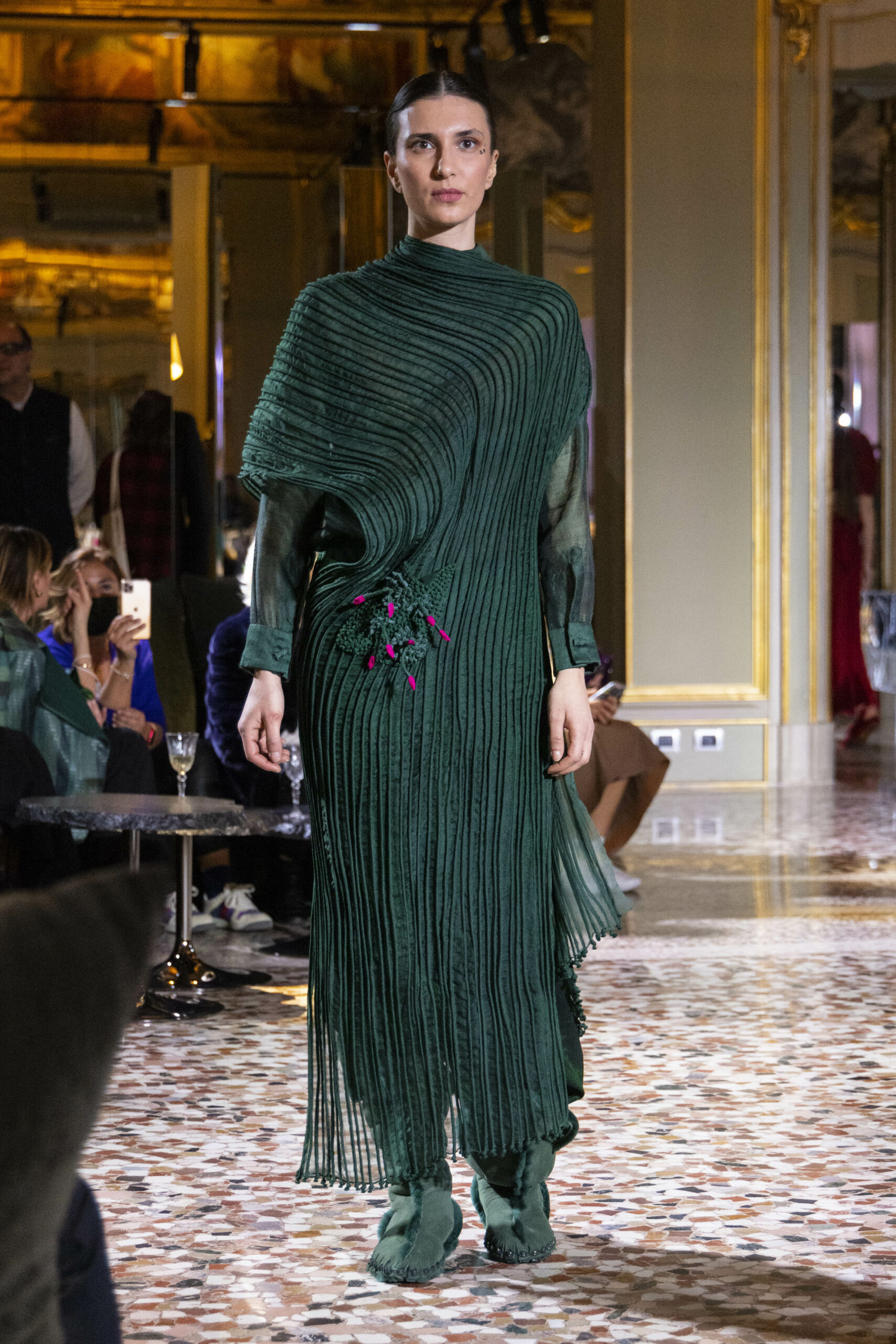 Vaishali Shadangule’s Autumn Winter 2022 collection is named Srauta, a word taken from ancient Vedic Sanskrit texts and meaning ‘sacrifice’ as an act by which we surrender something for the sake of the gods. It represents the flow of energy that connects everything in nature and how it sacrifices itself in one form to come to life into another form in a seamless flow that is the secret of life. A demonstration of this flow is the metamorphosis that a strand of hair or fur from an animal goes through in its journey, the hair becomes part of a thread, which gives life to a fabric, which is finally transformed apparel, to ultimately being a part of a garment in Vaishali’s Srauta collection. The designer has studied this flow of energy carefully to ensure that the flow is as seamless and sustainable as possible, ensuring the message of love is carried forward. This Milan Fashion Week also marks the global launch of Vaishali S’ prêt-à-porter line and with this launch, the designer continues to position Indian hand weaves at the top of international luxury, through unique global silhouettes. The collection features not only embroideries but full-fledged haute couture design and fabrics in a fresh prêt avatar, that shines the spotlight on hand-woven Indian textiles. As with all Vaishali’s collections, the Srauta collection too emphasises excellence in workmanship, with sustainability, zero waste and has circularity at its core. To ensure continued support and positive social impact on craft clusters, Vaishali has employed weaves used in the past in this collection as well. With the aim of pushing the boundaries of her commitment to sustainability, Vaishali has used blockchain technology for this collection, which will guarantee the technical traceability of garments’ history, thereby ensuring not only that sustainability is the focus throughout all processes, but also guaranteeing that clients can trace the journey of the hair fibres of the goat, in case of Pashmina, to the final garment, with a quick scan of a QR code. Employing her unique flair for effortlessly blending traditional weaves and techniques with dramatic silhouettes, Vaishali’s Srauta collection, amongst other fabrics, extensively explores the use of hand-woven Merino wool from Bengal, and Pashmina from Ladhak, both of which will keep the wearer warm in colder seasons and surprising cool in the warmer months. The palette is comprised of jewel tones such as deep aquamarines, ruby reds, shimmering amethysts, pearly whites, jade greens, and slate greys. The continued partnership with VIBRAM has also brought a winter collection of sustainable products. VIBRAM, the Italian world leader in soles manufacturing, has taken serious commitment to sustainability. By cooperating on their project “Component, the innovative sole system by VIBRAM”, the shoes for the collection have been developed with the leftover fabrics of the prêt-à-porter collection on a 96% recycled sole. Furthermore, the easiness of detaching the upper part of the shoe and creating your own new one with old clothes really takes circularity to a deeper level. The inception of the partnership was during the Paris Haute Couture Week and has been continuing to flourish.