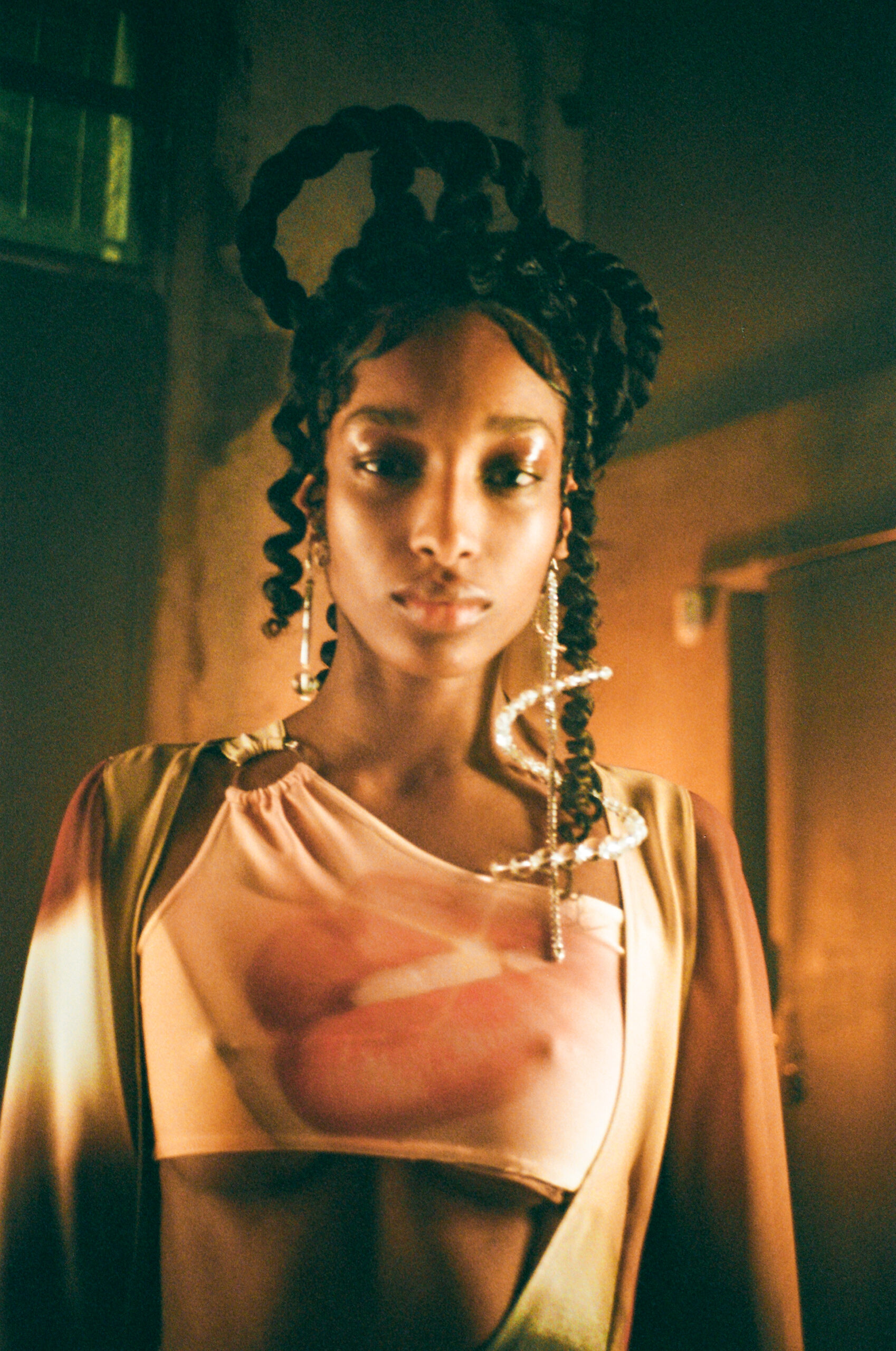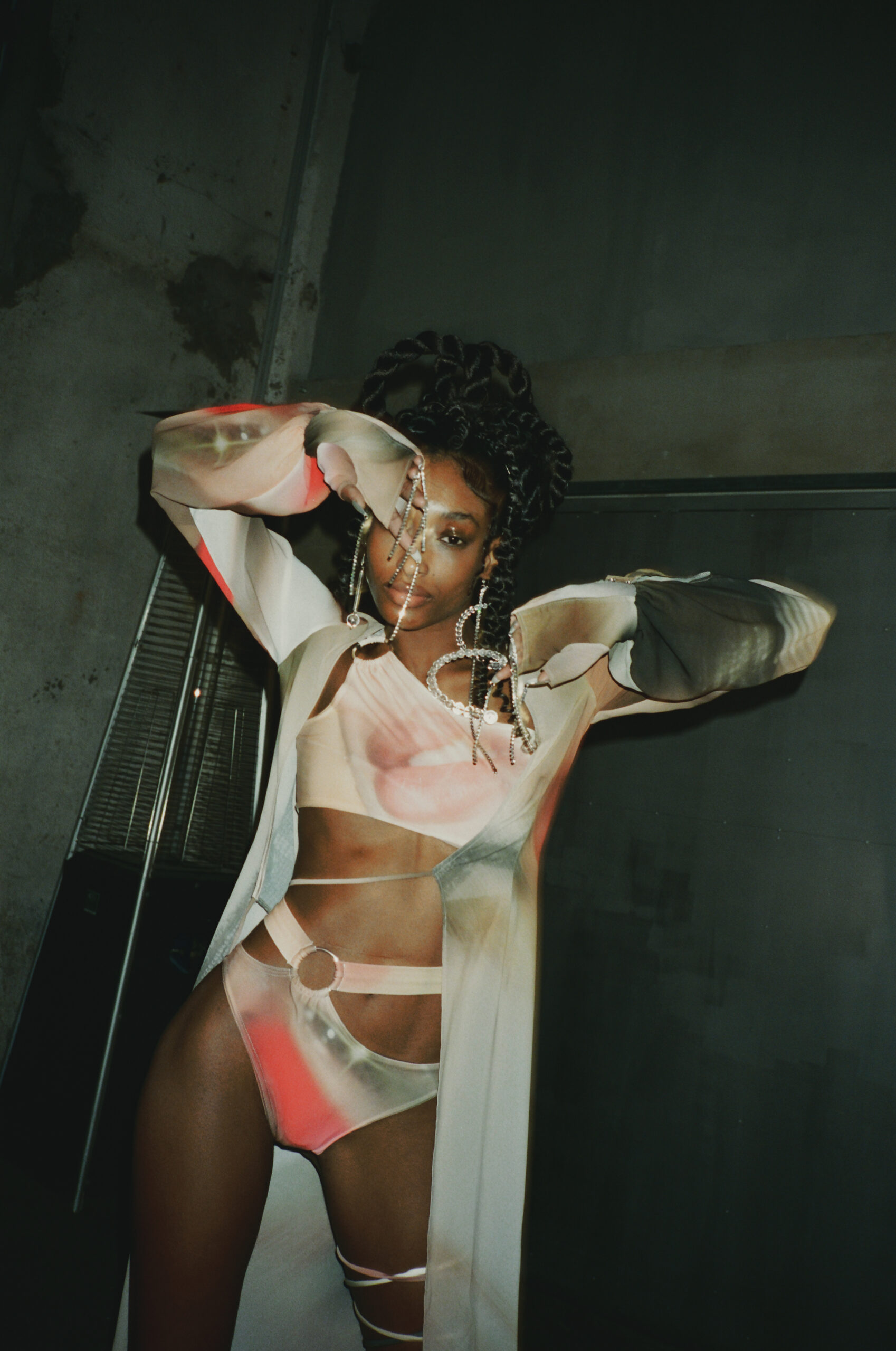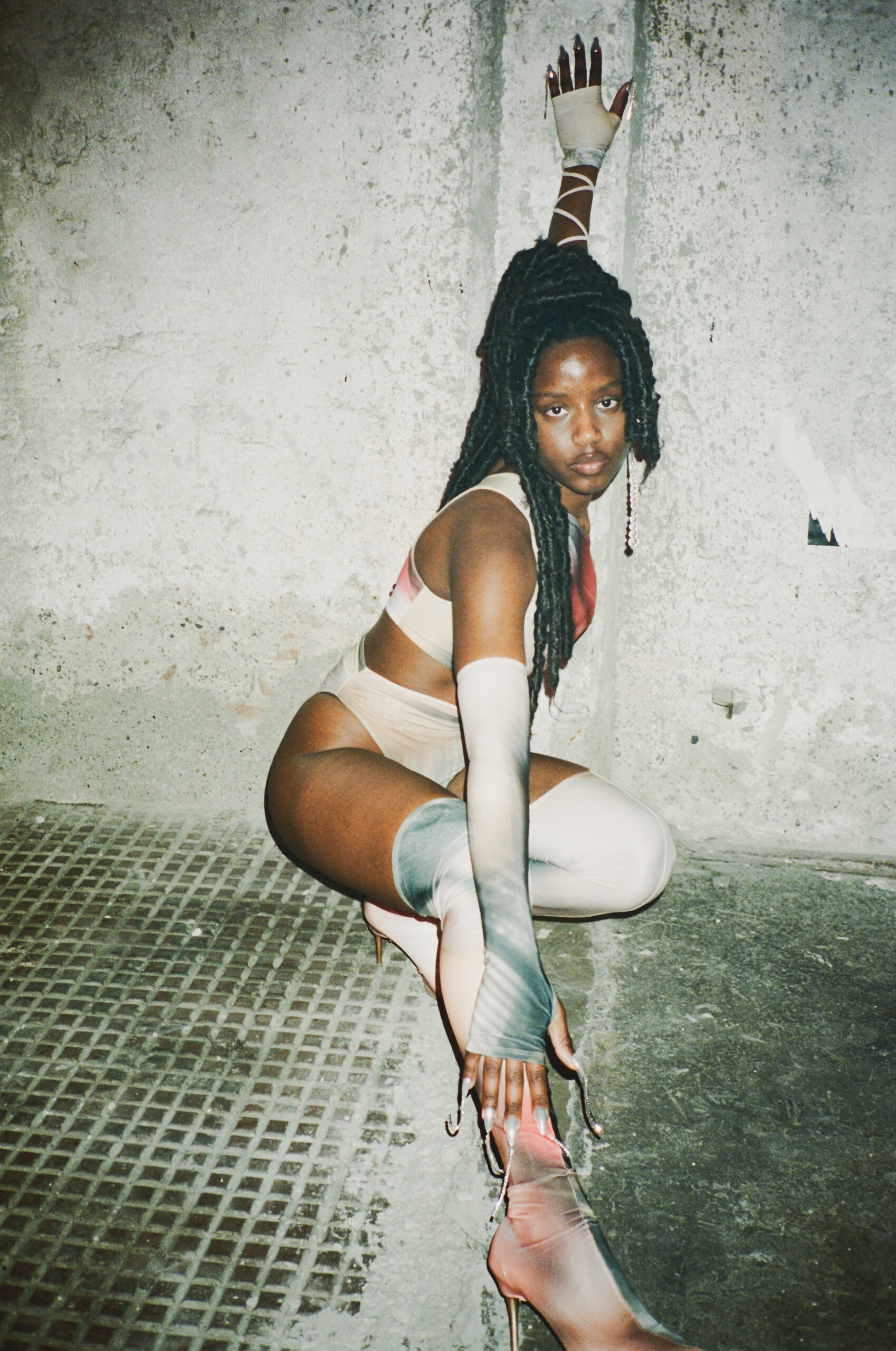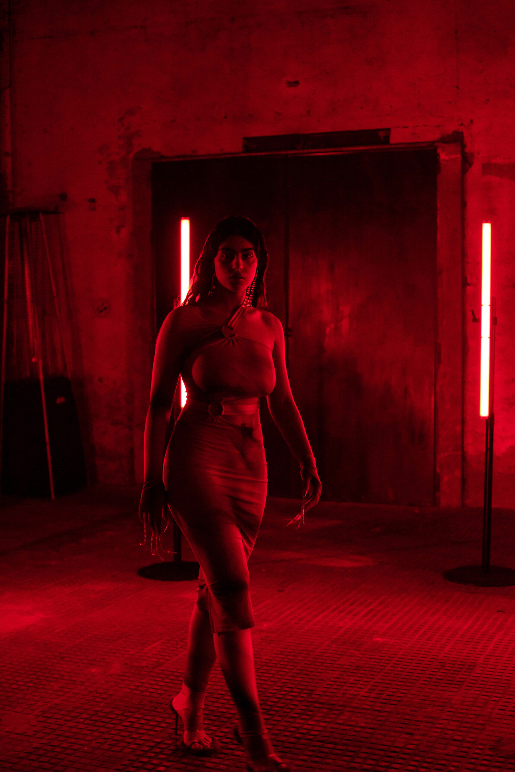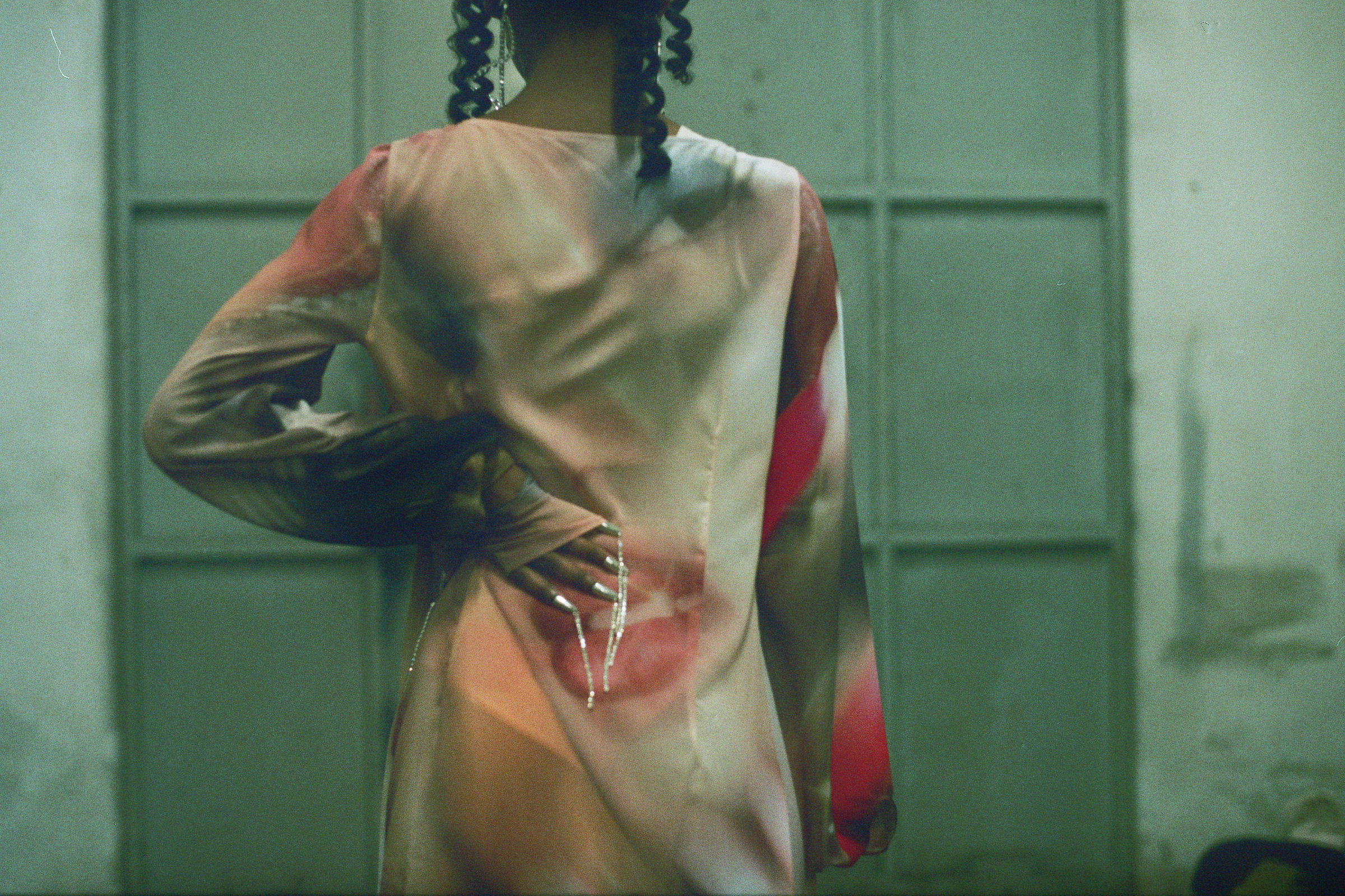 The collection is made of seven looks: bodysuits, jumpsuits and dresses made out of stretched fabrics that enhance silhouettes and wrap the body and draw a second skin, creating an interplay between sensuality and femininity. It is proposed in total black, to underline the sexy approach to nightlife, or proposed with all-over photographic print, signed by Carolina herself.