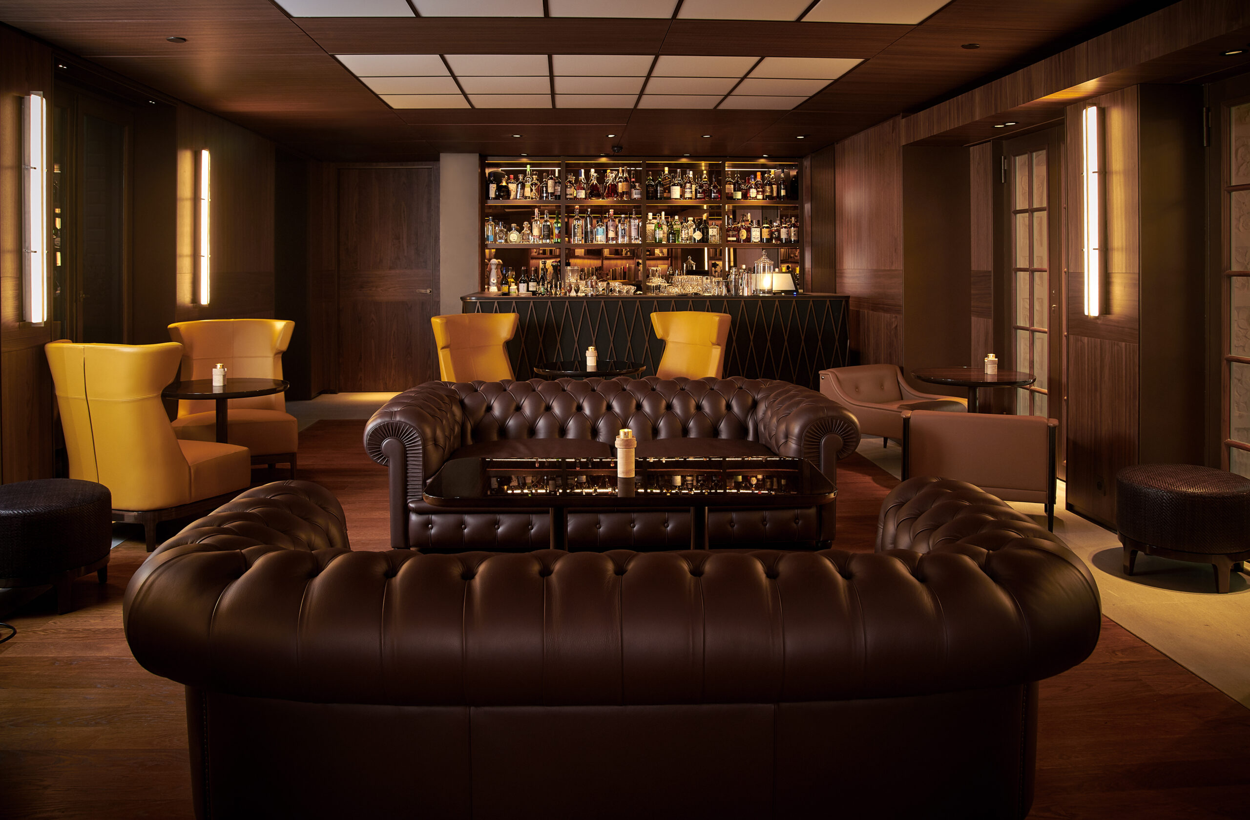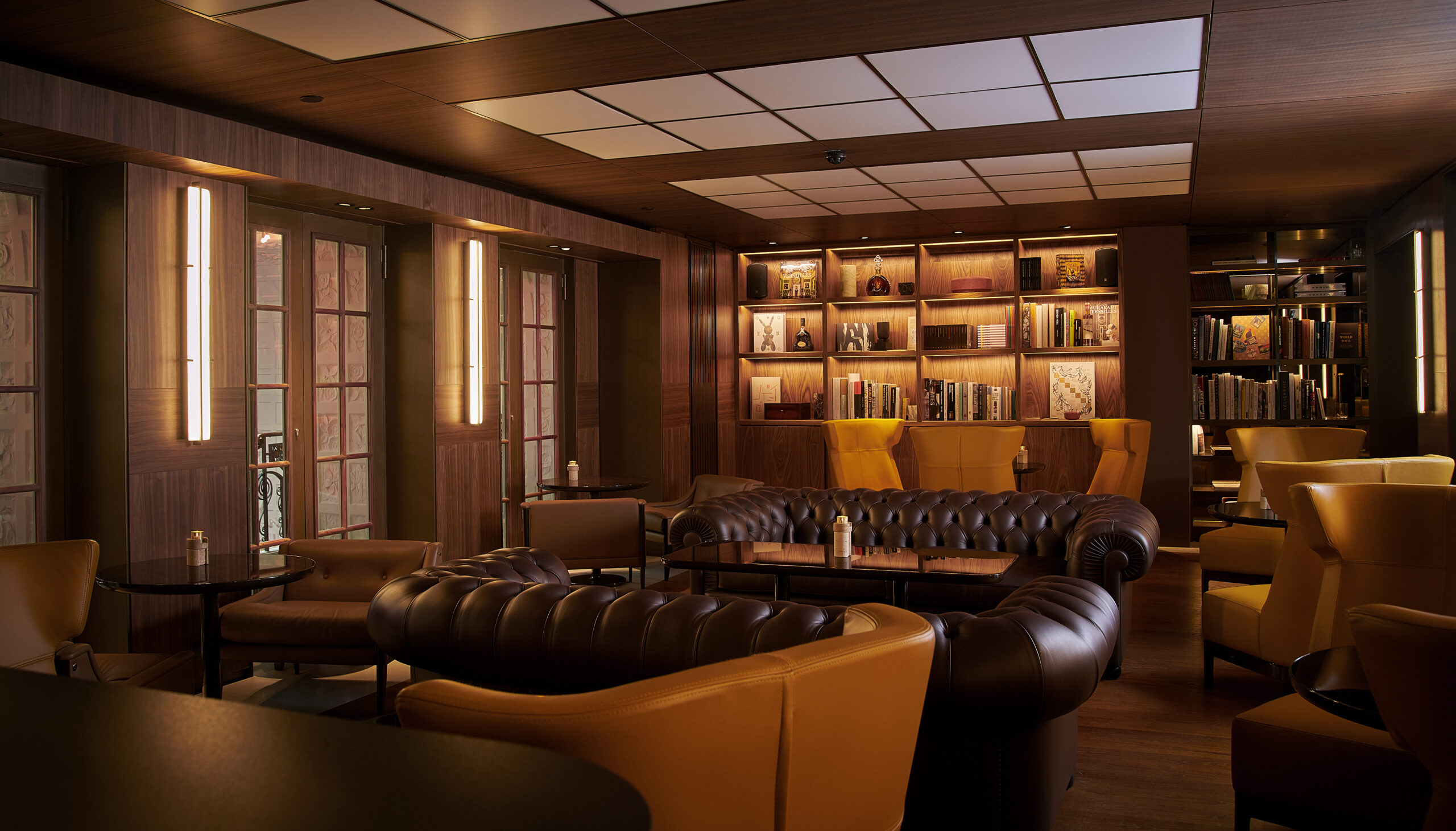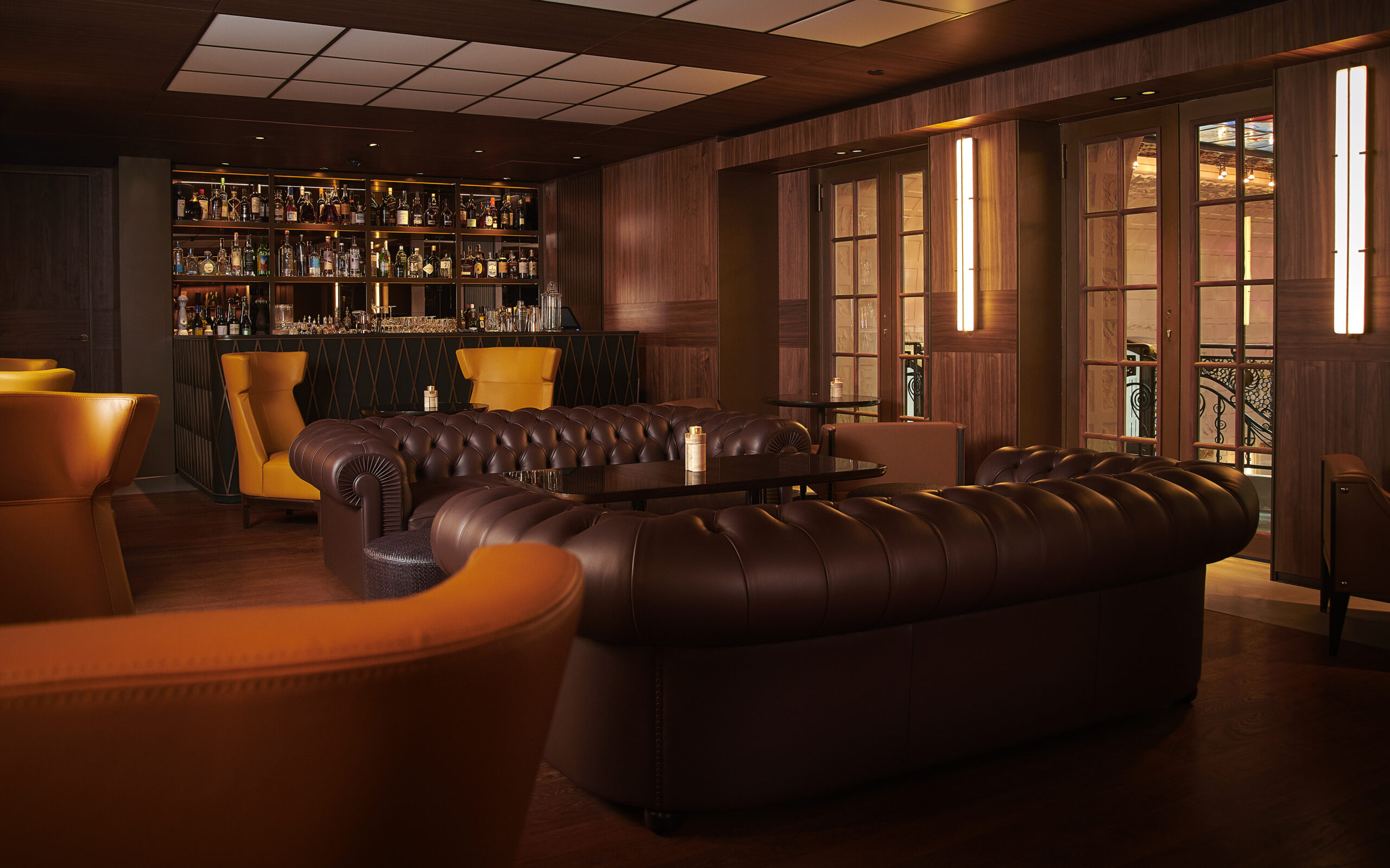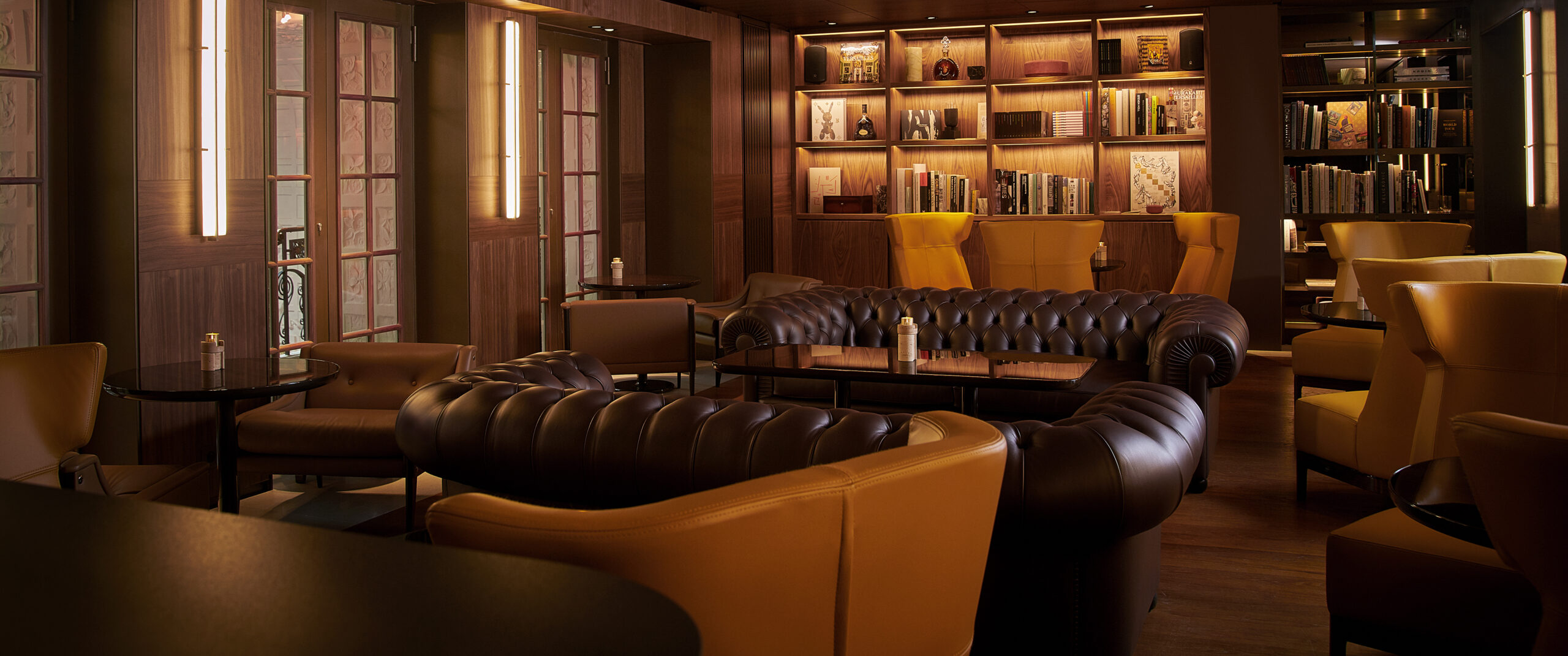 Le Bar Aristide est un élégant refuge loin de l’agitation parisienne. Pouvant accueillir seulement une trentaine d’invités, orné de murs lambrissés, le lieu a été décoré d’oeuvres d’art sélectionnées par l’architecte Jean-Michel Wilmotte, qui a dirigé l’ambitieuse restauration de tout l’hôtel avant sa réouverture en 2018. Doté de confortables canapés en cuir brun, de fauteuils wingback ainsi que d’une petite bibliothèque de livres d’art, c’est une véritable atmosphère de club privé qui émane du lieu. Deux fumoirs jouxtent également le bar, avec une sélection impressionnante de cigares rares du monde entier. MIXOLOGIE