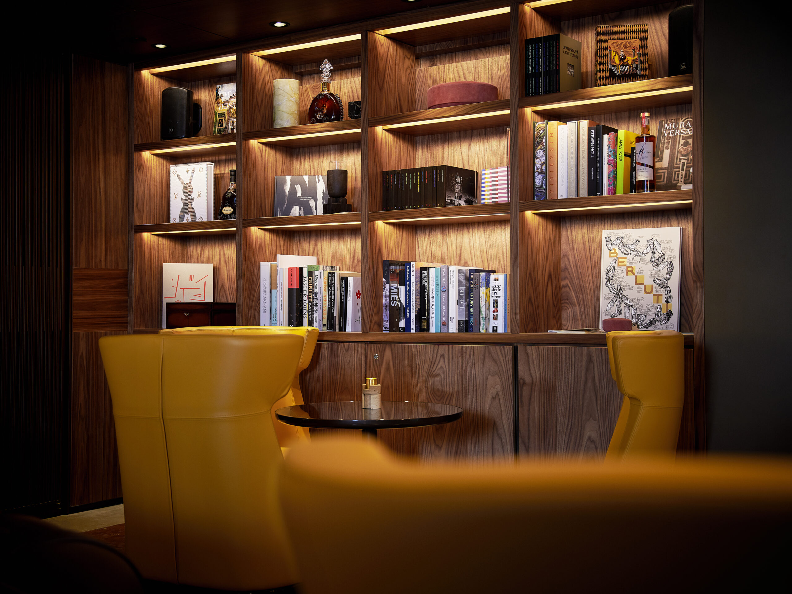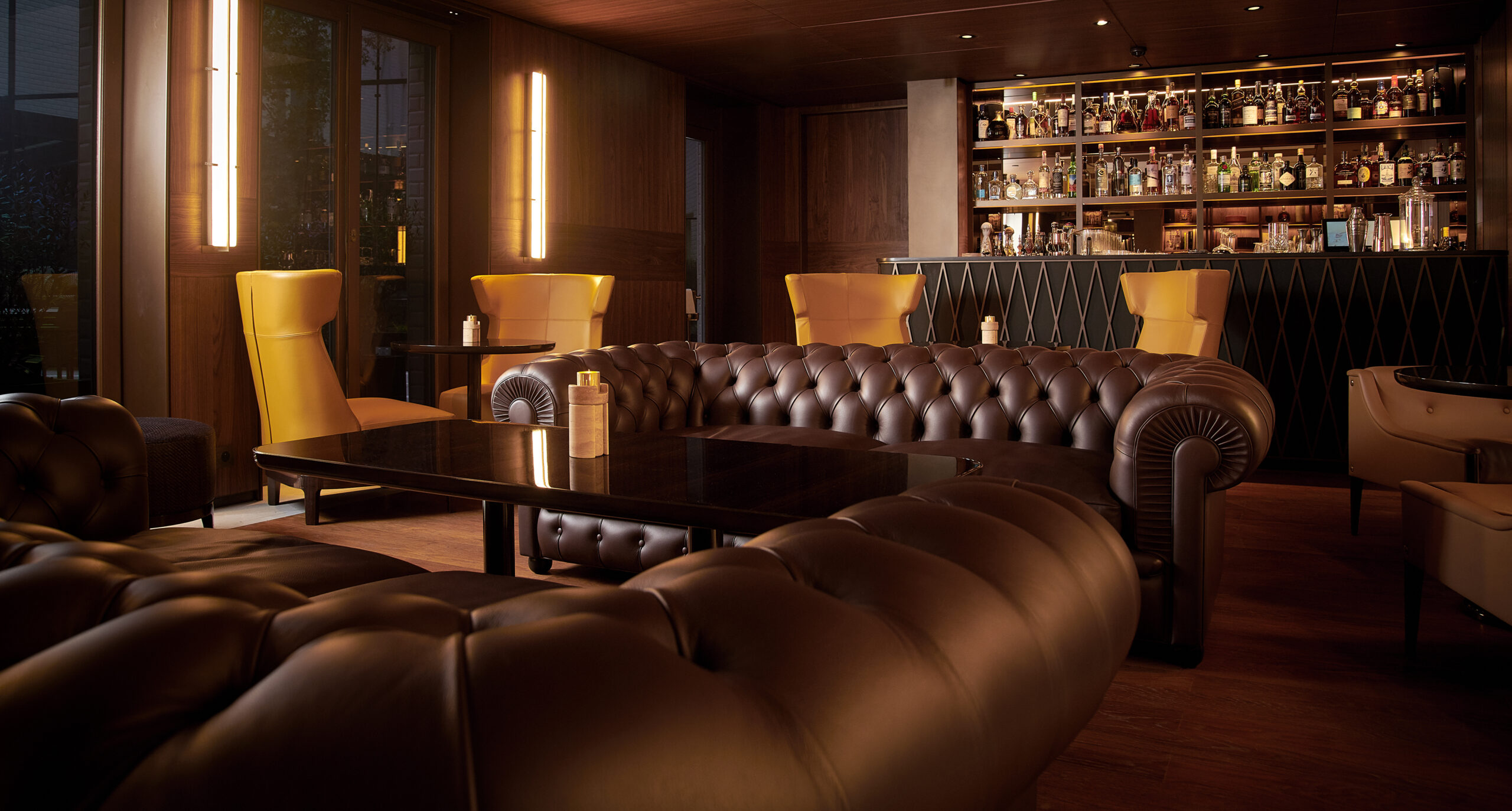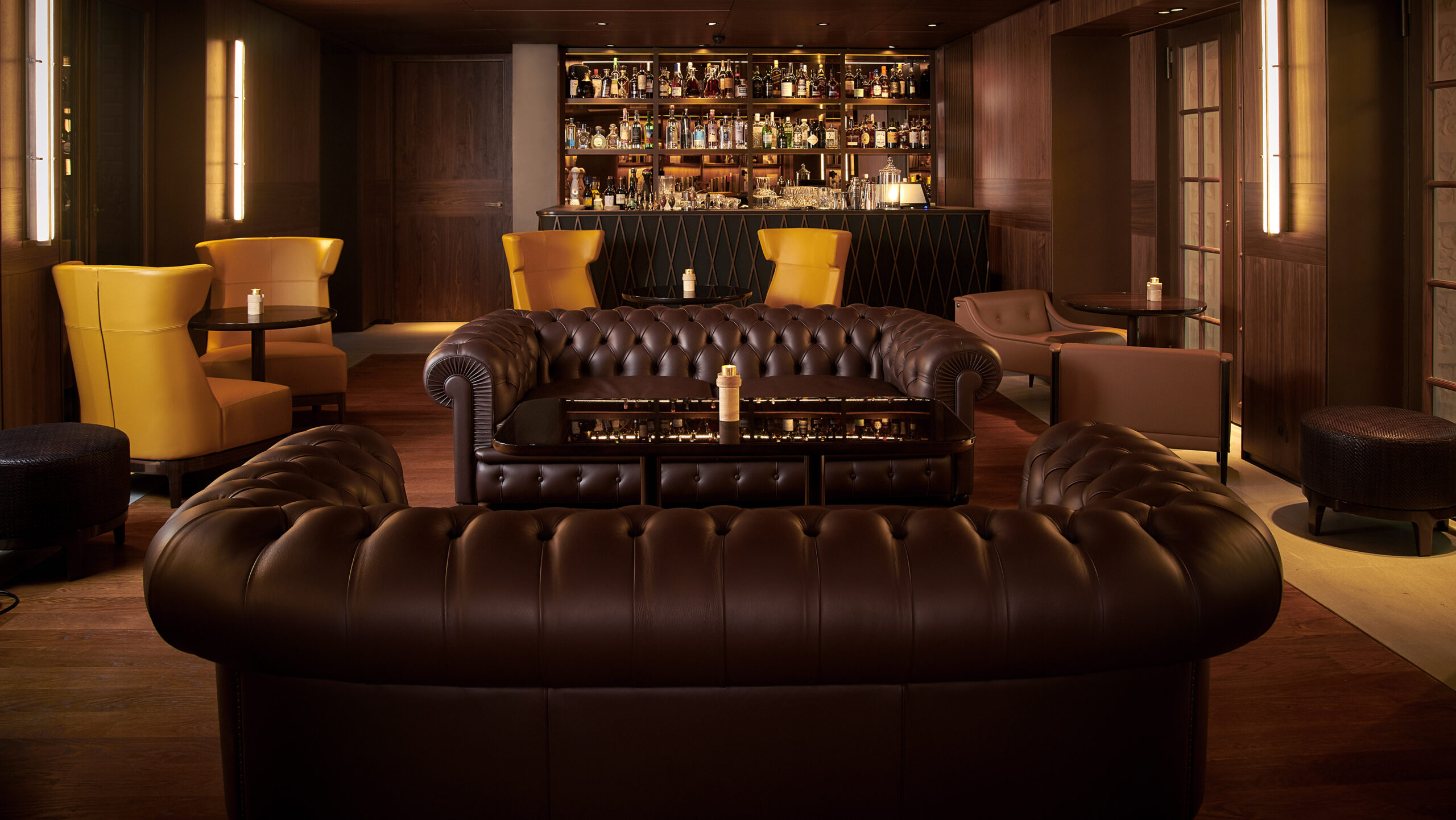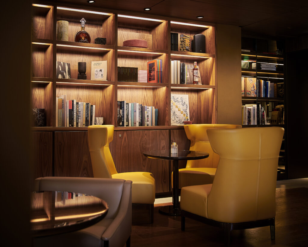 Le Bar Aristide est un élégant refuge loin de l’agitation parisienne. Pouvant accueillir seulement une trentaine d’invités, orné de murs lambrissés, le lieu a été décoré d’oeuvres d’art sélectionnées par l’architecte Jean-Michel Wilmotte, qui a dirigé l’ambitieuse restauration de tout l’hôtel avant sa réouverture en 2018. Doté de confortables canapés en cuir brun, de fauteuils wingback ainsi que d’une petite bibliothèque de livres d’art, c’est une véritable atmosphère de club privé qui émane du lieu. Deux fumoirs jouxtent également le bar, avec une sélection impressionnante de cigares rares du monde entier. MIXOLOGIE