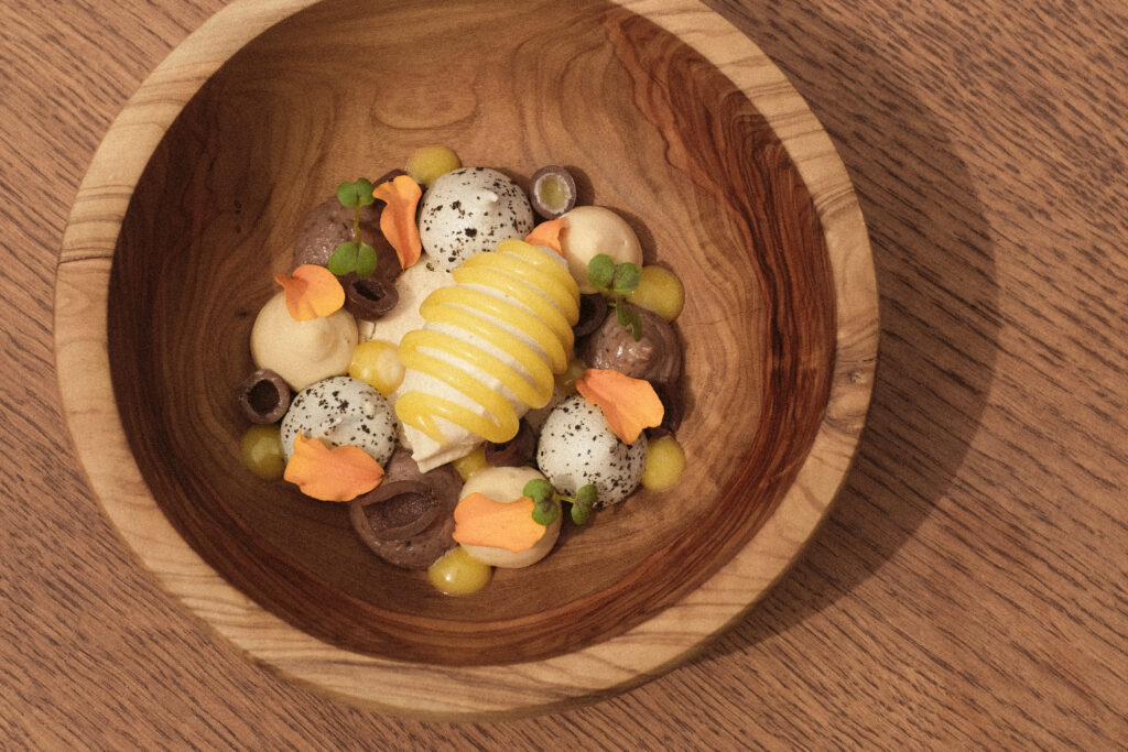 Dans ce restaurant, le chef Anthony Bisquerra raconte son histoire et propose son interprétation des produits de la région, dans des « balades gourmandes » où le végétal, parfois secondé par les poissons ou les viandes, prime. Le choix se fait ainsi entre des menus en 6 ou 8 étapes, ou certains se laisseront tenter par l’audacieux menu Tout Végétal en 6 étapes. Ce dernier, cher au chef, exprime pleinement sa vision de la cuisine, qu’il veut locale et artisanale et composée des meilleurs produits de la montagne tels que les noix, le sapin, la Chartreuse ou le raisin mondeuse