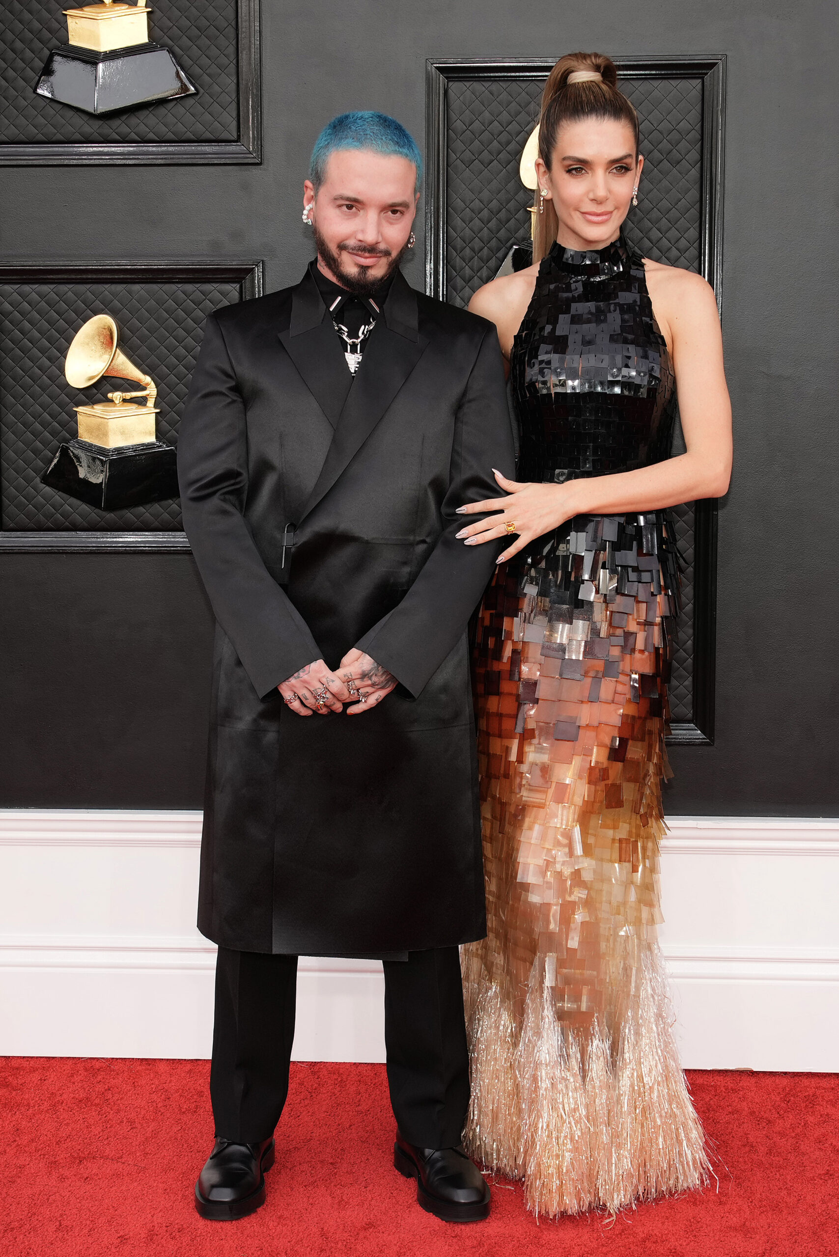 LAS VEGAS, NEVADA – APRIL 03: (L-R) J Balvin and Valentina Ferrer attend the 64th Annual GRAMMY Awards at MGM Grand Garden Arena on April 03, 2022 in Las Vegas, Nevada. (Photo by Jeff Kravitz/FilmMagic)