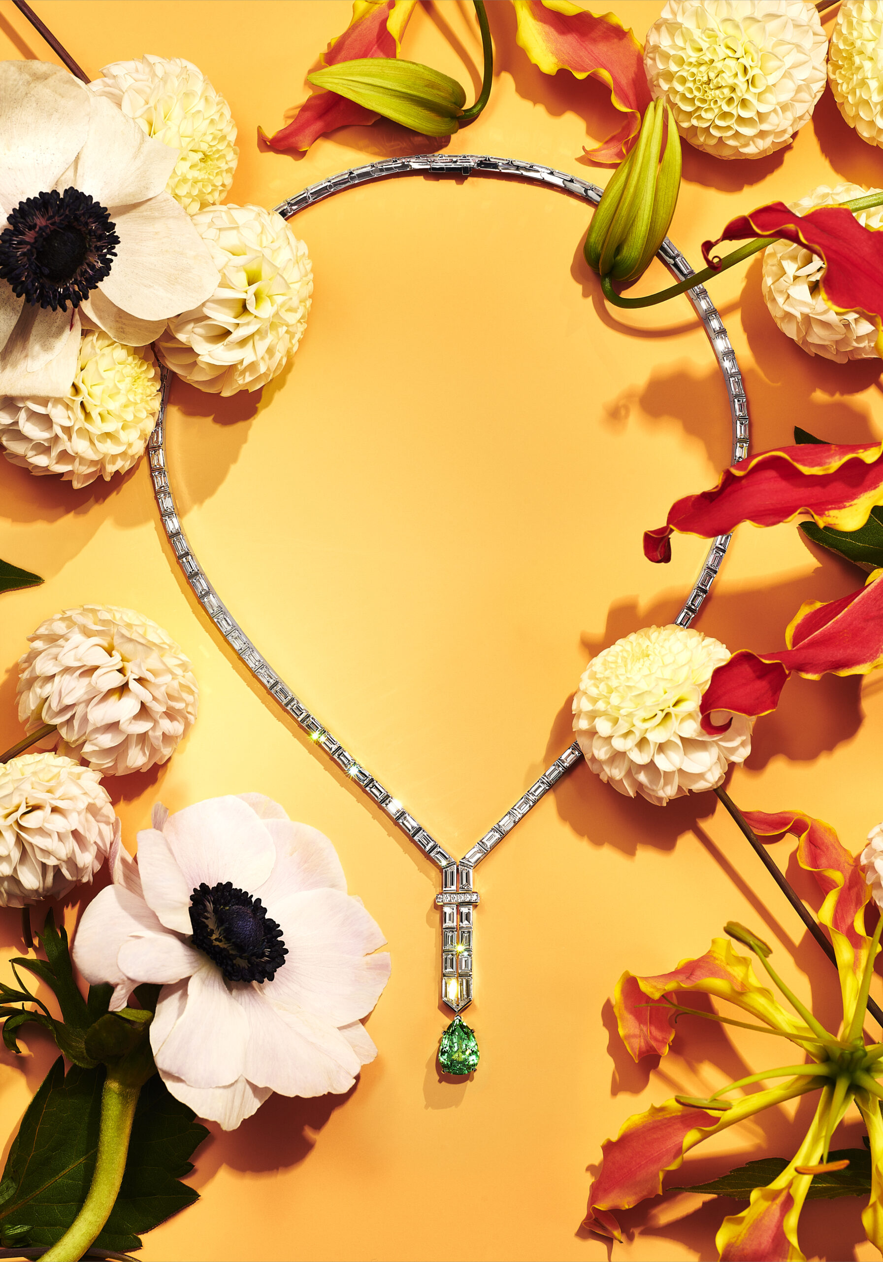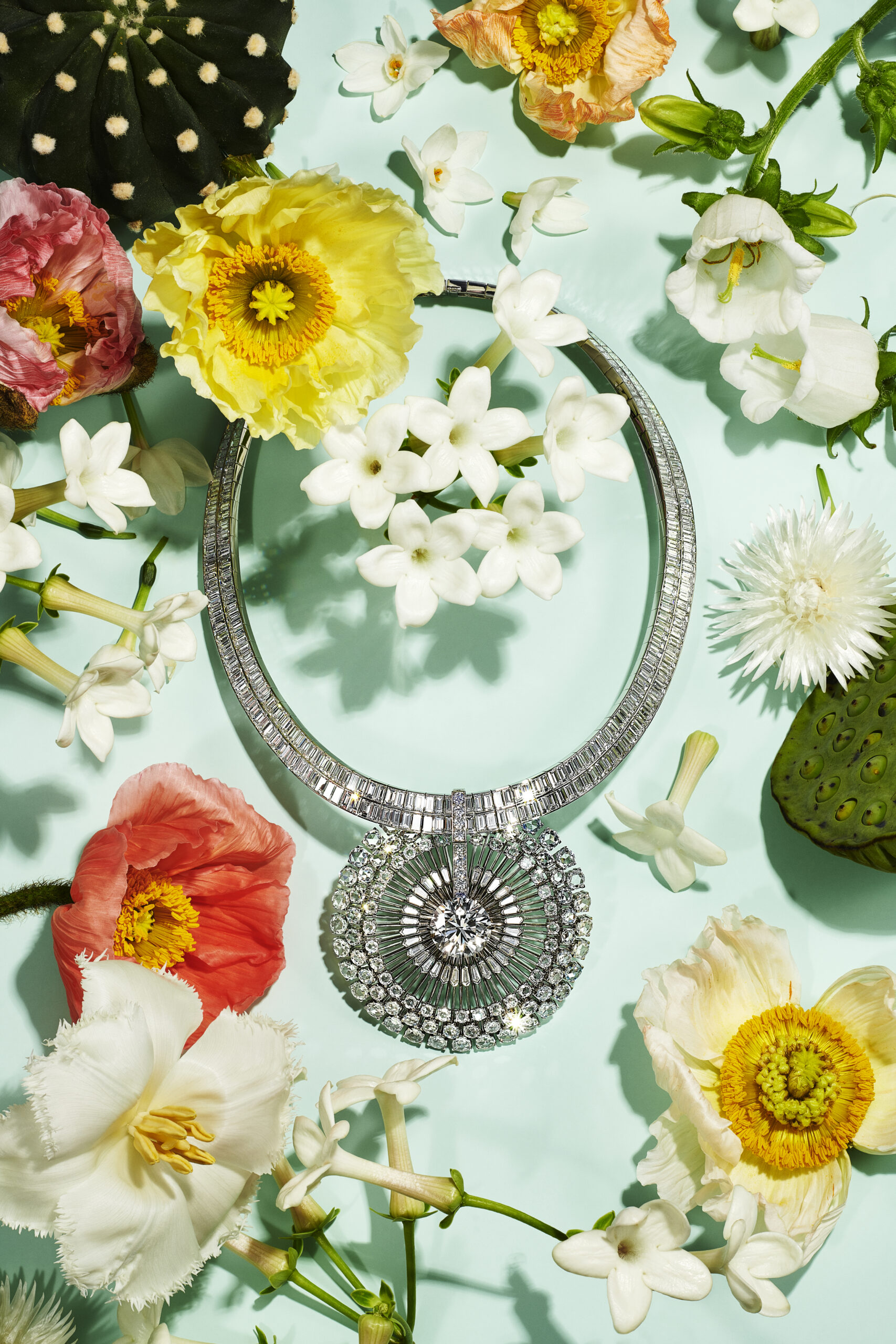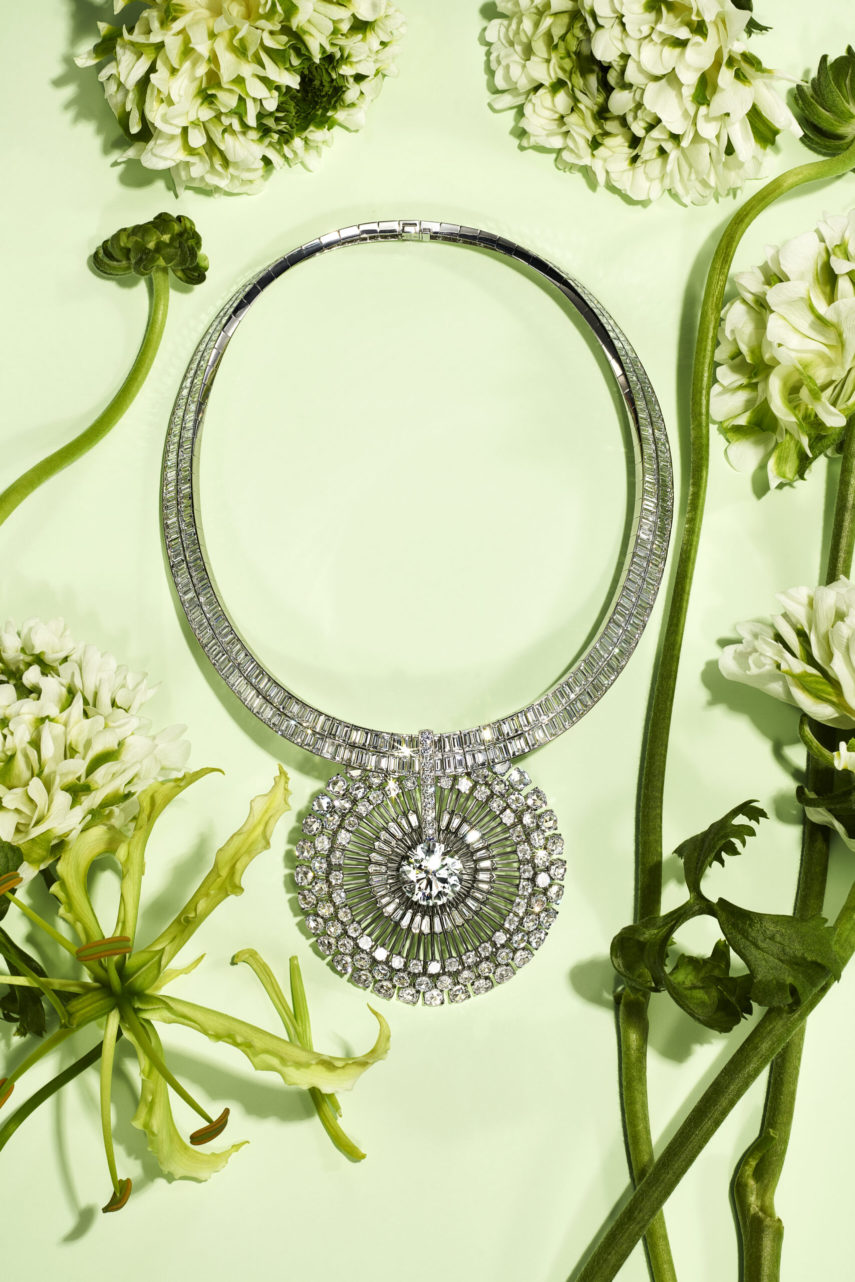 Tour à tour abstraites ou figuratives, les œuvres créatives inspirées par la vie végétale animent le patrimoine de la Maison depuis sa fondation. La collection BOTANICA réinterprète cette flore précieuse dans un esprit contemporain : des graines de pissenlit foisonnant sur un ornement de cheveux imaginé par Louis Comfort Tiffany au début du XXème siècle révèlent leur grâce aérienne sur une série de créations entièrement constellées de diamants. Figurant parmi les nombreux modèles transformables de la collection, un collier pissenlit se distingue par son extrême polyvalence qui autorise cinq portés différents. Grace à des mécanismes innovants, le collier se transforme aisément en deux pendentifs interchangeables, en un tour de cou serti de diamants taille baguette et en une longue chaine de diamants scintillants.
