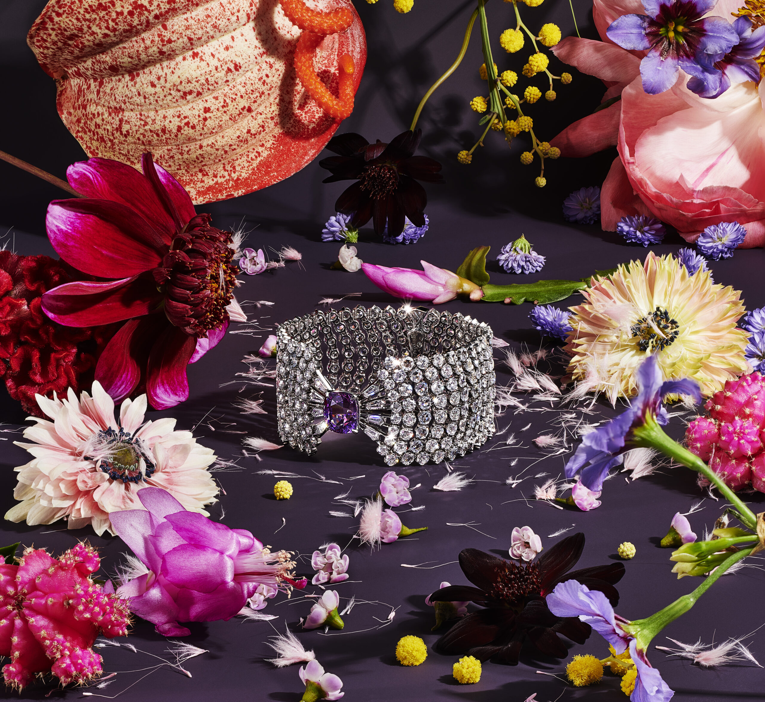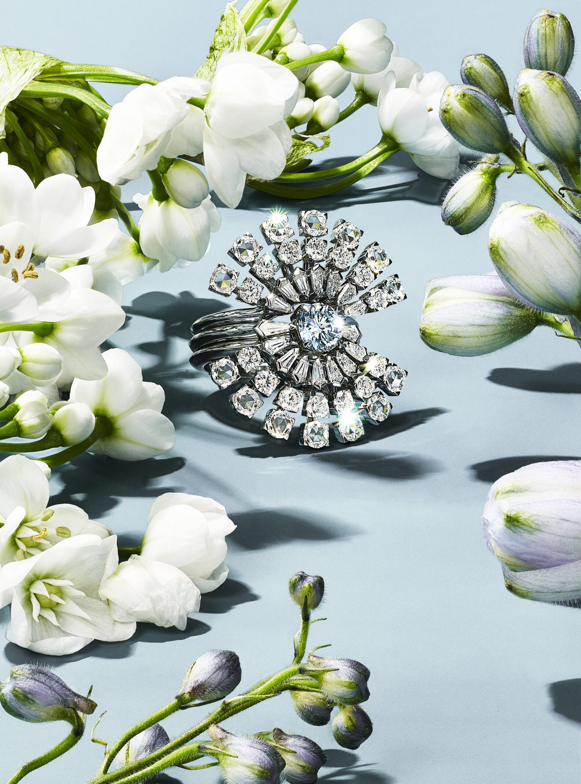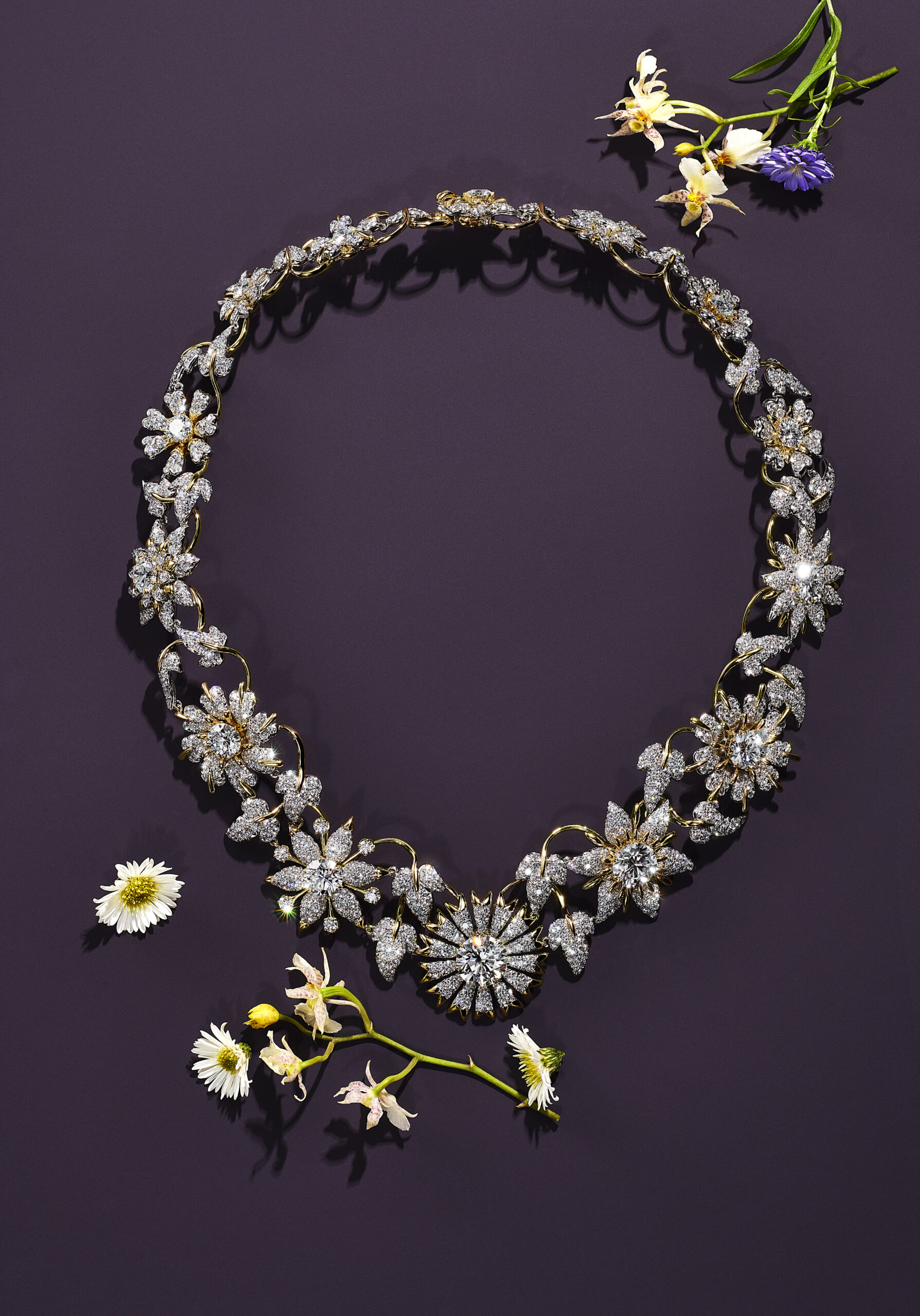 Le Blue Book dévoile chaque année une collection de haute joaillerie réinterprétant avec modernité le vaste héritage de Tiffany & Co. Baptisée BOTANICA, l’édition 2022 met à l’honneur la beauté intemporelle de la flore, une source d’inspiration fondamentale de la Maison depuis sa fondation en 1837. Magnifiés par des diamants et des pierres de couleurs exceptionnels, les orchidées, les pissenlits, les glycines et les chardons se métamorphosent en créations transformables et innovantes. Composant un jardin céleste où s’épanouissent avec vigueur les créations opulentes de Jean Schlumberger, ces fleurs rebelles prodiguent une époustouflante démonstration des savoir-faire virtuoses de la Maison.