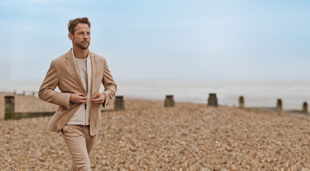 Un mélange d’élégance formelle et de chic décontracté, un style dont la quintessence « british » a trouvé son incarnation : le célèbre pilote de formule 1 Jenson Button, consacré champion du monde en 2009.