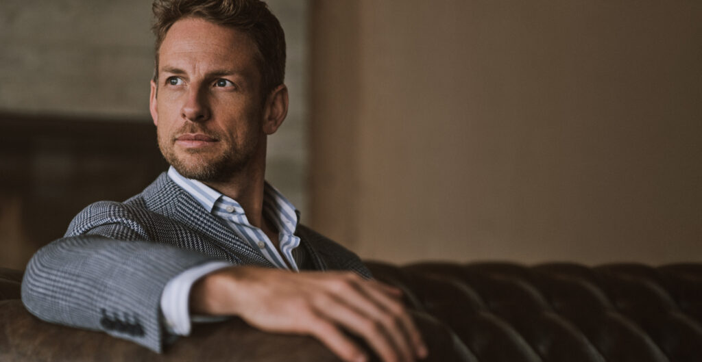 Le pilote de formule 1 Jenson Button incarne l’image de la collection SS 22 de la Maison Hackett