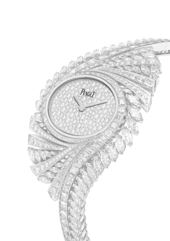 suprême en matière d’orfèvrerie et de sertissage de pierres. Plus de 175 heures d’expertise joaillière sont nécessaires pour façonner une seule pièce mettant en lumière plus de 250 diamants. Réalisé en or blanc 18 carats, le boîtier et le bracelet entièrement intégré, articulé et serti de diamants épousent le poignet comme une