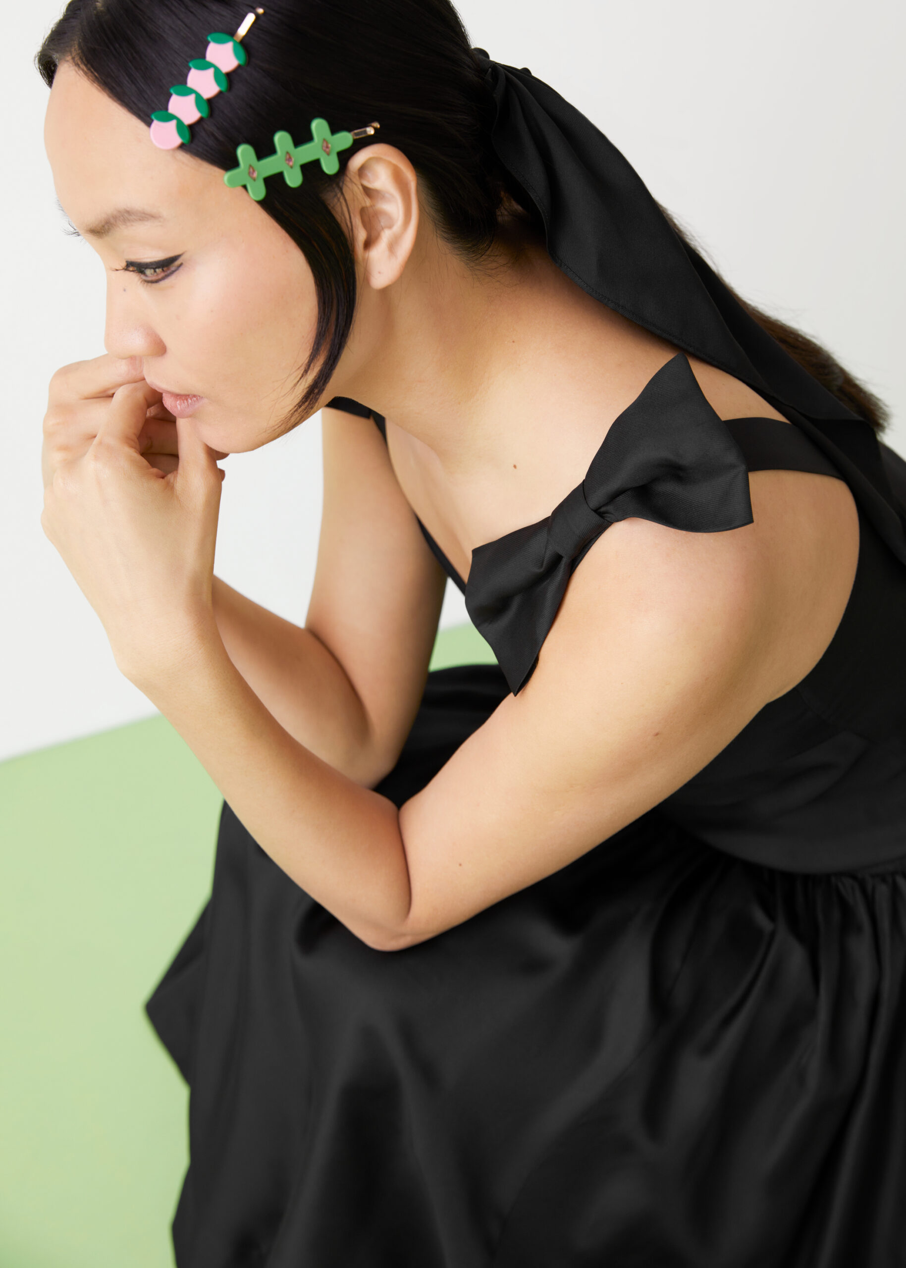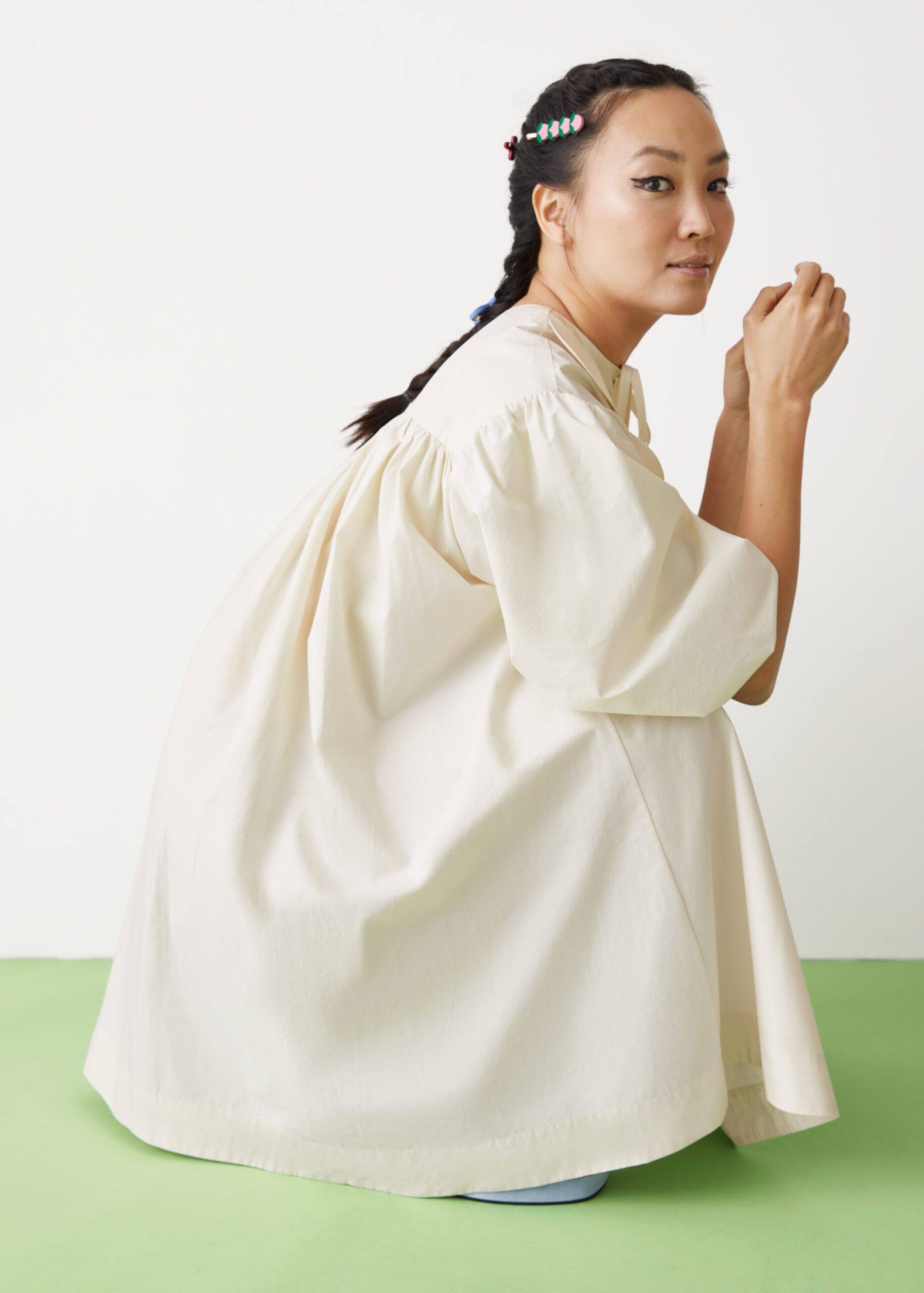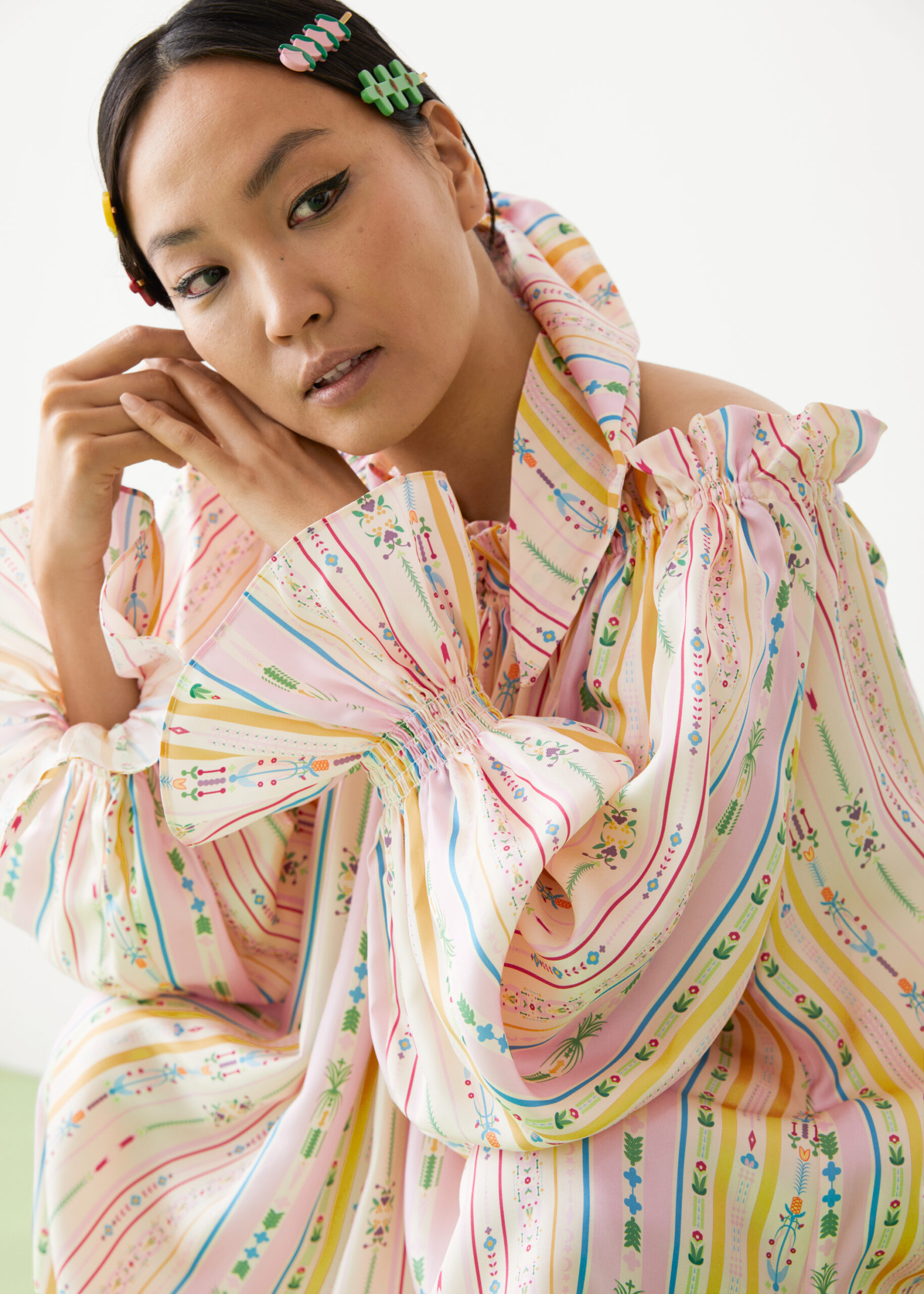 “Minju Kim a une incroyable imagination qu’elle exprime joliment dans ses silhouettes, imprimés et matières. C’est fun, fabuleux & approchable, chaque piece possède une personnalité unique, et vous tomberez instantanément amoureux de la façon dont elle devient une partie de votre vestiaire. Qu’il s’agit d’une robe, d’une jupe ou d’une barrette, je pense que les femmes chériront chaque pièce de cette co-lab et, espérons-le, leur apporteront de la joie pendant très longtemps » dit Rocky af Ekenstam Brennicke,Directeur artistique et de marque & Other Stories.