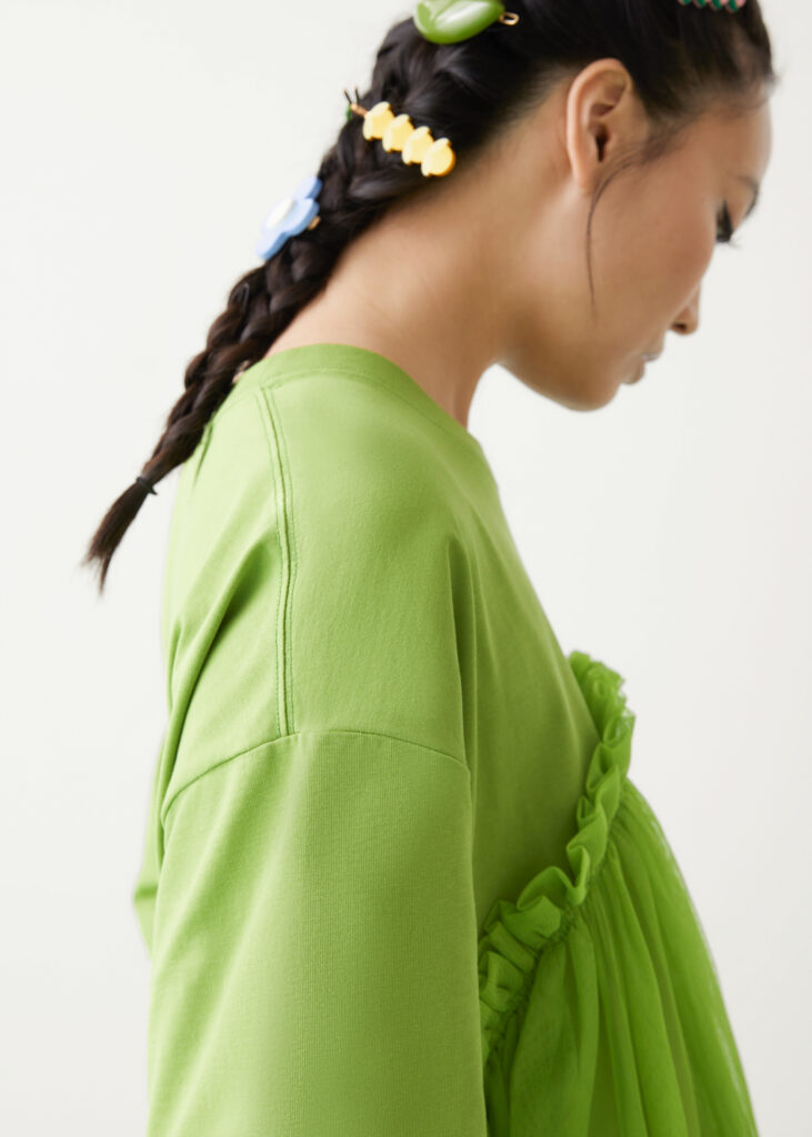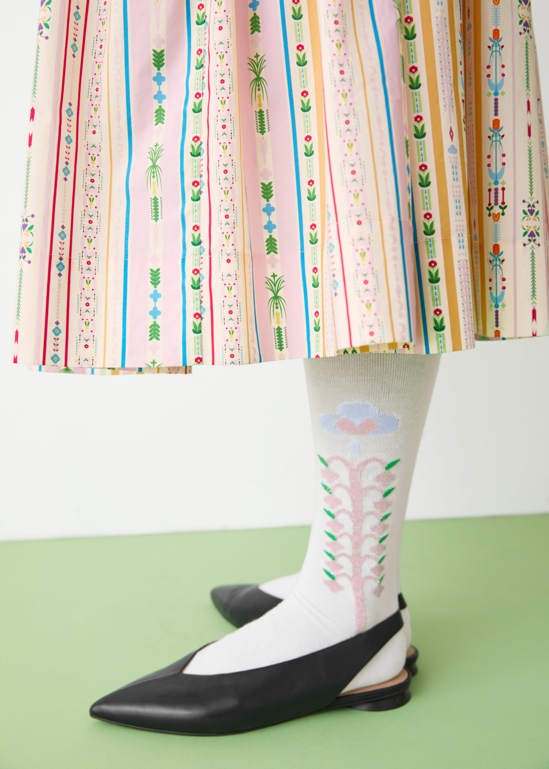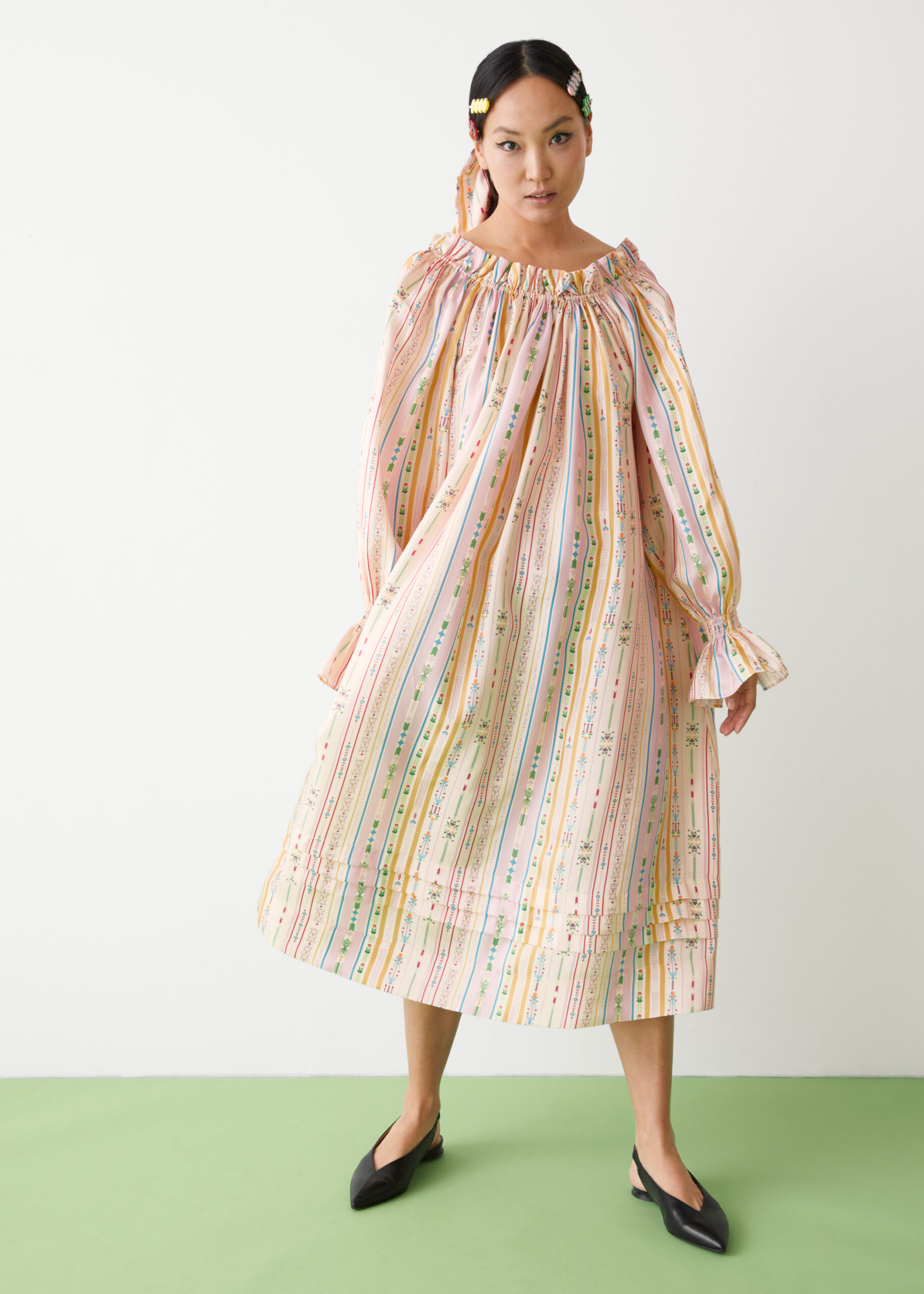 “Minju Kim a une incroyable imagination qu’elle exprime joliment dans ses silhouettes, imprimés et matières. C’est fun, fabuleux & approchable, chaque piece possède une personnalité unique, et vous tomberez instantanément amoureux de la façon dont elle devient une partie de votre vestiaire. Qu’il s’agit d’une robe, d’une jupe ou d’une barrette, je pense que les femmes chériront chaque pièce de cette co-lab et, espérons-le, leur apporteront de la joie pendant très longtemps » dit Rocky af Ekenstam Brennicke,Directeur artistique et de marque & Other Stories.