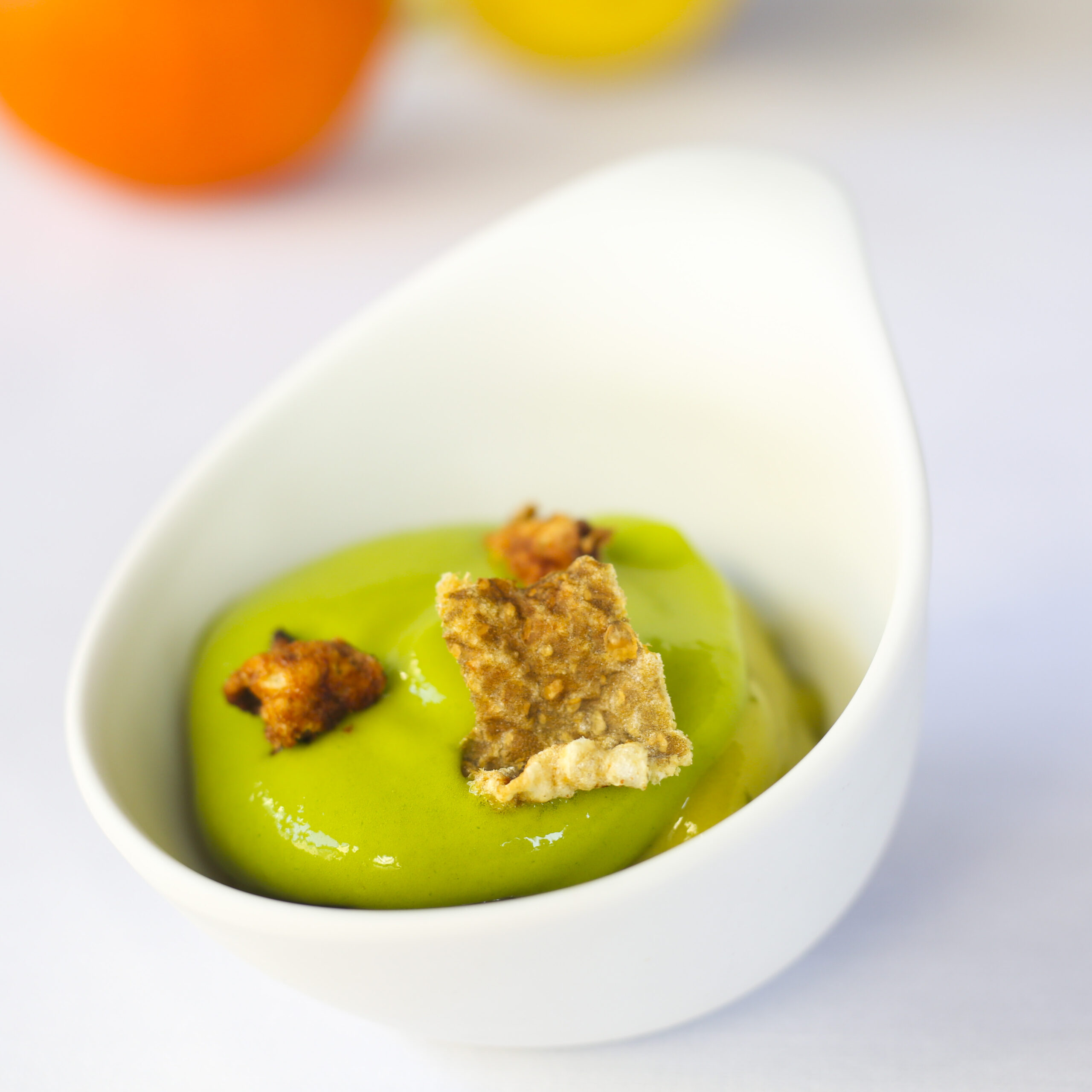 crumble de noix du Brésil, parmesan et romarin, sorbet fenouil.