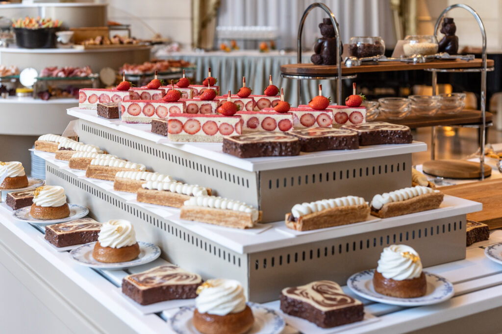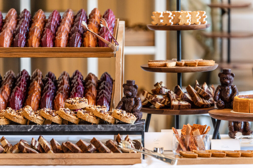 Tandis que veau marengo et cabillaud au lait de coco mijotent, que belles pièces de viandes et poissons renouent avec l’art de la découpe, on s’extasie au Bar à salades : entre César et Niçoise, papaye verte et taboulé de quinoa, le «green » est à l’honneur. Quant aux fromages, sourcés chez le meilleur des producteurs, ils tiennent plateau d’exception. À accompagner des pains Maison sortants tout chauds du four du Ritz Paris. Enfin, viennoiseries, pâtisseries et douceurs délectent les papilles. Un pur moment de bonheur, à partager…. ou pas!