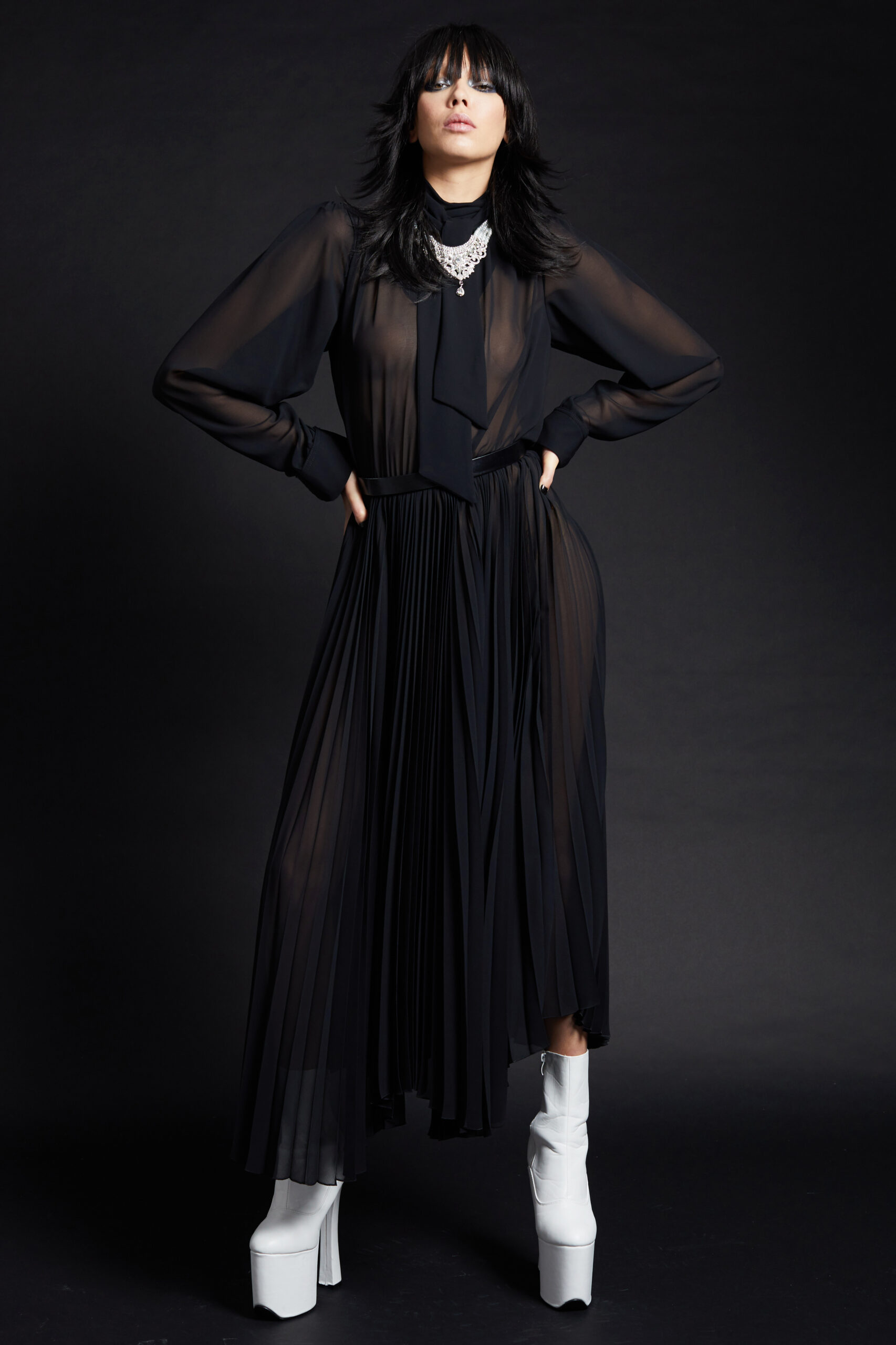 Proportions are pushed to the extreme in both directions. Inspirations from different eras mix and merge as if passed through a filter.
