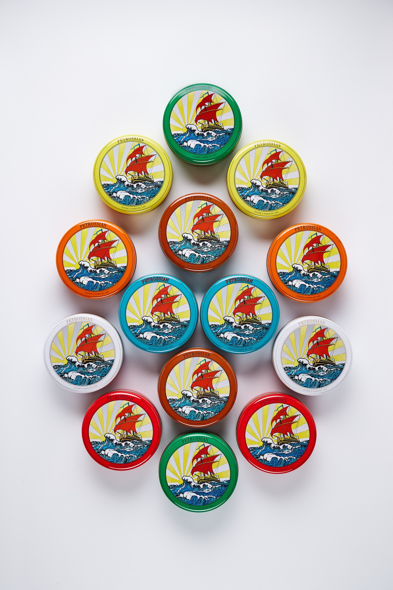 Les boîtes colorées Petrossian sont collectors. Chaque couleur correspond à une saveur différente et unique : vodka, caramel, cognac, amande et noisette… ainsi qu’un nouvel assemblage pour Pâques 2022.