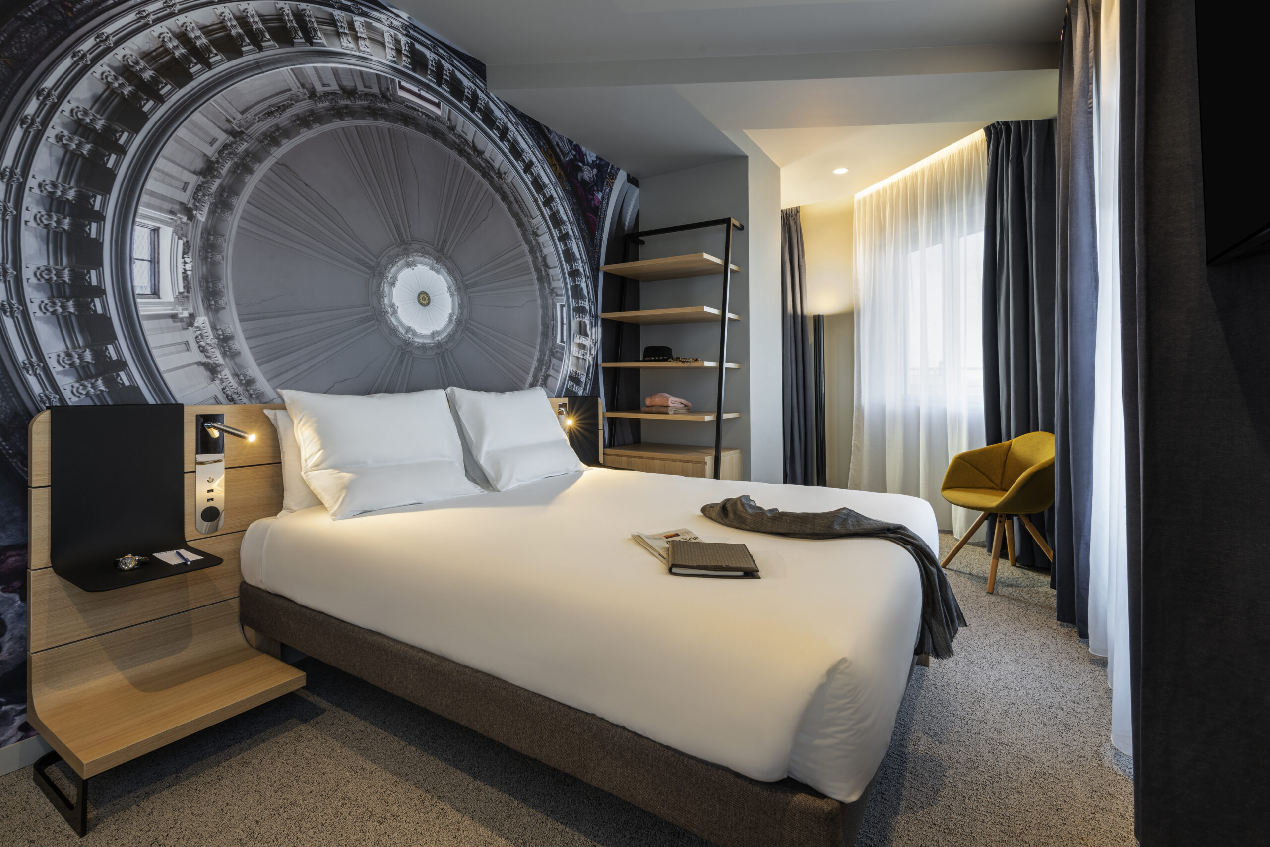 L’hôtel a réhabilité les 4600 m2 d’un immeuble de bureaux des années 90, avec une architecture contemporaine, alliée à un agencement intérieur agréable et fonctionnel qui lui donne cette ambiance urban chic qui se fond à merveille dans le quartier.