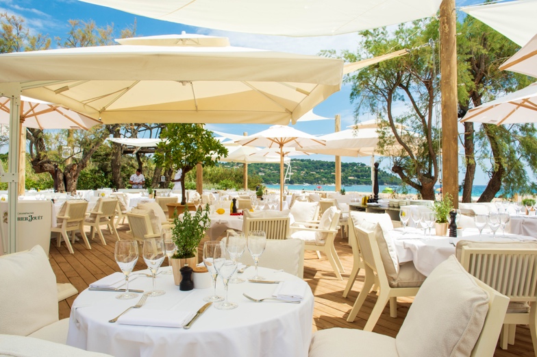 Immergées dans la végétation, entre tamaris, oliviers et citronniers odorants, les tables juponnées de nappes immaculées paradent devant la Grande bleue pour offrir une parenthèse enchantée.
