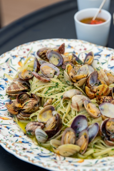 Côté restauration, Benoît Dérgère, chef exécutif, offre un héritage de la cuisine italienne et de la Riviera. Une cuisine généreuse, du soleil et savoureuse. Le chef sublime les assiettes les poissons et les légumes rayonnent de fraicheur à l’instar du carpaccio de daurade escorté d’une sauce aux agrumes à la truffe et au chimichurri ou encore les linguines al dente à la vongole.