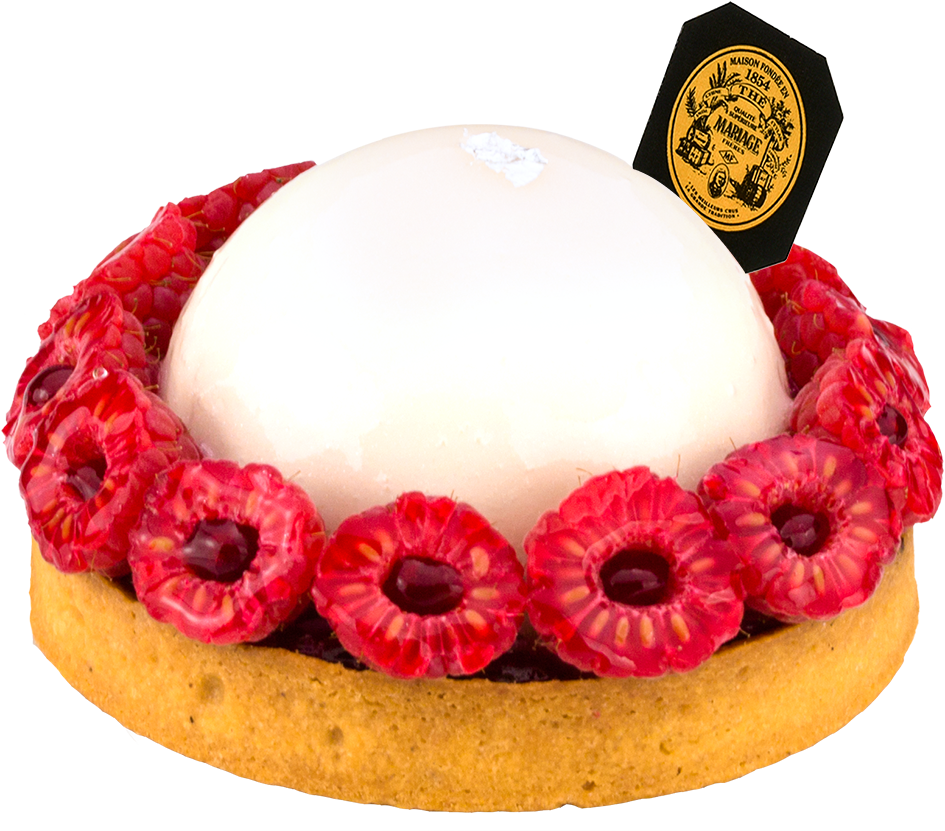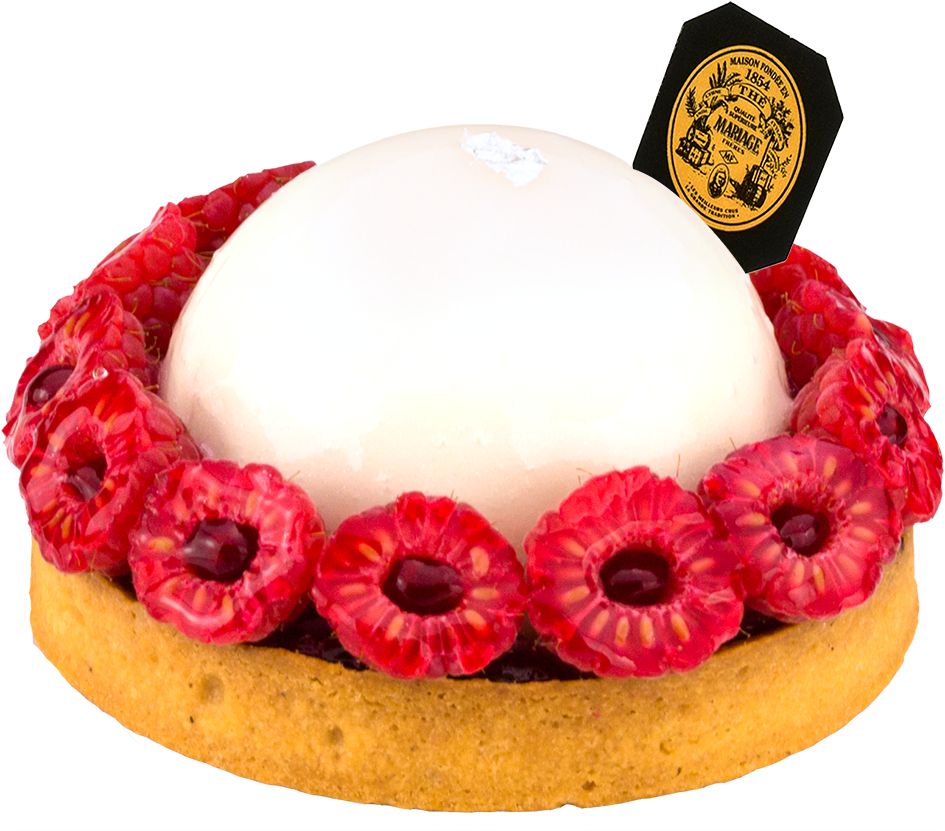 Pour l’accompagner : la pâtisserie Neige de Muguet, une crème de litchis roses infusée au thé Lily Muguet avec des framboises garnies d’un confit fruité au parfum de muguet.