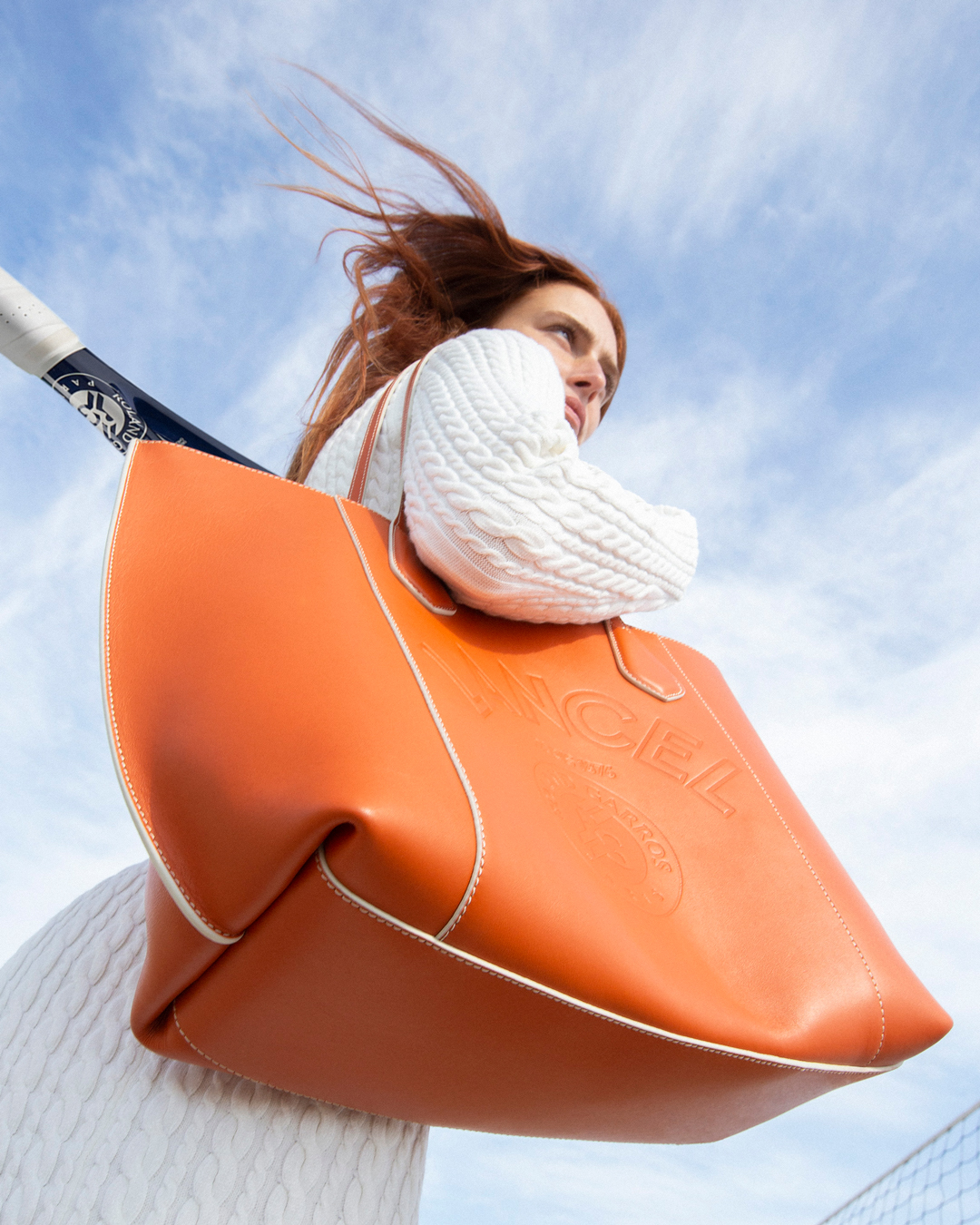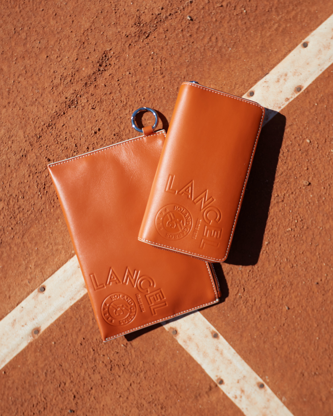 On retrouve un cabas en cuir de vachette couleur terre battue et un sac en toile de jute gansé de cuir. La petite maroquinerie n’a pas dit son dernier mot avec un portefeuille et une pochette zippée en cuir de vachette avec le logo Lancel x Roland Garros.