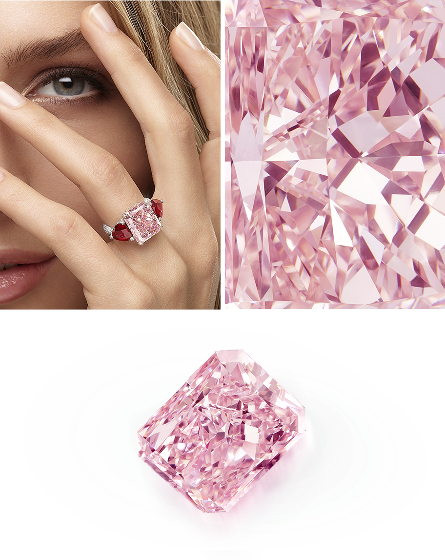 Coprésidente et directrice artistique de Chopard, Caroline Scheufele a présenté à l’occasion de la Semaine de la Haute Couture de Paris une sélection de pierres d’exception. Hommages à une nature généreuse qui ne cesse d’inspirer Chopard, ces gemmes d’une pureté inégalée ont attiré l’œil averti de cette experte et elles nourrissent son imagination féconde. Parmi ces trésors, l’Emeraude Chopard Insofu s’affiche comme la pierre la plus spectaculaire de toutes : il s’agit d’une émeraude brute de 6 225 carats, extraite en Zambie dans une démarche de traçabilité et de responsabilité inédite pour une gemme de cette importance. D’une pureté exceptionnelle et d’une taille record, l’Emeraude Chopard Insofu laisse augurer aux spécialistes un grand nombre de pierres taillées de grande qualité. Des joyaux à naître dont les ateliers Chopard façonneront une collection de pièces joaillières. Autre pierre remarquable, un diamant rose de 10,88 carats traduit la passion de Caroline Scheufele pour les diamants de couleur. De taille radiant, il prend place au centre d’une bague en or éthique certifié Fairmined. Enfin, la collection compte une magnifique bague Toi & Moi composée d’un diamant fancy intense blue de 4,10 carats et d’un diamant blanc, tous deux de la plus haute qualité.