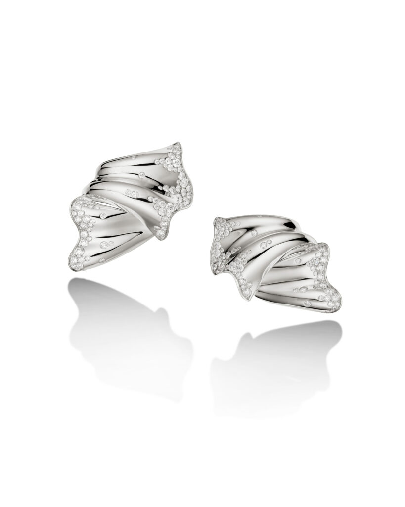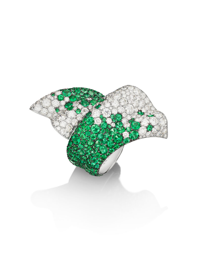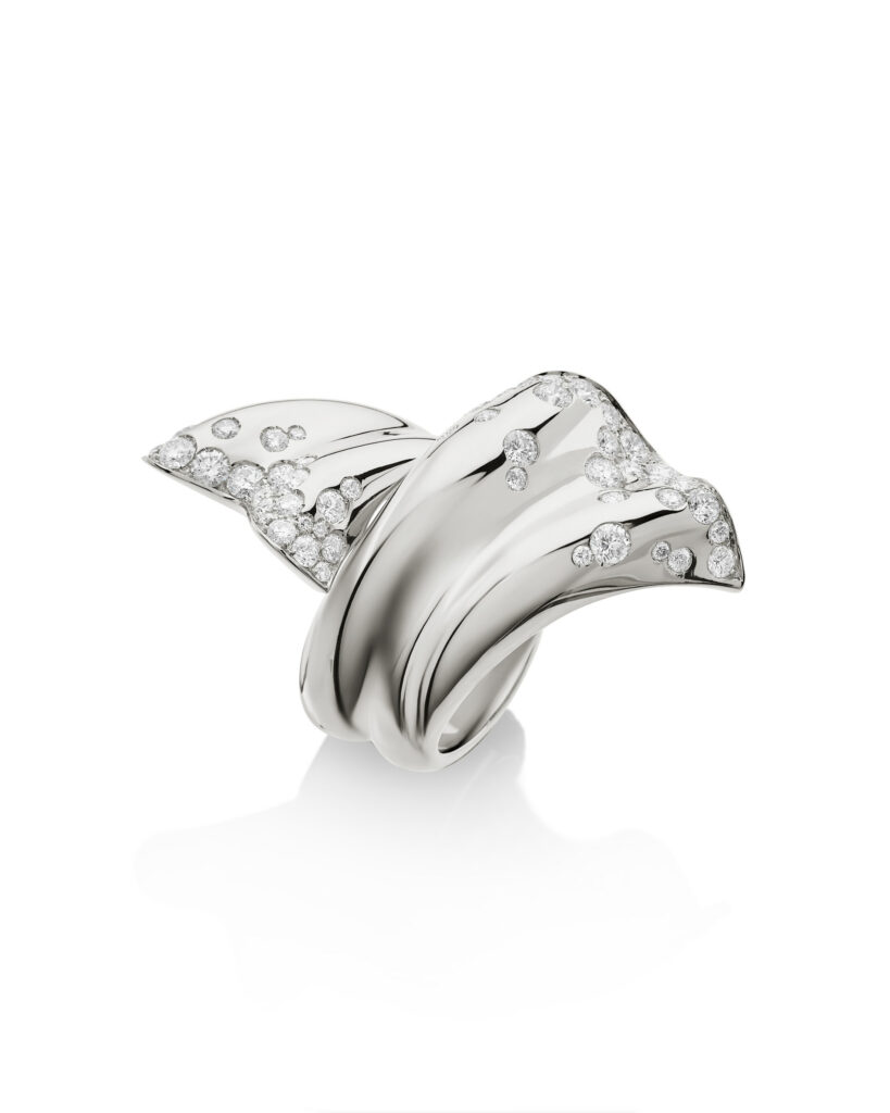 Fawaz Gruosi présente sa nouvelle collection comprenant deux paires de boucles d’oreilles et cinq bagues qui jouent toutes sur le motif du ruban avec un mélange de pierres précieuses insufflant de nouvelles nuances aux contours de la forme originale et tissant des textures inattendues.
