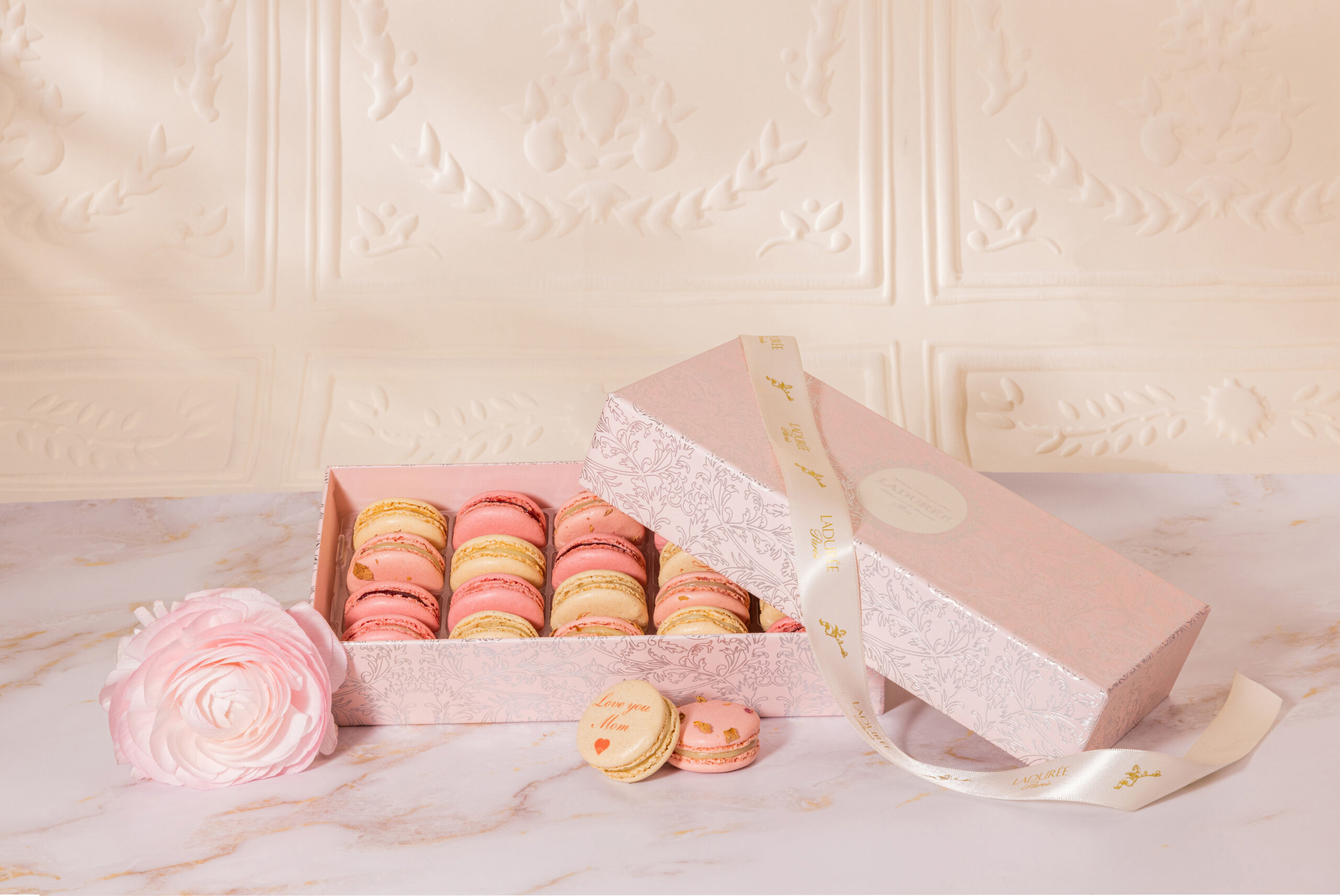 Ultime attention : les mamans repartiront avec un macaron « Je t’aime Maman » présenté dans l’écrin vert iconique Ladurée.