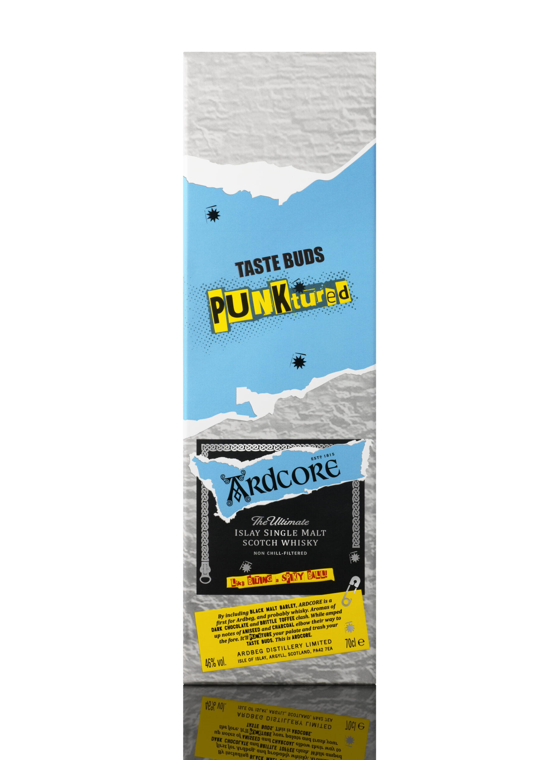 » Créé à partir de malt noir torréfié, brûlé à l’extrême, Ardcore est tout en intensité. Des notes de charbon de bois et de fumée douce lui confèrent un nez intense, et les puissantes notes d’anis et de chocolat noir font de cette bouteille, un produit pour les fans d’Ardbeg. » Dr Bill Lumsden, Directeur de la création du whisky Ardbeg.