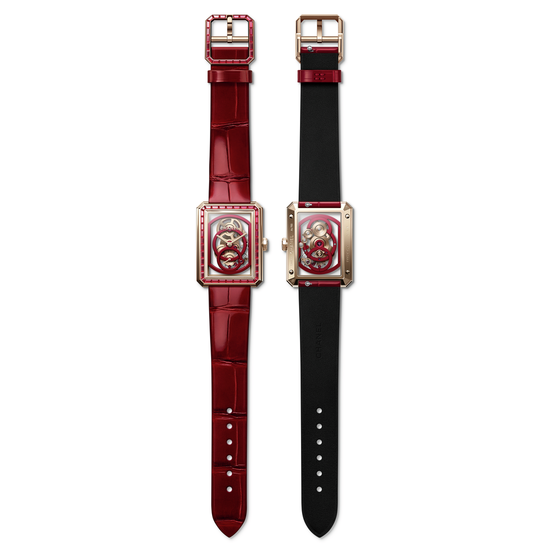 ÉDITION ROUGE CHANEL présente sa capsule de Haute Horlogerie Édition Rouge, l’une des cinq couleurs emblématiques de la Maison avec le blanc, le noir, le beige et le doré. « Si vous êtes tristes, si vous avez un chagrin d’amour, maquillez-vous, soignez-vous, mettez du rouge à lèvres et attaquez (…). » Gabrielle Chanel aimait le pouvoir de la couleur rouge, comme une ponctuation. Le rouge pour prendre confiance en soi, pour s’affirmer. Le rouge comme un détail pour souligner la structure d’une veste, un élément pour illuminer la doublure d’un sac 2.55. En 2022, le rouge signe exceptionnellement le Temps CHANEL. « Cette figure de style, je la pose sur trois créations de Haute Horlogerie. J’aime l’audace d’un mouvement maquillé de rouge, la sensualité du mariage de l’or beige et du rubis, l’autorité d’un bracelet rouge vernis sur un poignet. Le rouge ne doute pas ! C’est une élégance sans compromis. », déclare Arnaud Chastaingt, Directeur du Studio de Création Horlogerie de CHANEL.