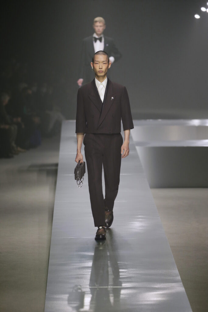Thrusting old world elegance into the New Roaring Twenties, the FENDI Fall/Winter 2022-23 collection designed by Silvia Venturini Fendi is a treasure trove of future heirlooms – reimagining a gentleman’s wardrobe for a neo-dandy riff on perennial classics.