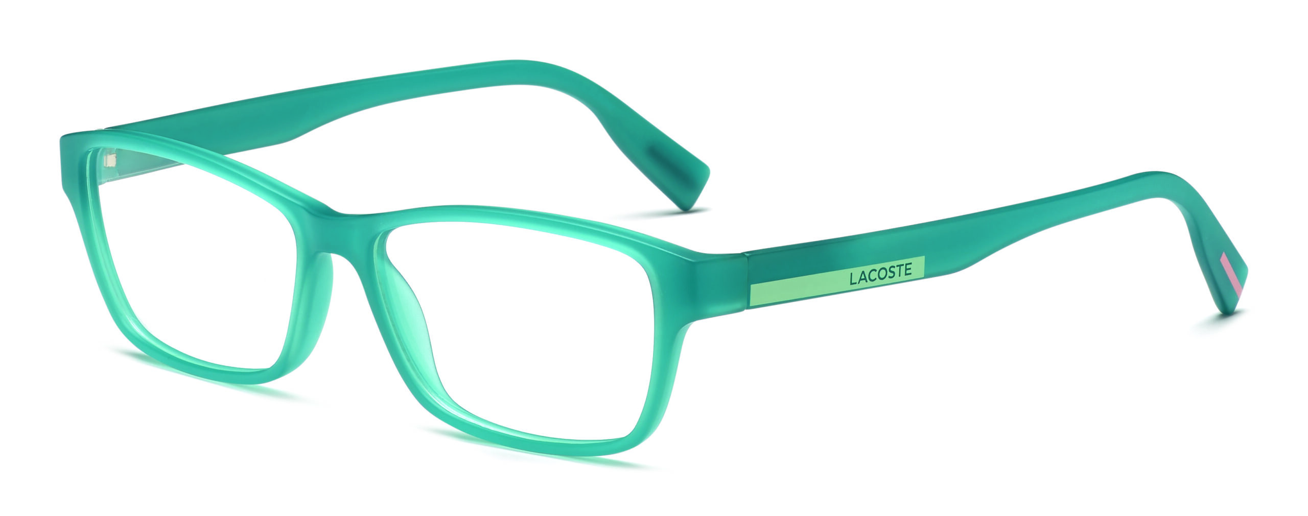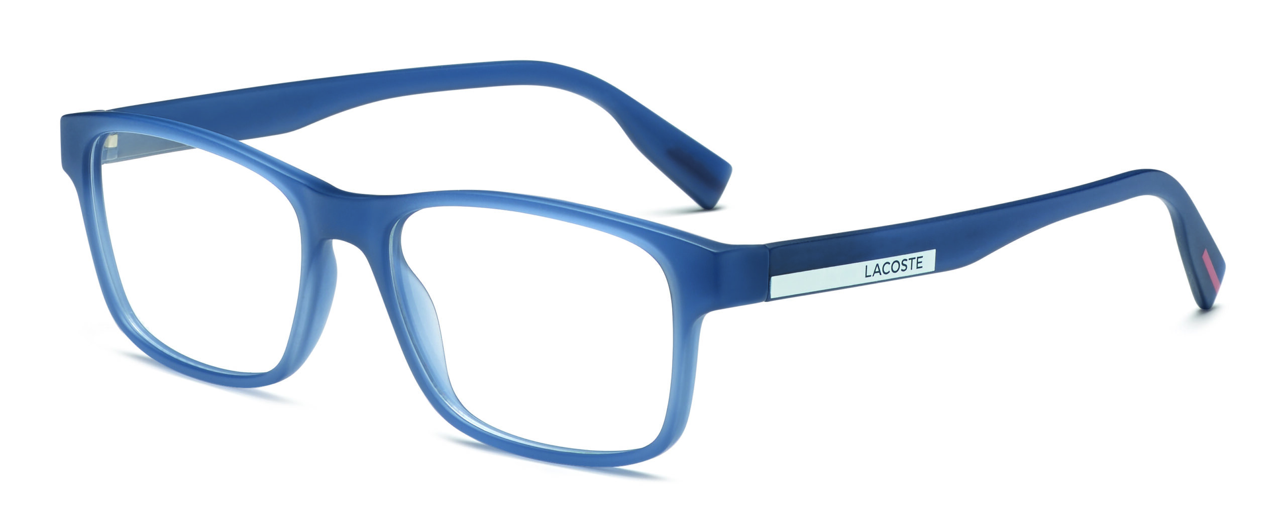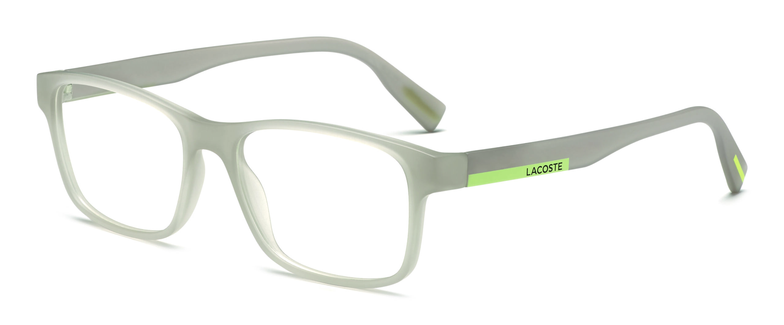Ces lunettes de vue possèdent une fine face rectangulaire avec, sur les deux branches, le très reconnaissable logo Lacoste en toutes lettres dans une couleur contrastante et, sur les embouts, un détail coloré. Elles sont proposées dans les éclatants Matte Grey Lumi et Matte Blue Lumi dans la version absorbant la lumière du jour pour la libérer dans l’obscurité, et également dans les classiques Black et Matte Black